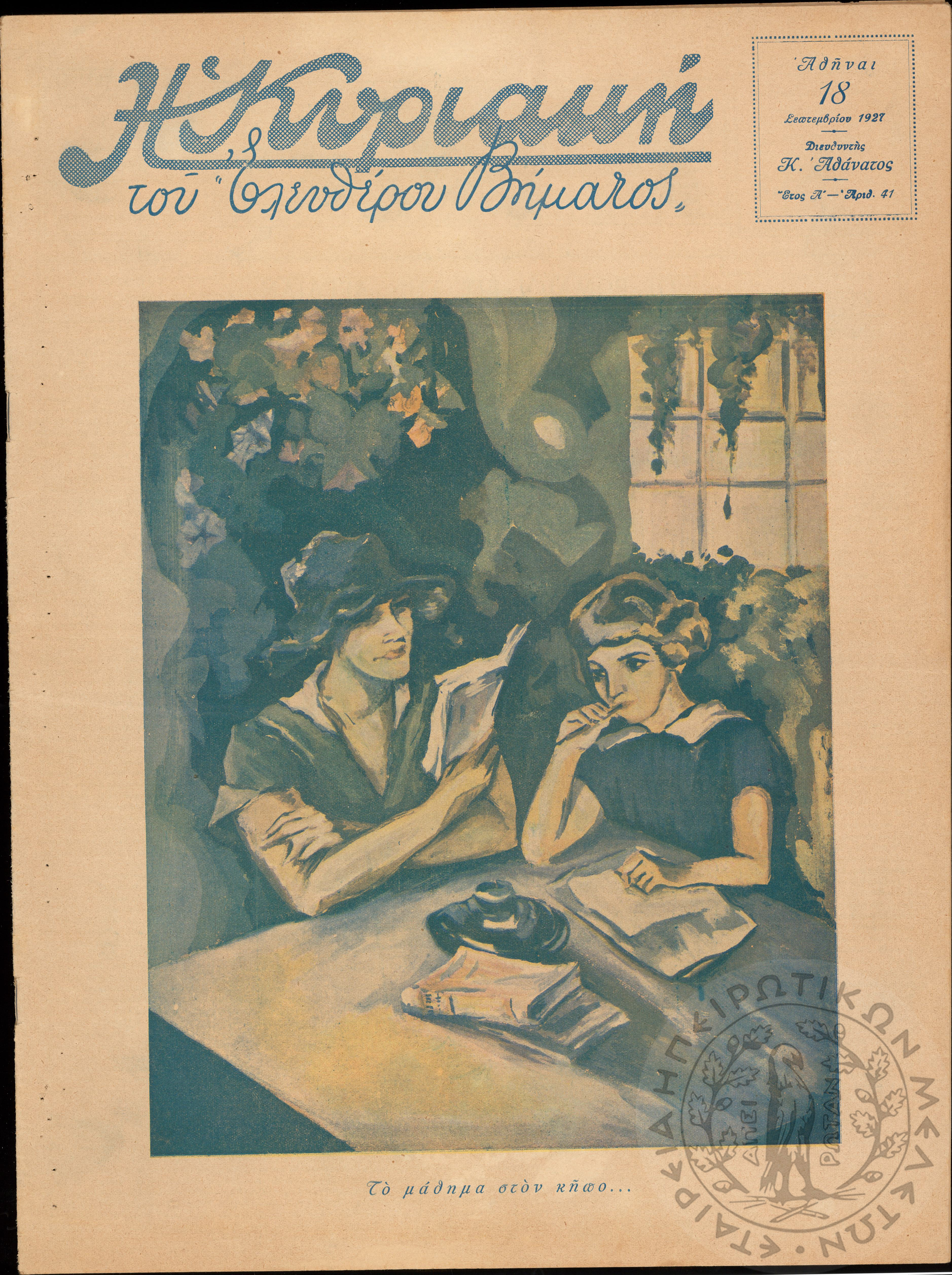Η Κυριακή του Ελευθέρου Βήματος: μεγάλη εβδομαδιαία εικονογραφημένη φιλολογική, καλλιτεχνική, εγκυκλοπαιδική και κοινωνική επιθεώρησις (τεύχ. 46)Έτος Α΄, τεύχ. 46...