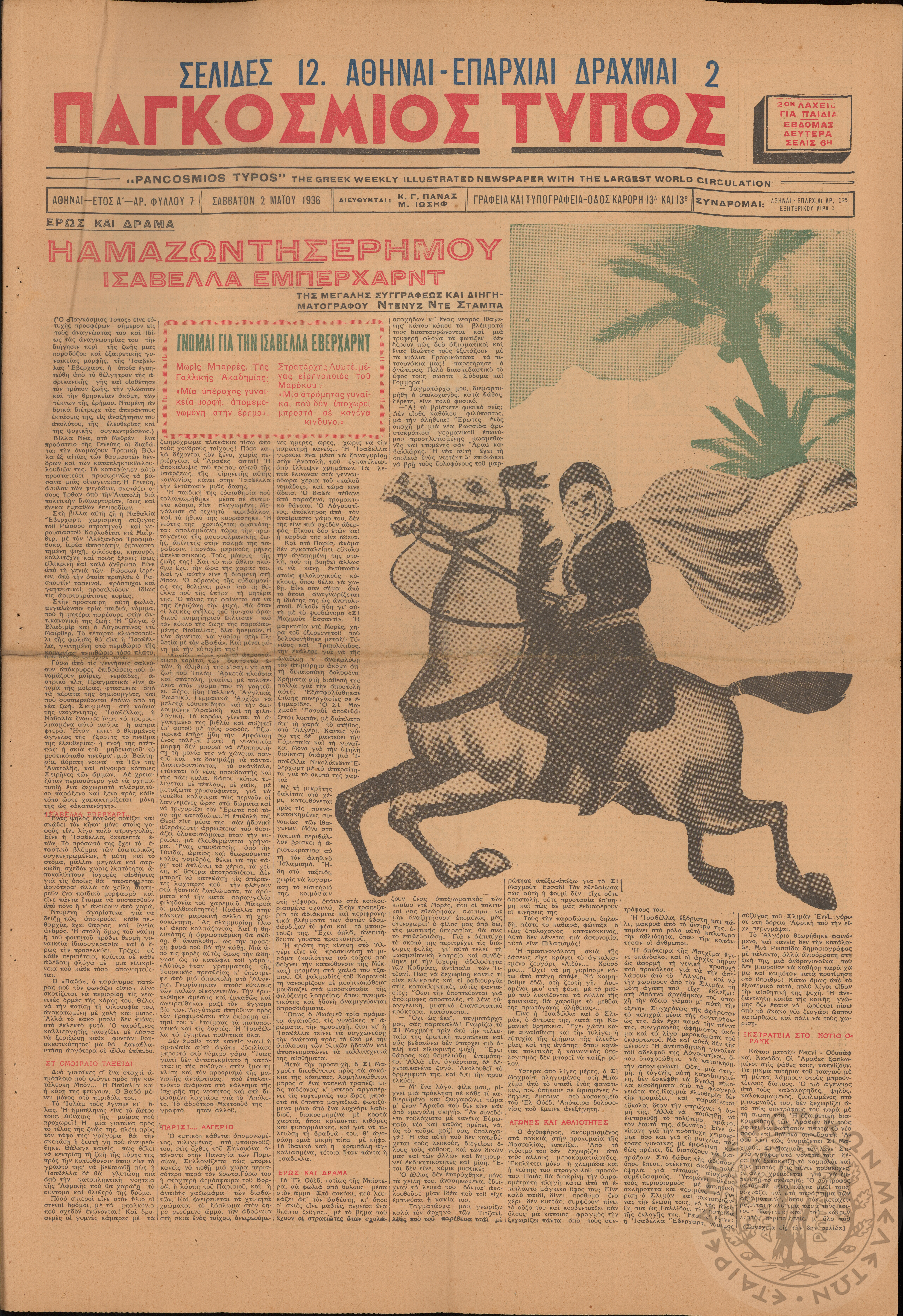 Παγκόσμιος τύπος: μεγάλη εικονογραφημένη εφημερίς εν Αθήναις / "Pancosmios Typos": the Greek weekly illustrated newspaper with the largest world circulation, 1936, φ. 7Έτος Α', φ. 7...