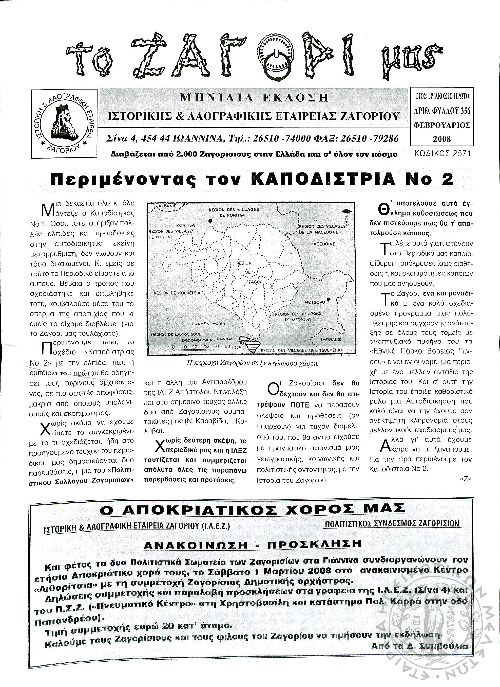 Το Ζαγόρι μας: μηνιαία έκδοση Ιστορικής και Λαογραφικής Εταιρείας Ζαγορίου (φ. 356)Έτος 31, φ. 356...