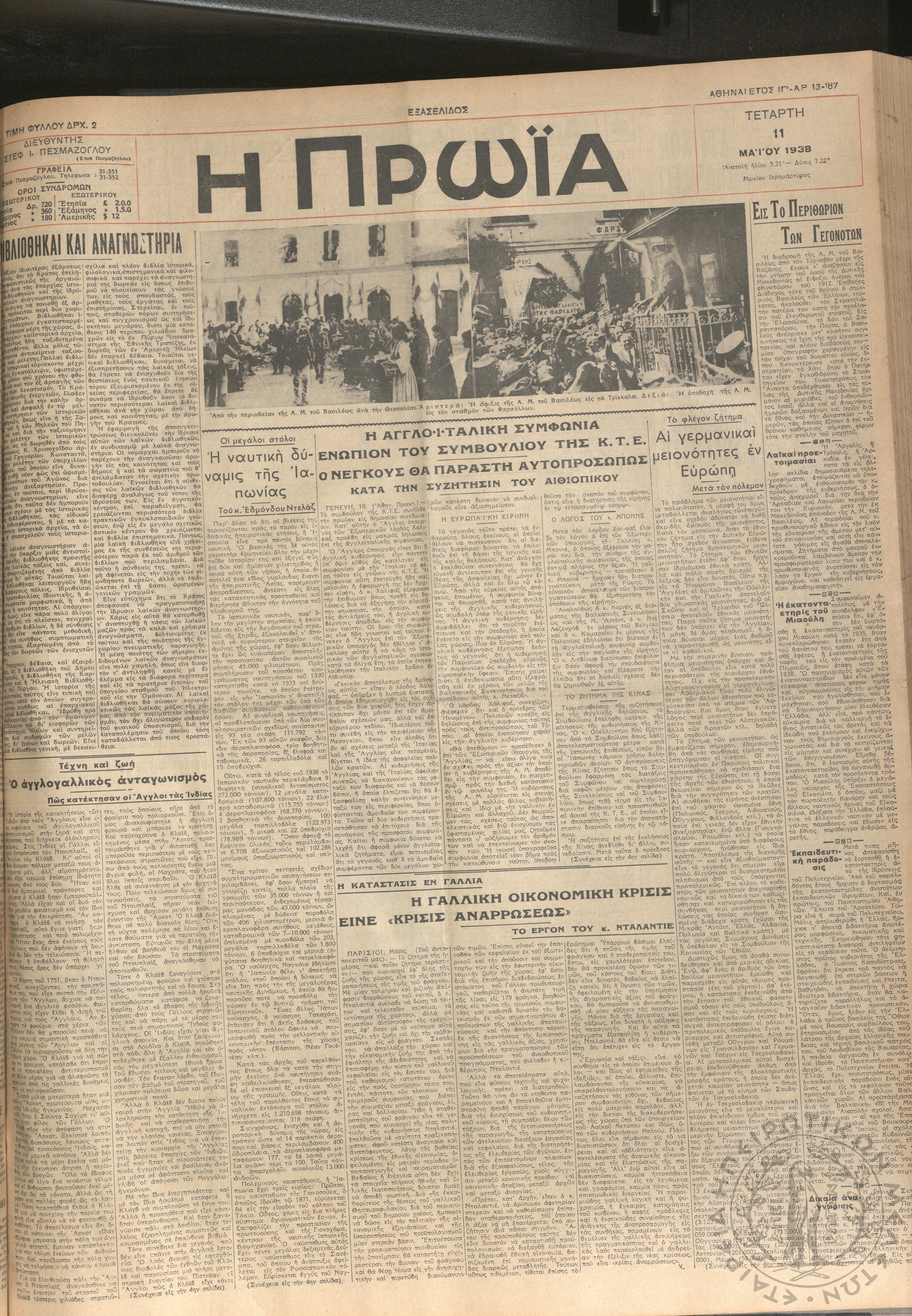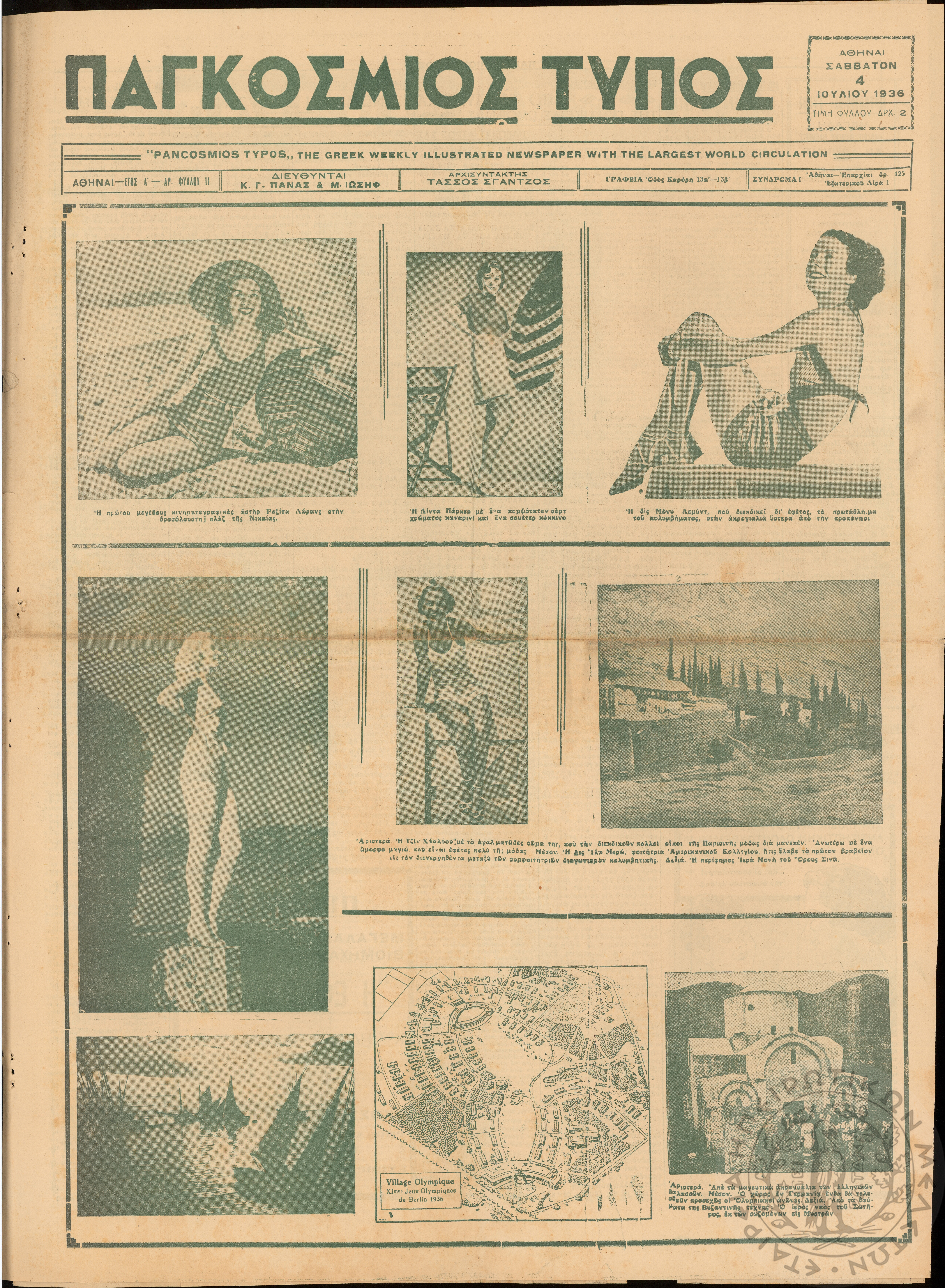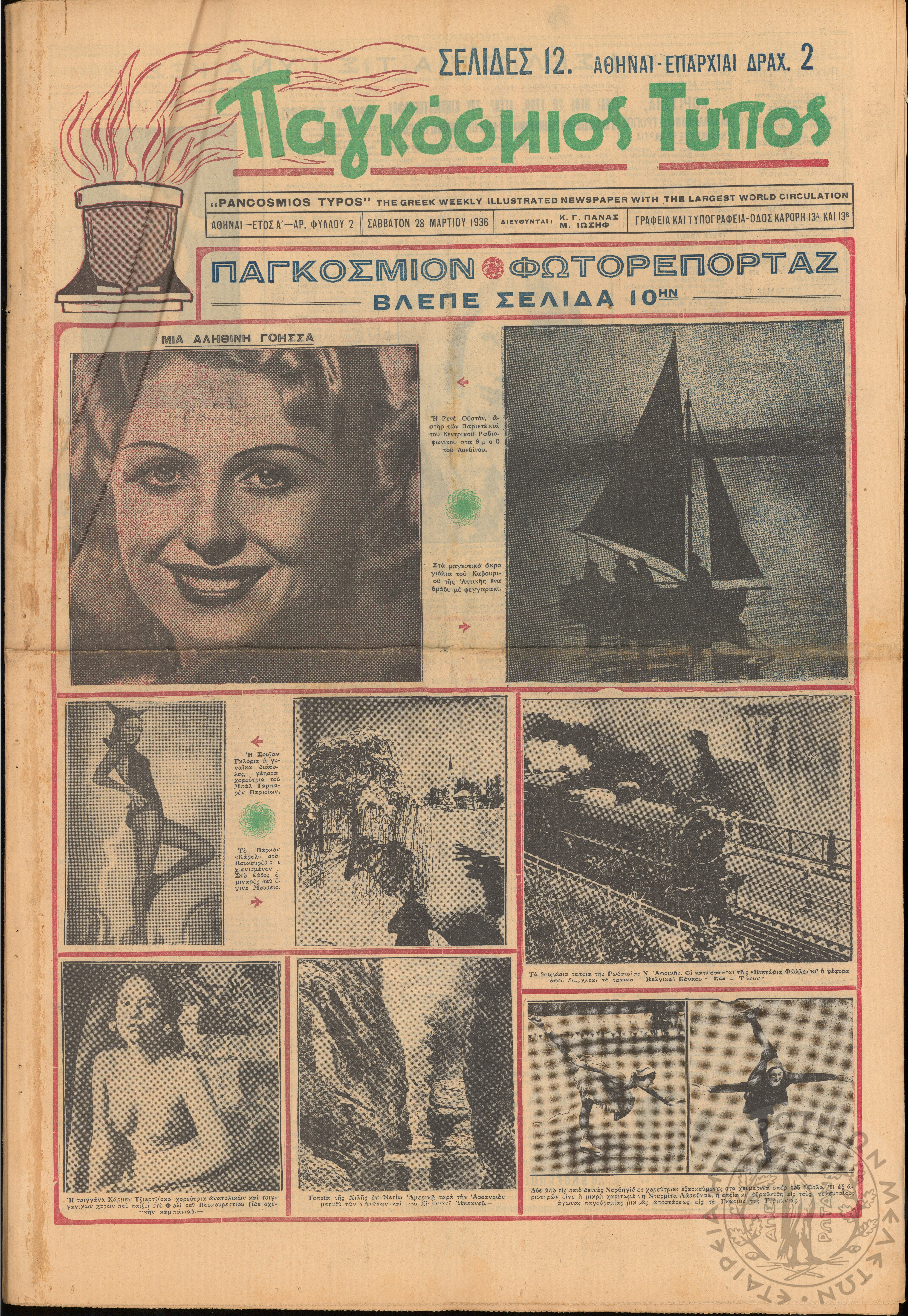 Παγκόσμιος τύπος: μεγάλη εικονογραφημένη εφημερίς εν Αθήναις / "Pancosmios Typos": the Greek weekly illustrated newspaper with the largest world circulation, 1936, φ. 3Έτος Α', φ. 3...