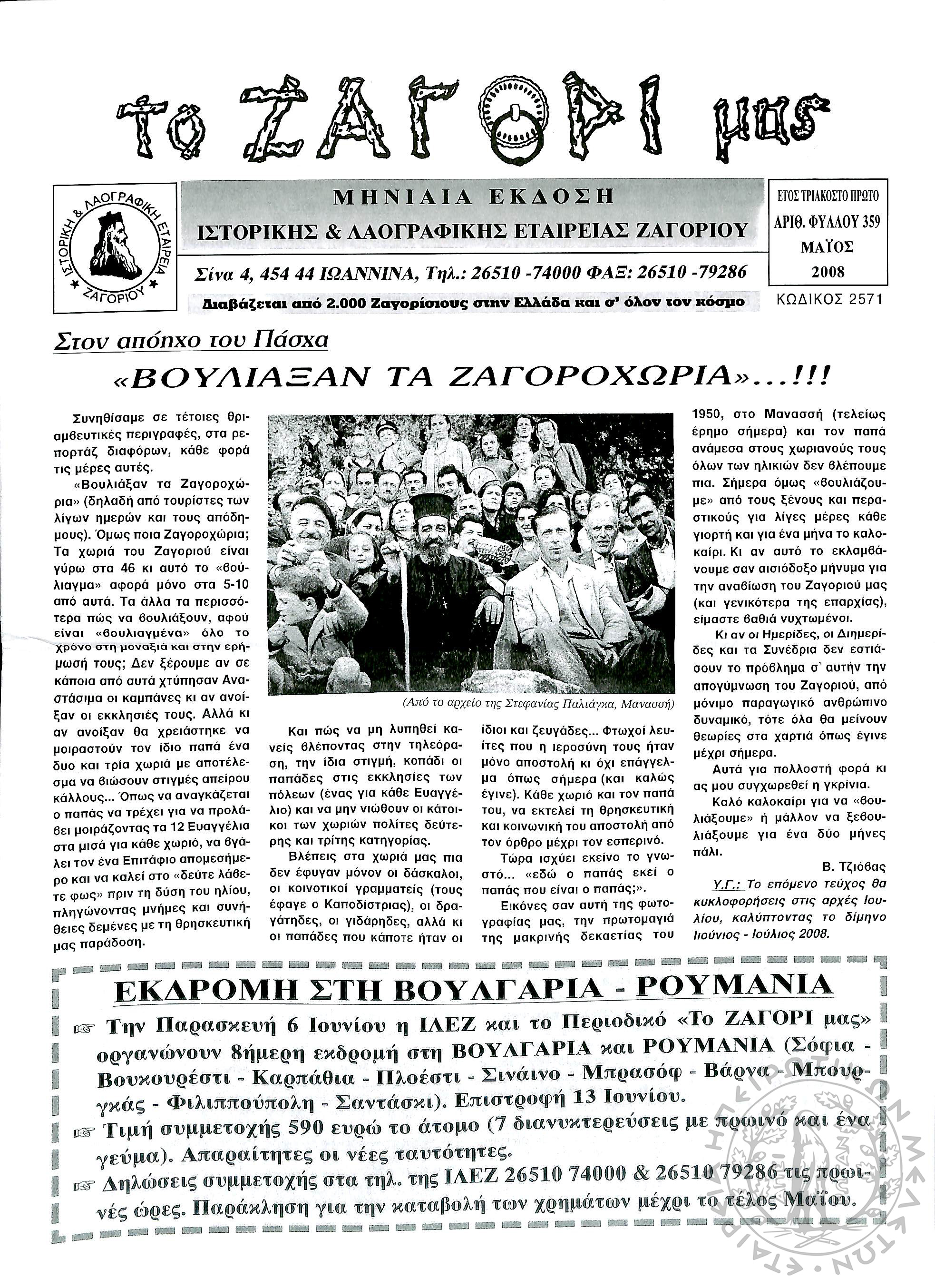 Το Ζαγόρι μας: μηνιαία έκδοση Ιστορικής και Λαογραφικής Εταιρείας Ζαγορίου (φ. 359)Έτος 31, φ. 359...