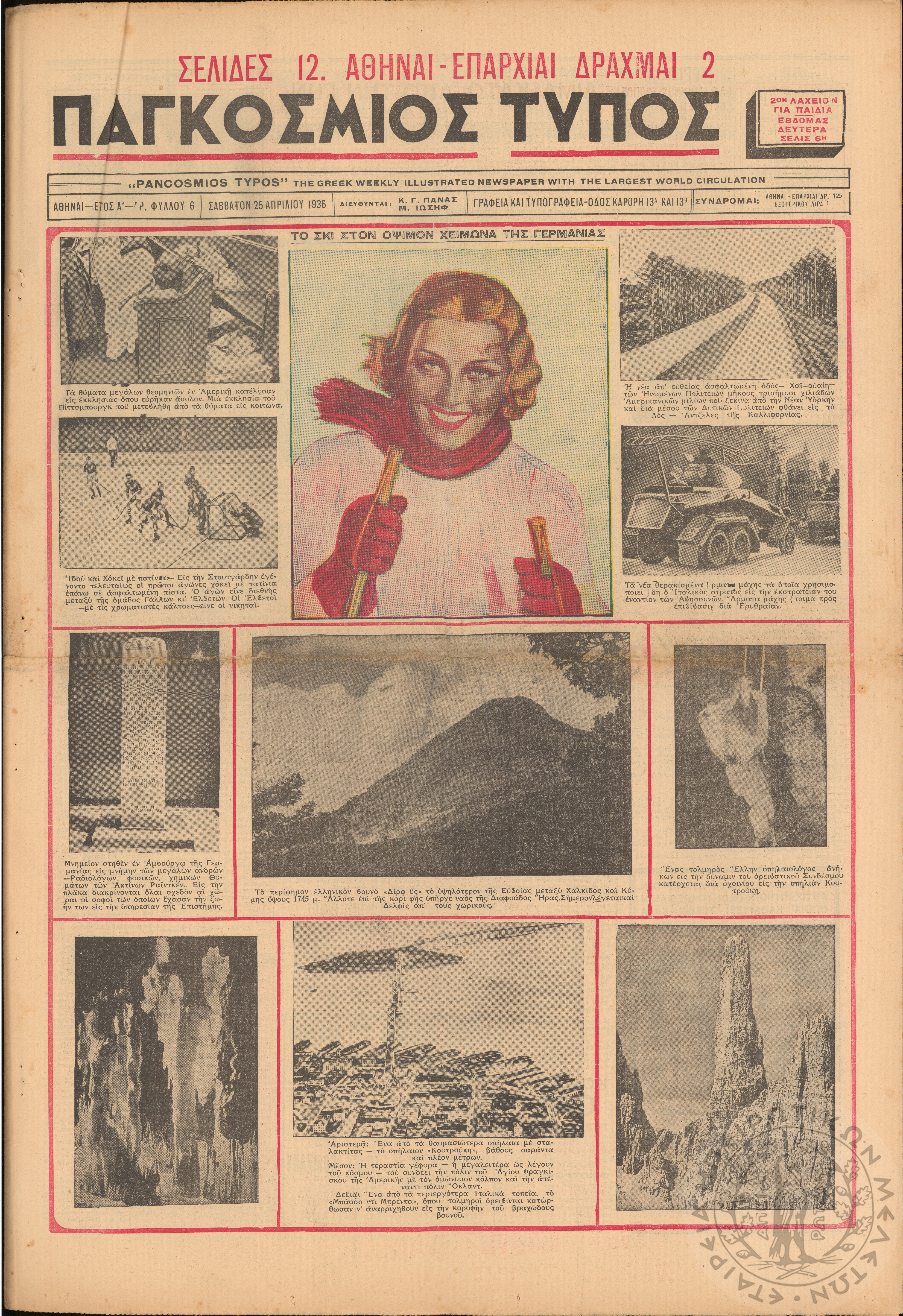 Παγκόσμιος τύπος: μεγάλη εικονογραφημένη εφημερίς εν Αθήναις / "Pancosmios Typos": the Greek weekly illustrated newspaper with the largest world circulation, 1936, φ. 6Έτος Α', φ. 6...