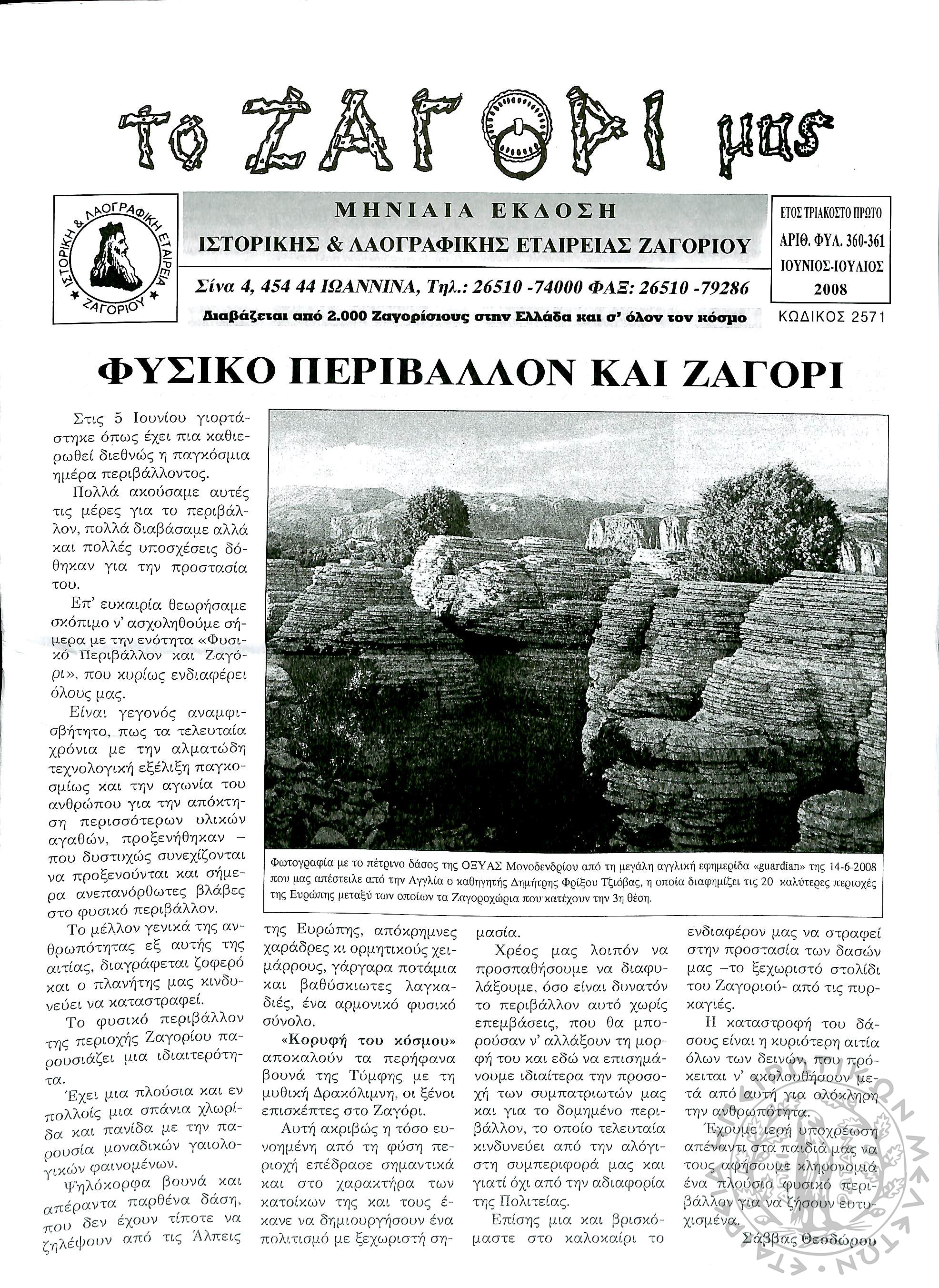 Το Ζαγόρι μας: μηνιαία έκδοση Ιστορικής και Λαογραφικής Εταιρείας Ζαγορίου (φ. 360-361)Έτος 31, φ. 360-361...
