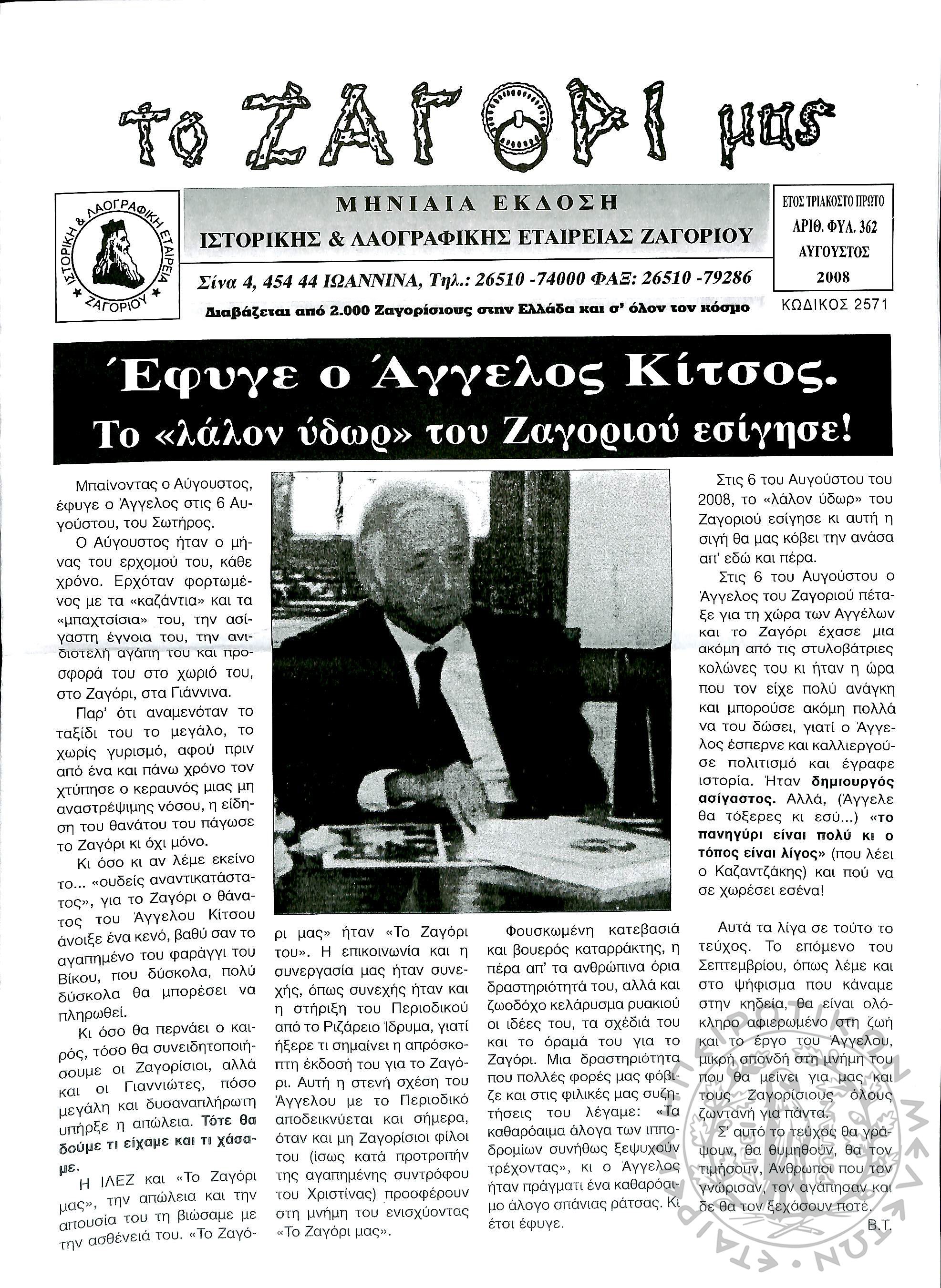 Το Ζαγόρι μας: μηνιαία έκδοση Ιστορικής και Λαογραφικής Εταιρείας Ζαγορίου (φ. 362)Έτος 31, φ. 362...