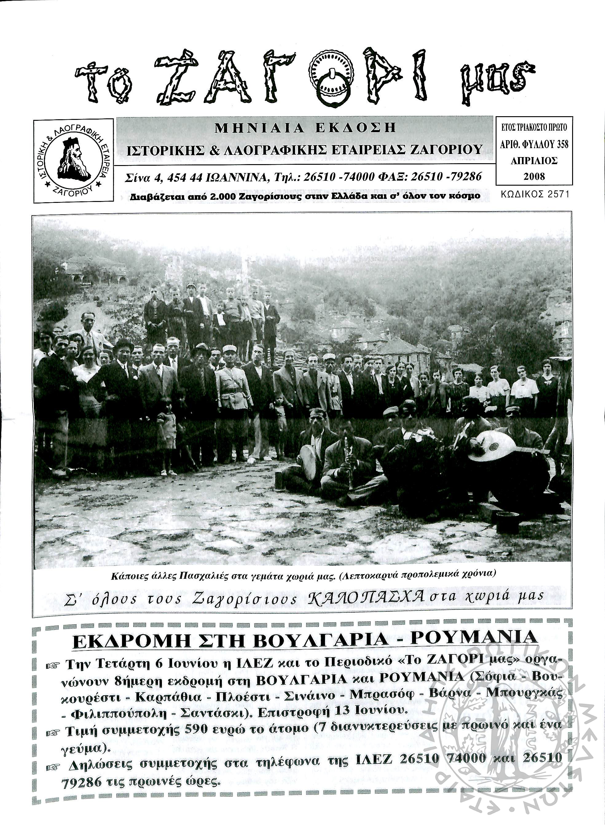 Το Ζαγόρι μας: μηνιαία έκδοση Ιστορικής και Λαογραφικής Εταιρείας Ζαγορίου (φ. 358)Έτος 31, φ. 358...