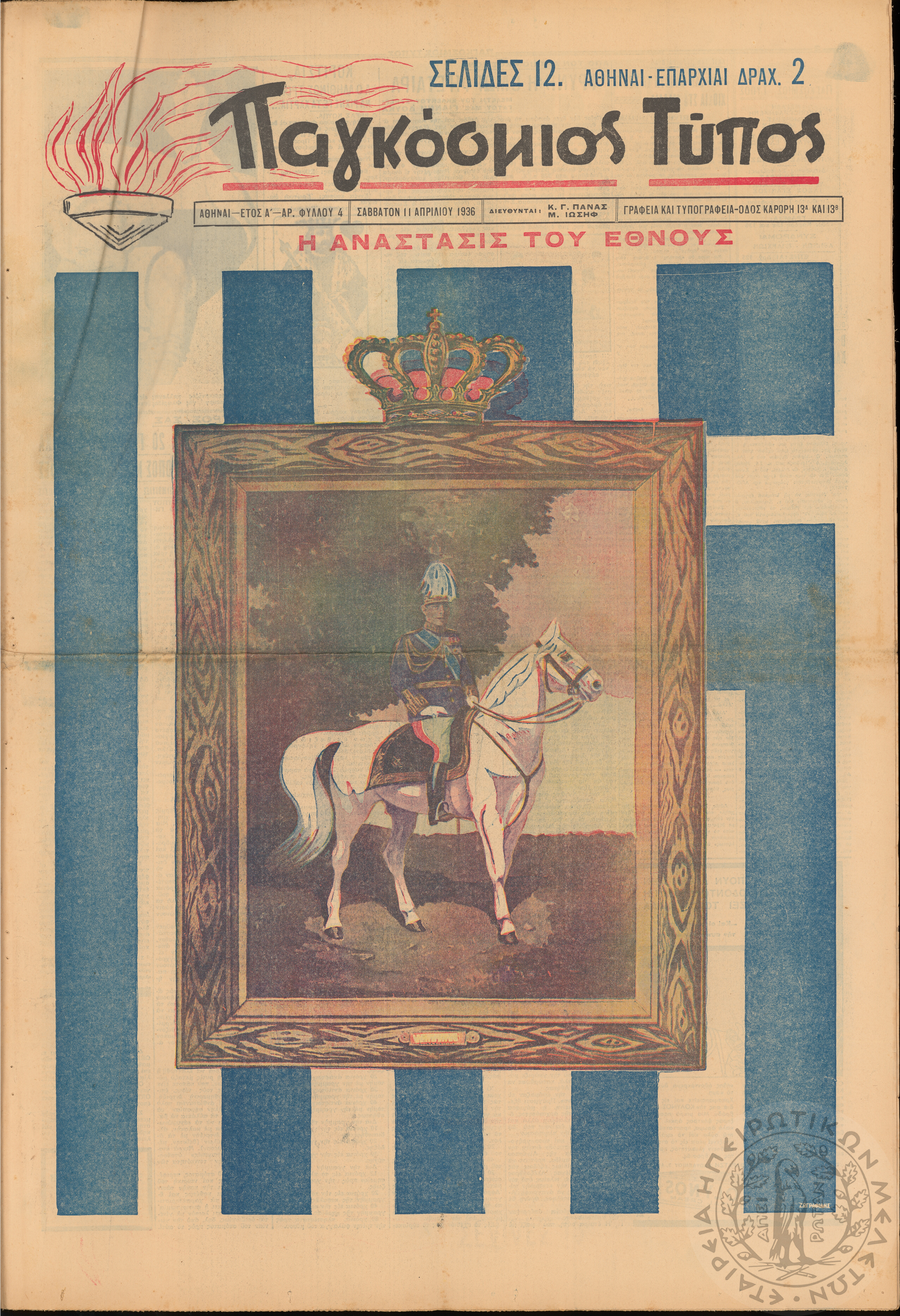 Παγκόσμιος τύπος: μεγάλη εικονογραφημένη εφημερίς εν Αθήναις / "Pancosmios Typos": the Greek weekly illustrated newspaper with the largest world circulation, 1936, φ. 4Έτος Α', φ. 4...