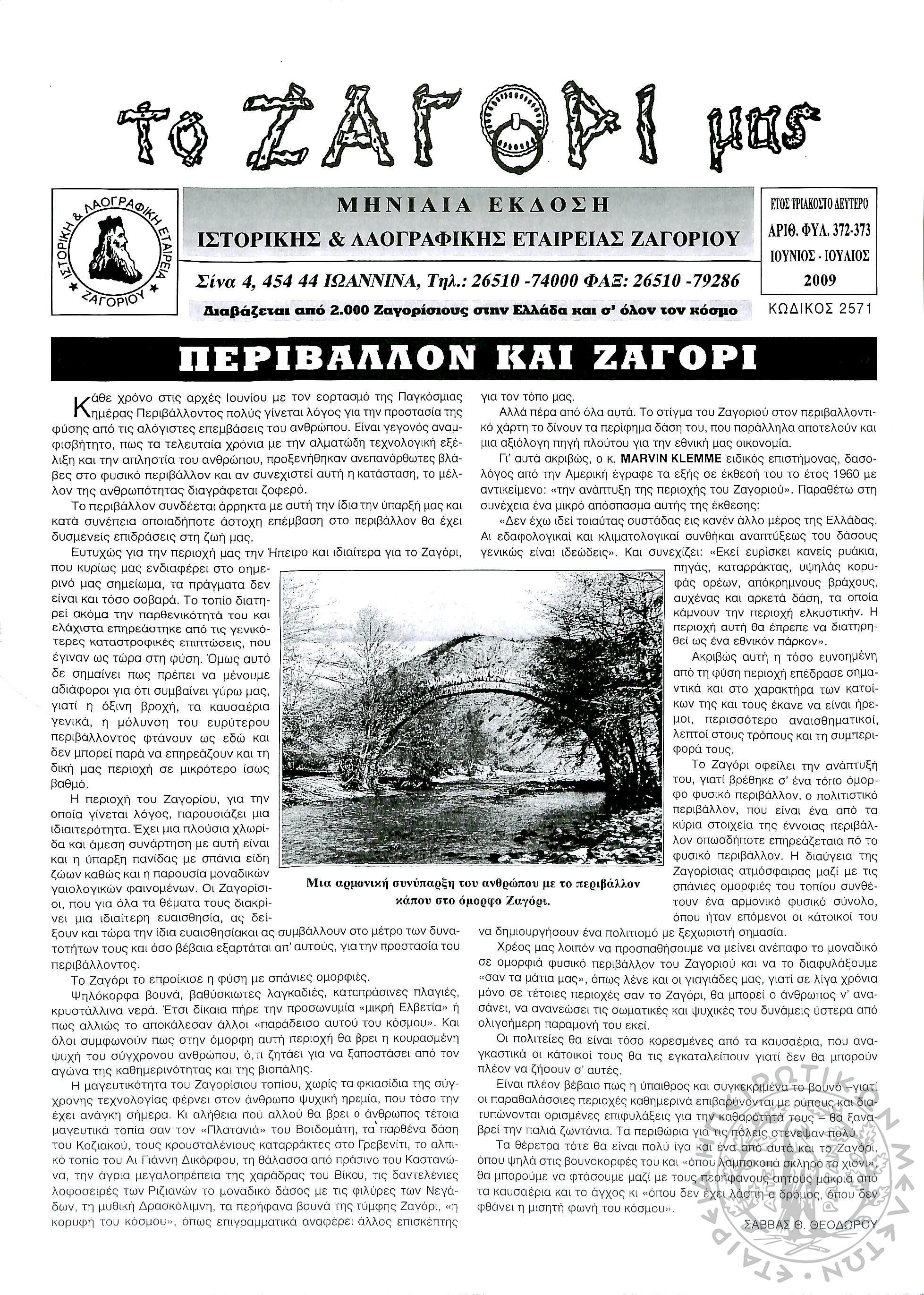 Το Ζαγόρι μας: μηνιαία έκδοση Ιστορικής και Λαογραφικής Εταιρείας Ζαγορίου (φ. 372-373)Έτος 32, φ. 372-373...