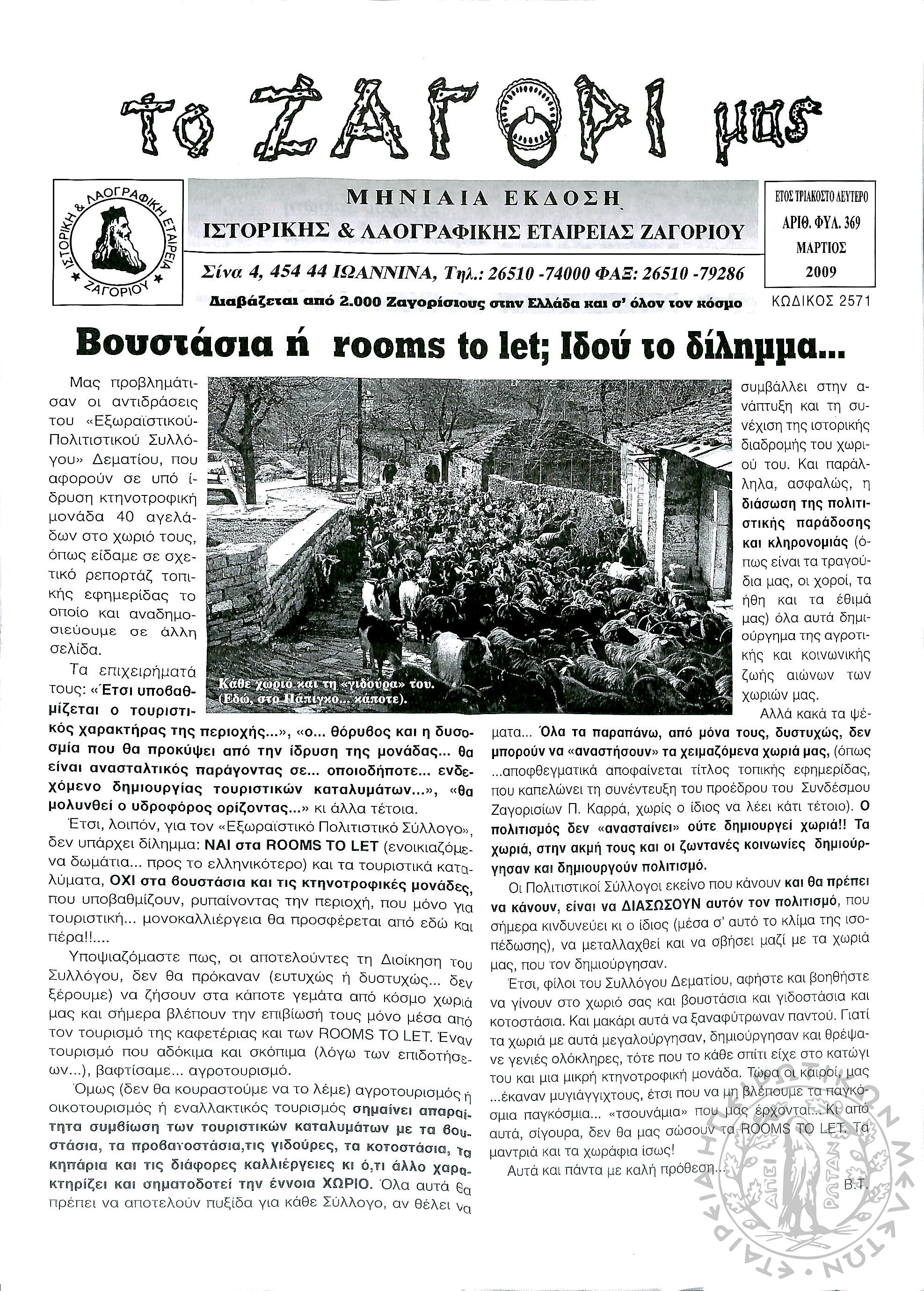 Το Ζαγόρι μας: μηνιαία έκδοση Ιστορικής και Λαογραφικής Εταιρείας Ζαγορίου (φ. 369)Έτος 32, φ. 369...