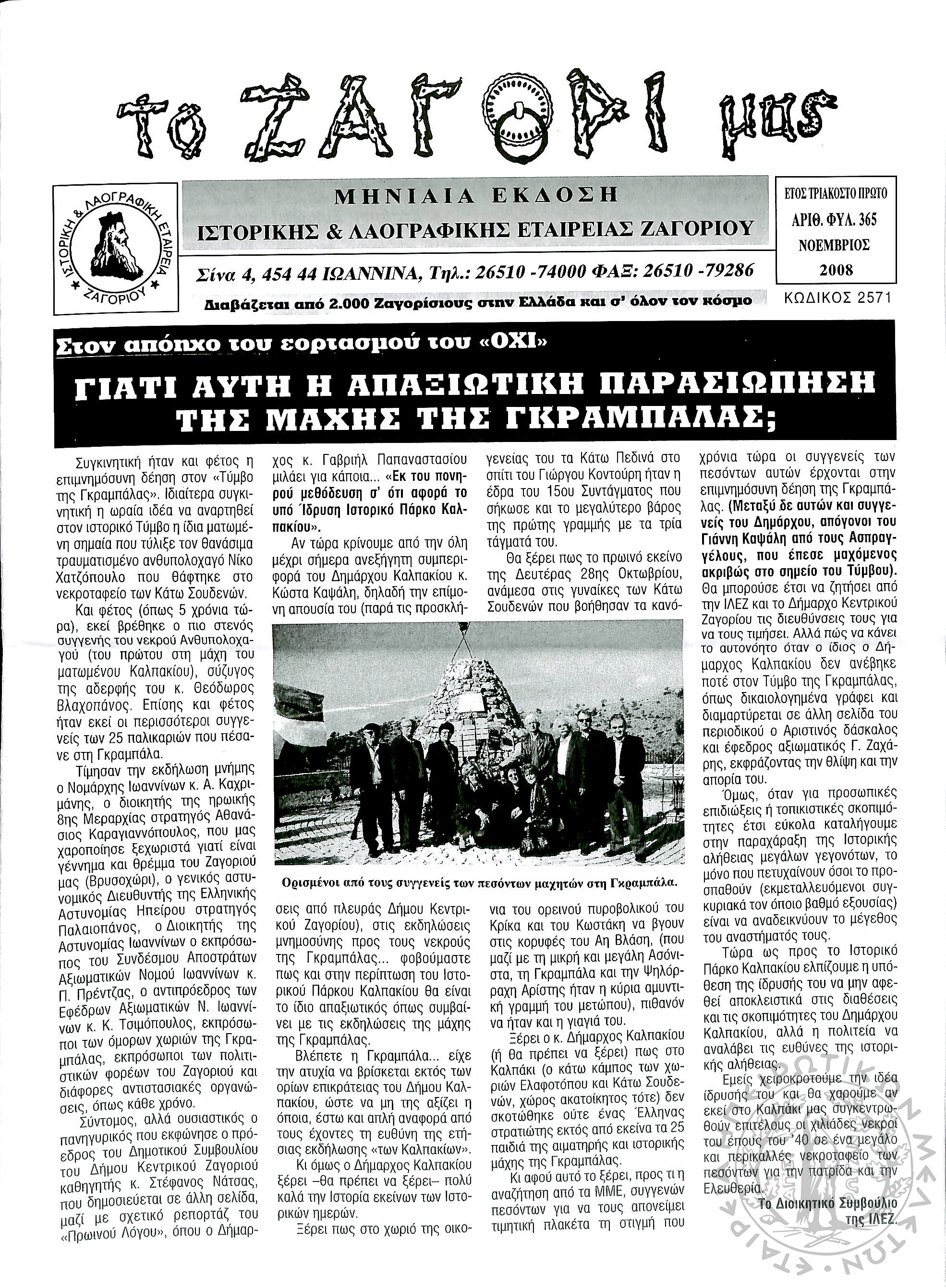 Το Ζαγόρι μας: μηνιαία έκδοση Ιστορικής και Λαογραφικής Εταιρείας Ζαγορίου (φ. 365)Έτος 31, φ. 365...