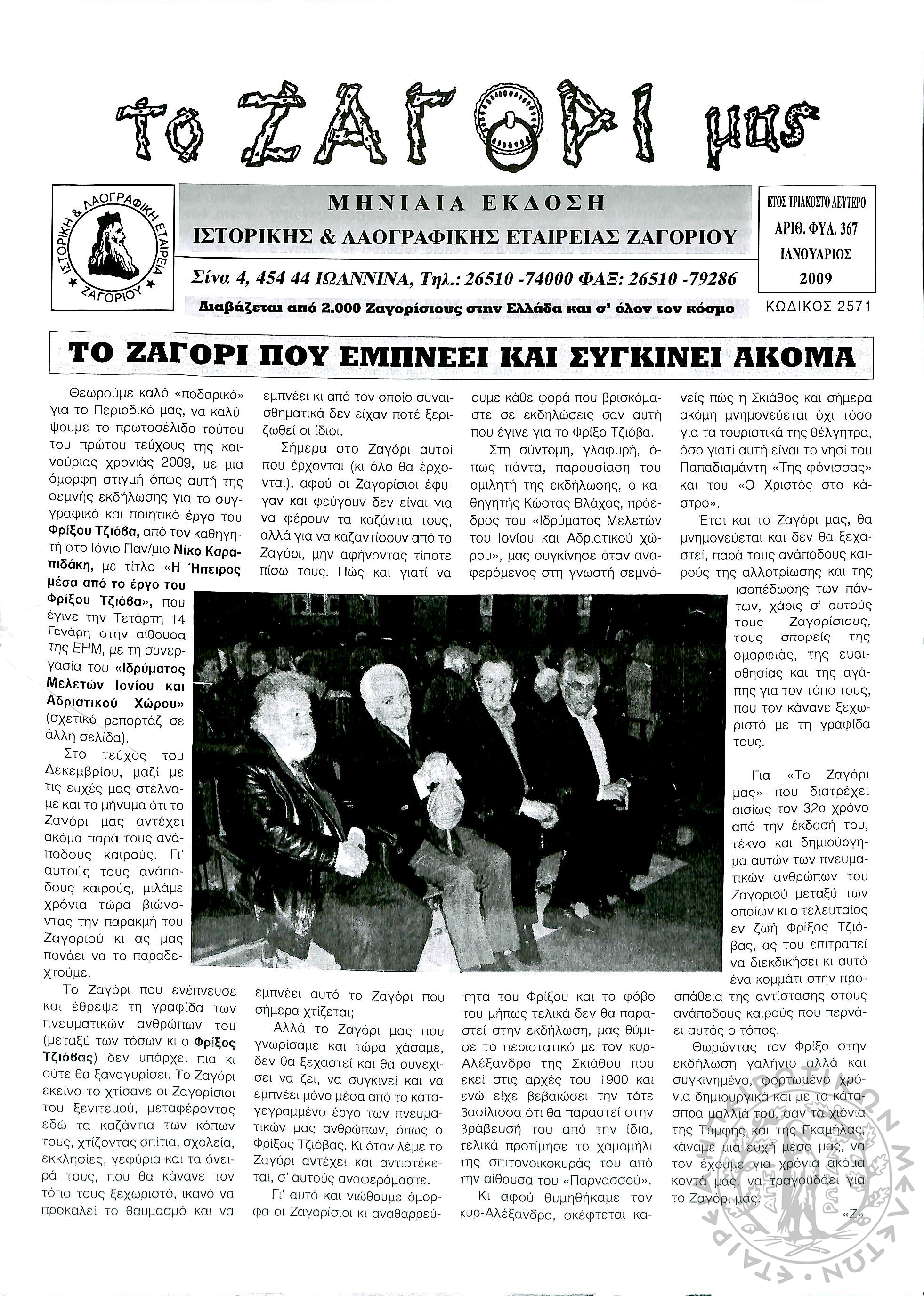 Το Ζαγόρι μας: μηνιαία έκδοση Ιστορικής και Λαογραφικής Εταιρείας Ζαγορίου (φ. 367)Έτος 32, φ. 367...