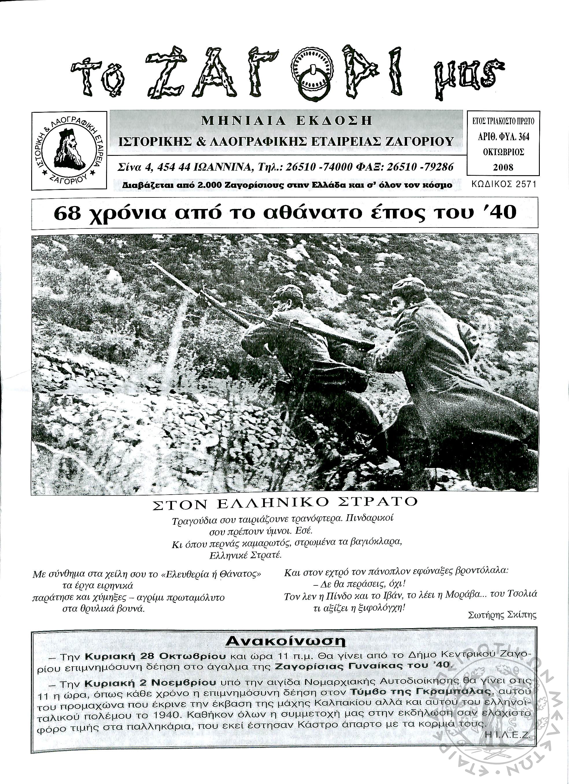 Το Ζαγόρι μας: μηνιαία έκδοση Ιστορικής και Λαογραφικής Εταιρείας Ζαγορίου (φ. 364)Έτος 31, φ. 364...