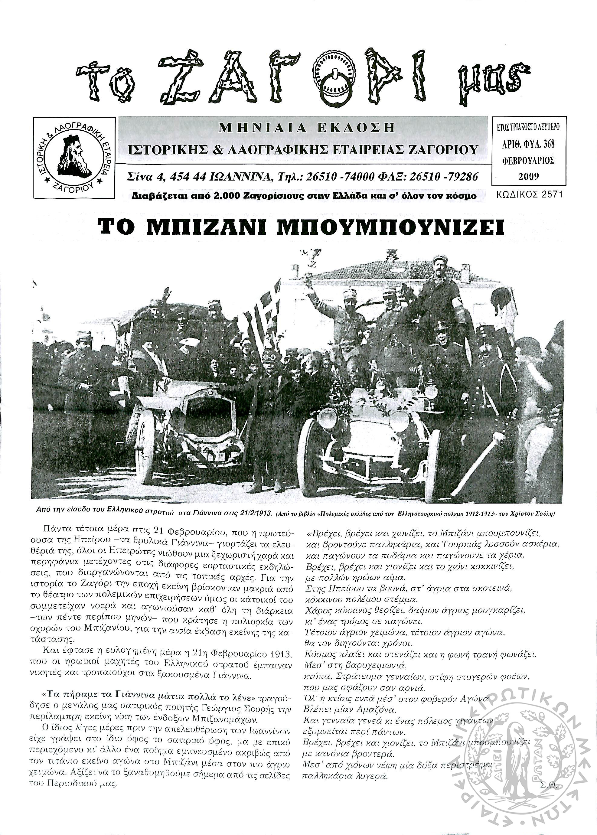 Το Ζαγόρι μας: μηνιαία έκδοση Ιστορικής και Λαογραφικής Εταιρείας Ζαγορίου (φ. 368)Έτος 32, φ. 368...