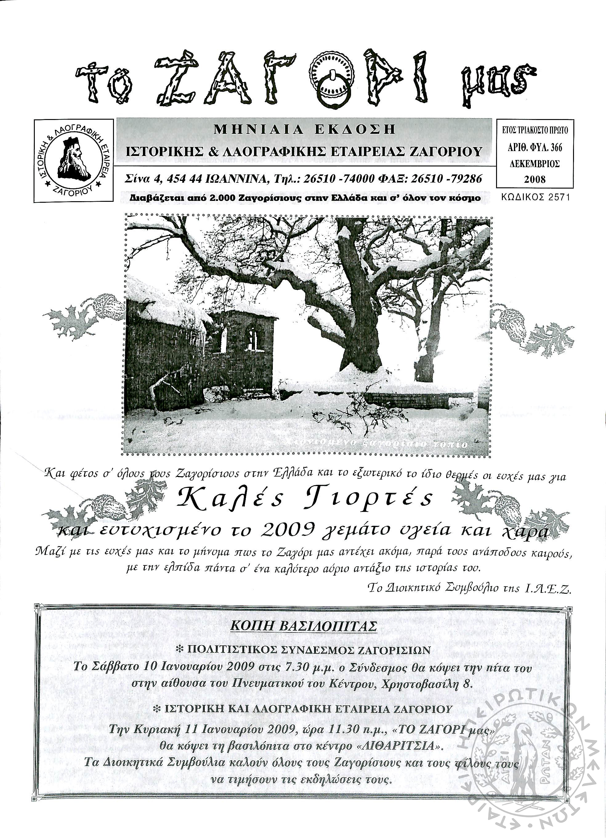 Το Ζαγόρι μας: μηνιαία έκδοση Ιστορικής και Λαογραφικής Εταιρείας Ζαγορίου (φ. 366)Έτος 31, φ. 366...