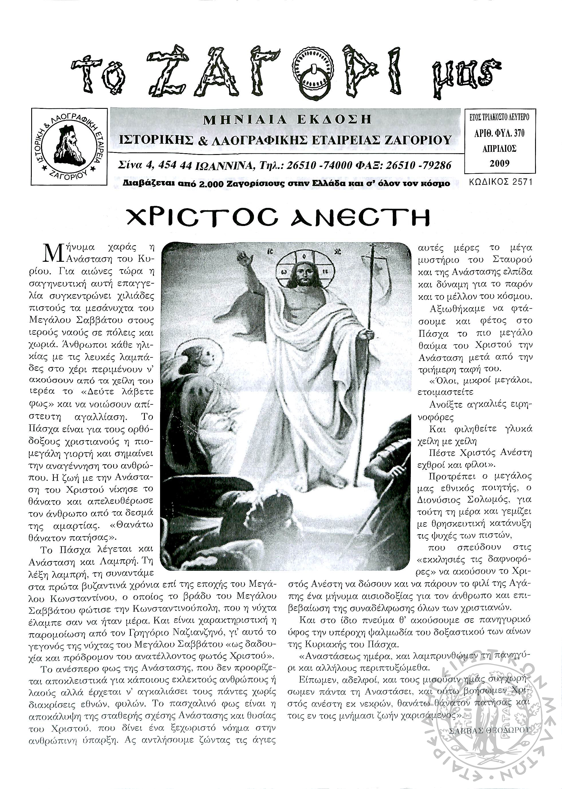 Το Ζαγόρι μας: μηνιαία έκδοση Ιστορικής και Λαογραφικής Εταιρείας Ζαγορίου (φ. 370)Έτος 32, φ. 370...