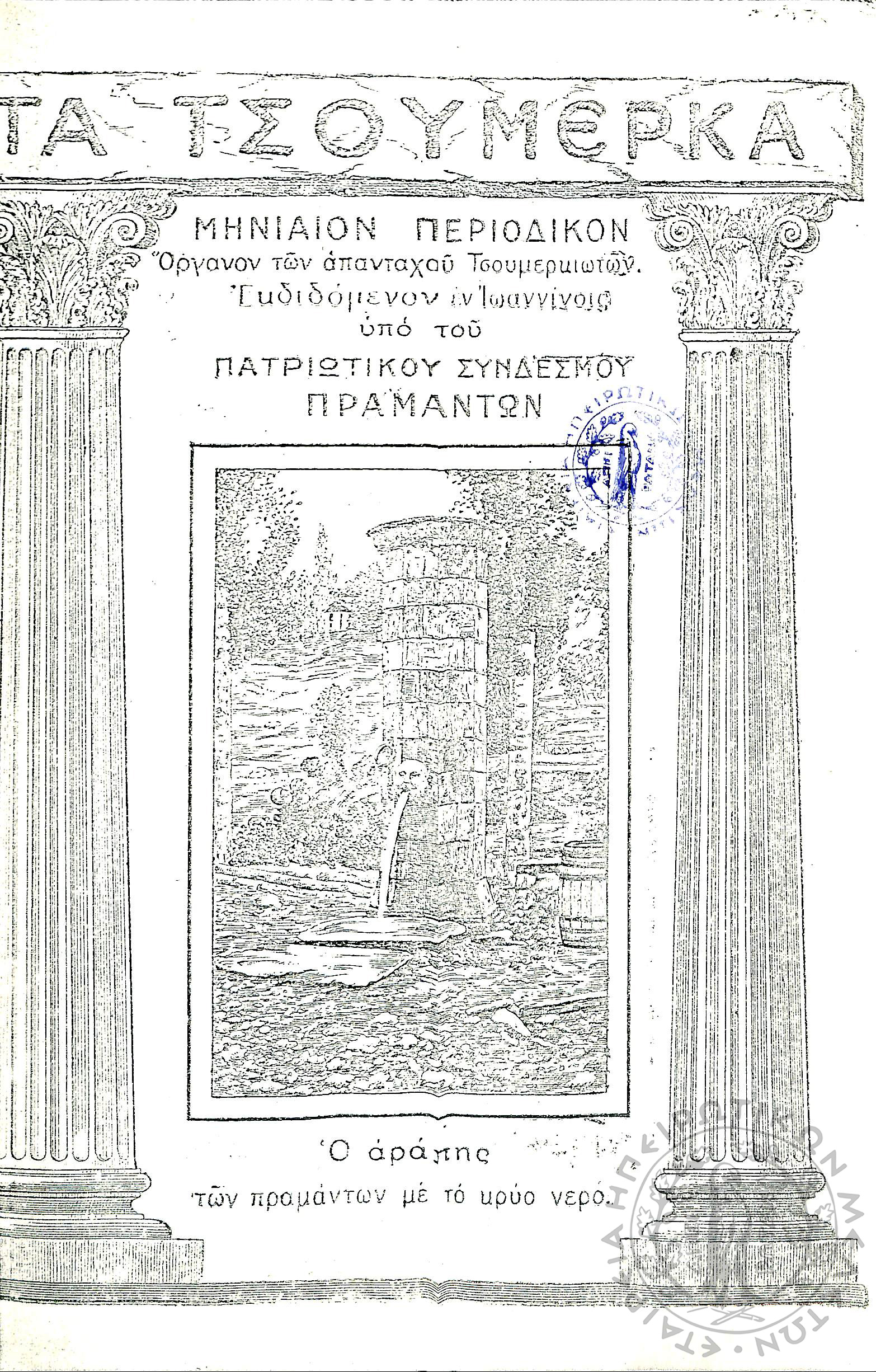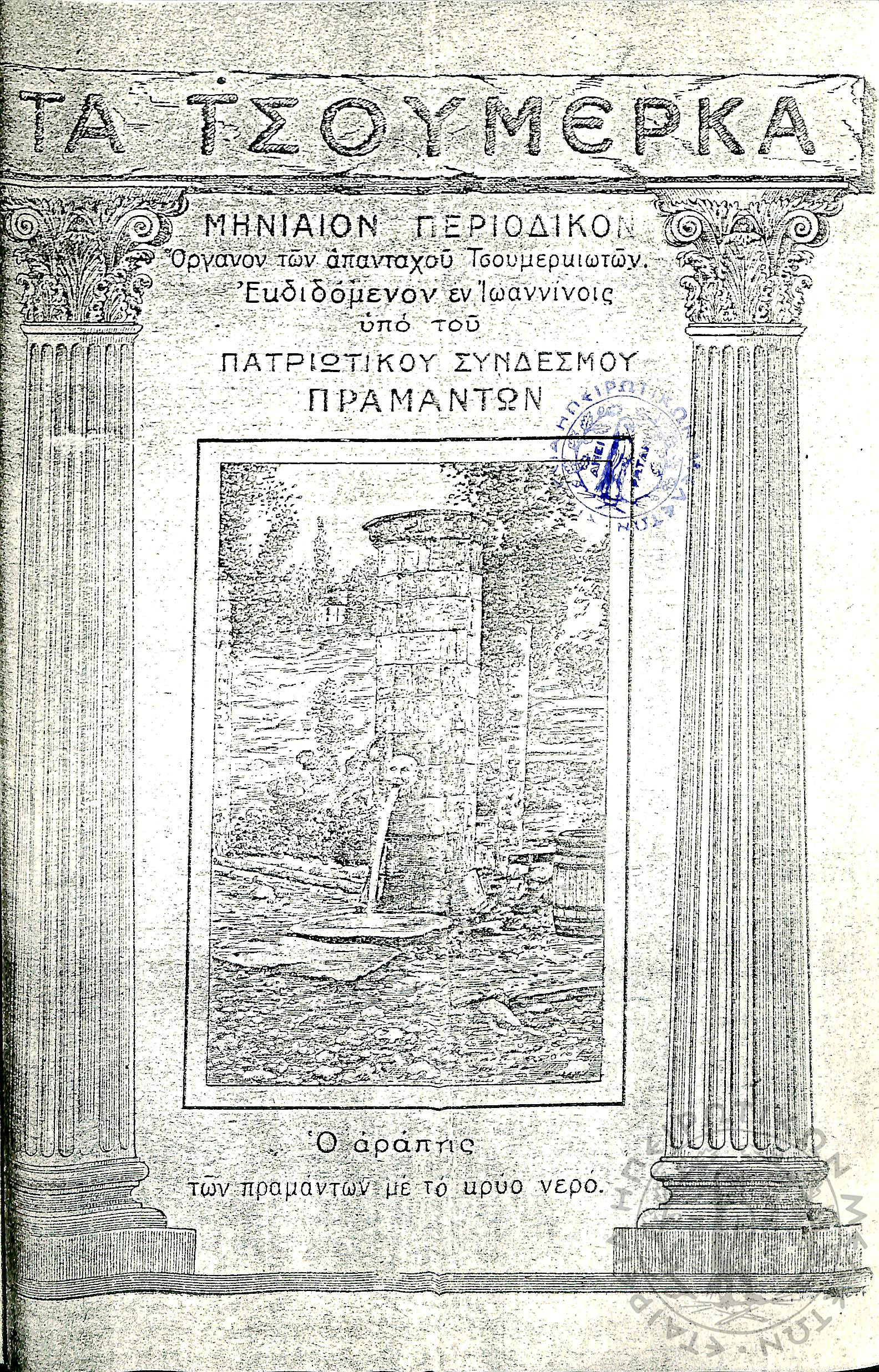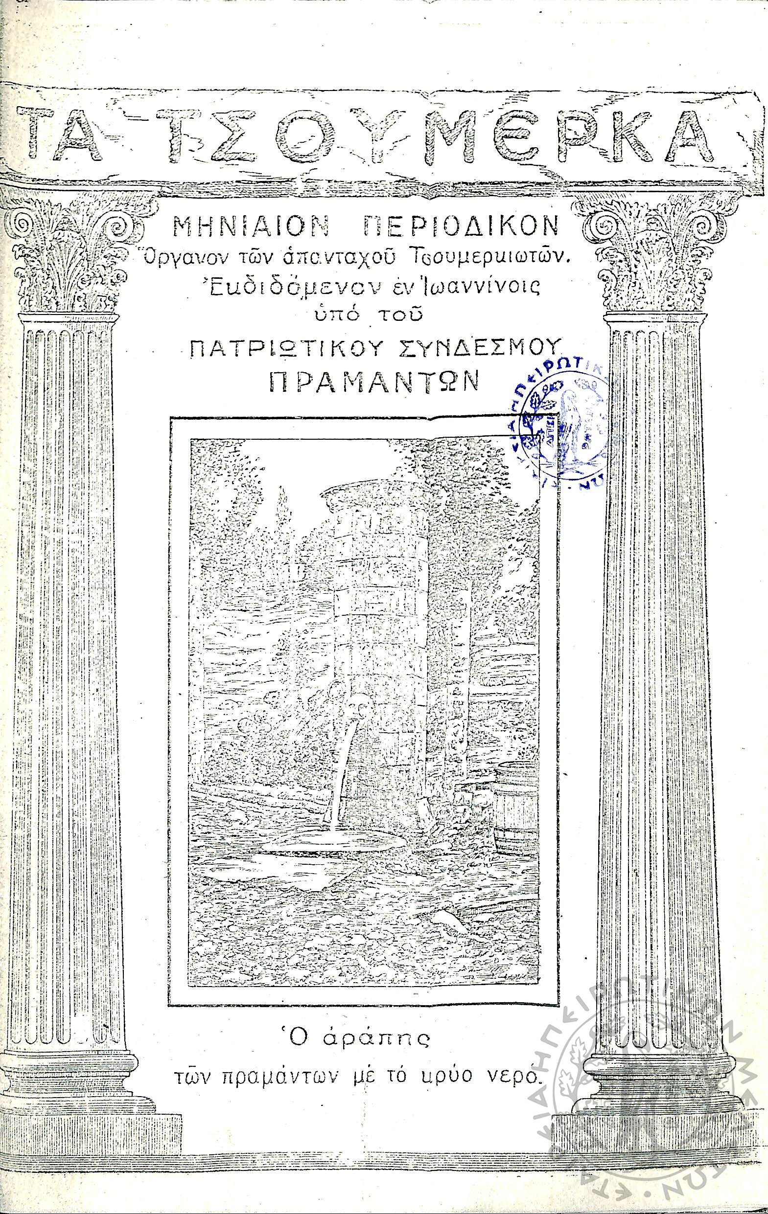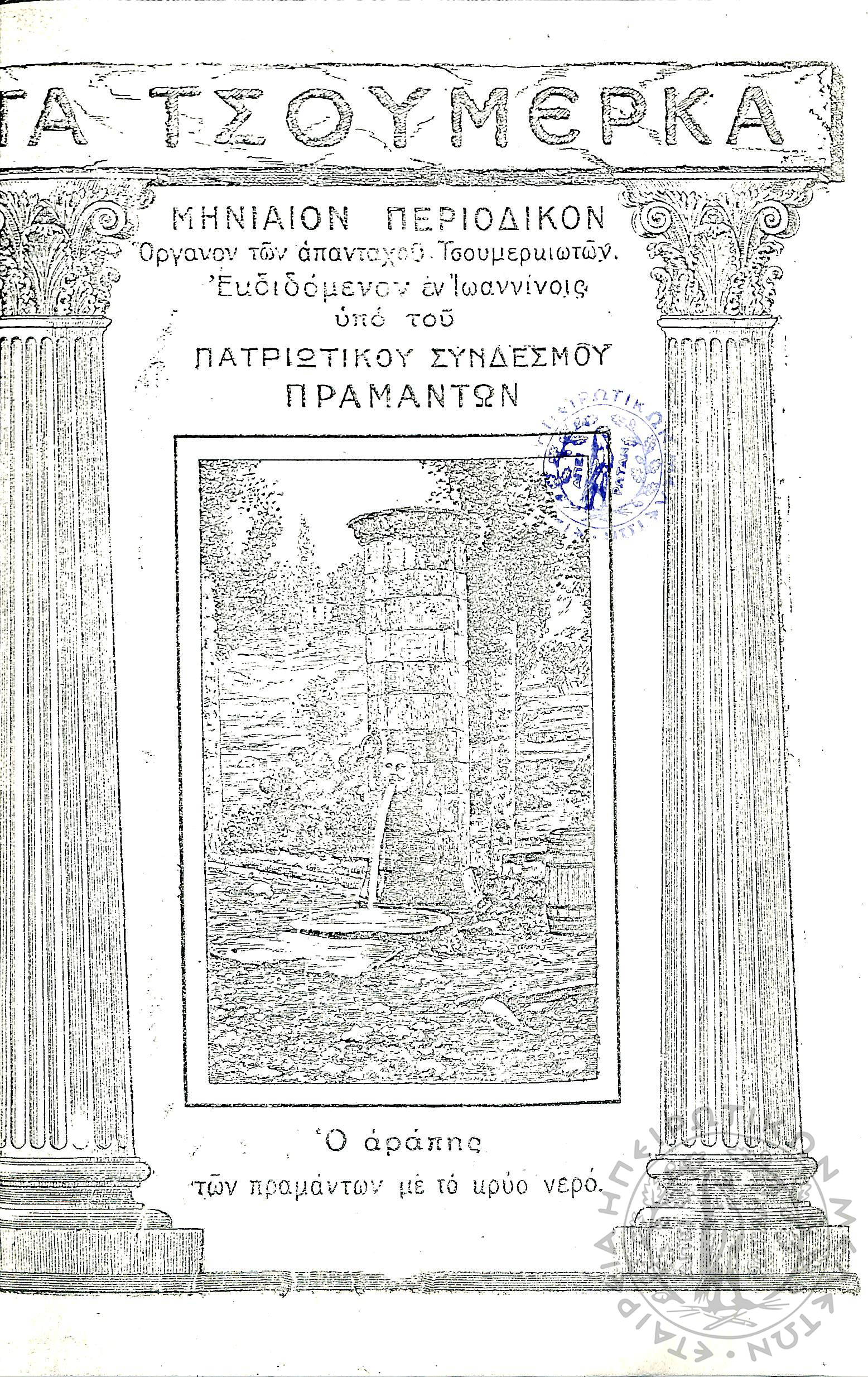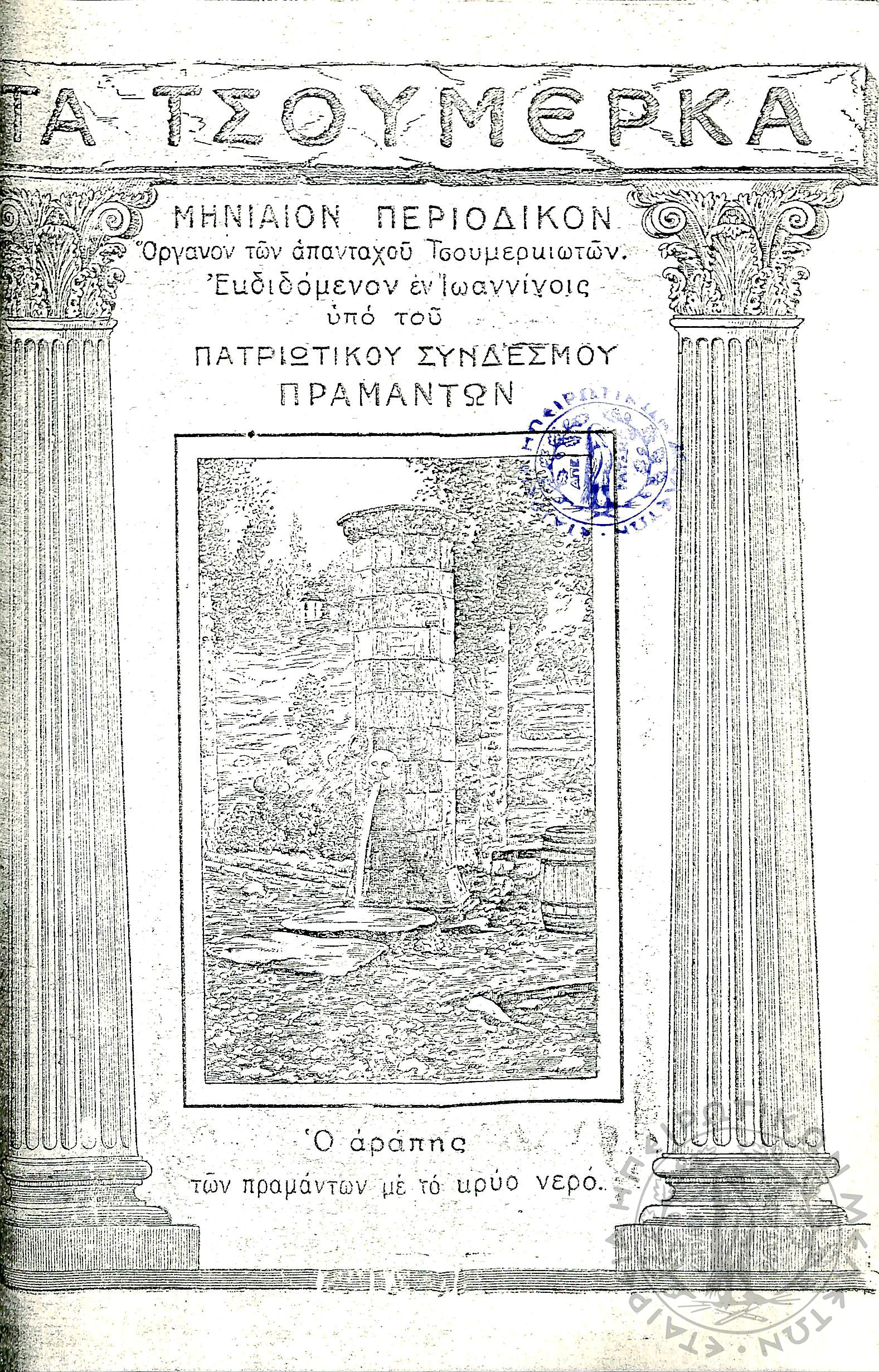 Τα Τσουμέρκα: μηνιαίον περιοδικόν - όργανον των απανταχού Τσουμερκιωτών (τεύχ. 12)Έτος Α΄, τεύχ. 12...