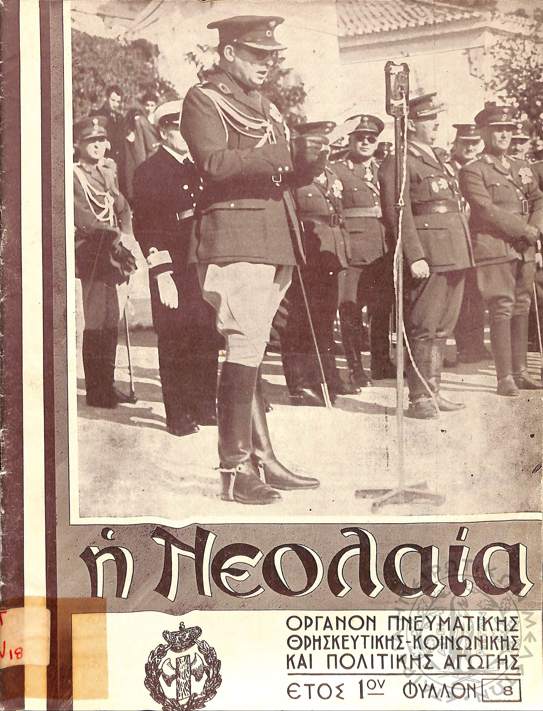 Η Νεολαία: επίσημον όργανον πνευματικής, θρησκευτικής, ηθικής, κοινωνικής και πολιτικής αγωγής της "Εθνικής Οργανώσεως Νεολαίας της Ελλάδος" (1938, τεύχ. 8)Έτος 1, τεύχ. 8...