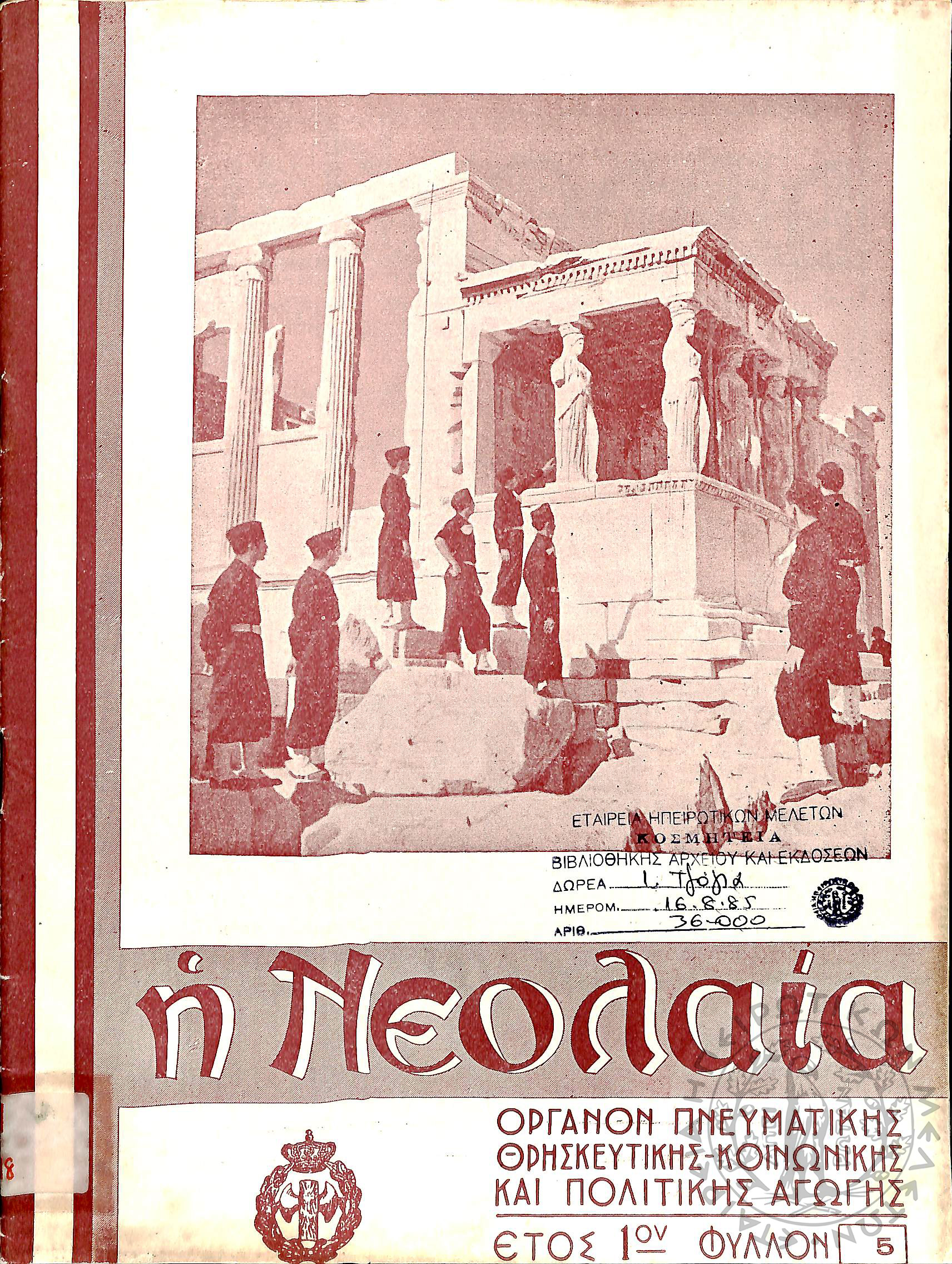 Η Νεολαία: επίσημον όργανον πνευματικής, θρησκευτικής, ηθικής, κοινωνικής και πολιτικής αγωγής της "Εθνικής Οργανώσεως Νεολαίας της Ελλάδος" (1938, τεύχ. 5)Έτος 1, τεύχ. 5...