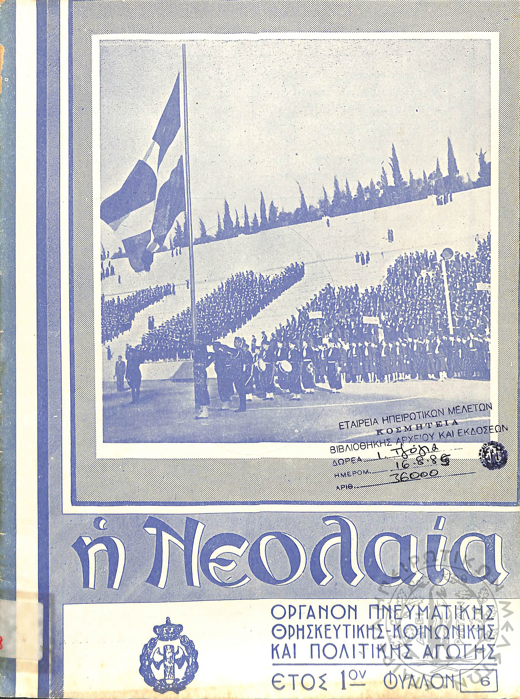 Η Νεολαία: επίσημον όργανον πνευματικής, θρησκευτικής, ηθικής, κοινωνικής και πολιτικής αγωγής της "Εθνικής Οργανώσεως Νεολαίας της Ελλάδος" (1938, τεύχ. 6)Έτος 1, τεύχ. 6...