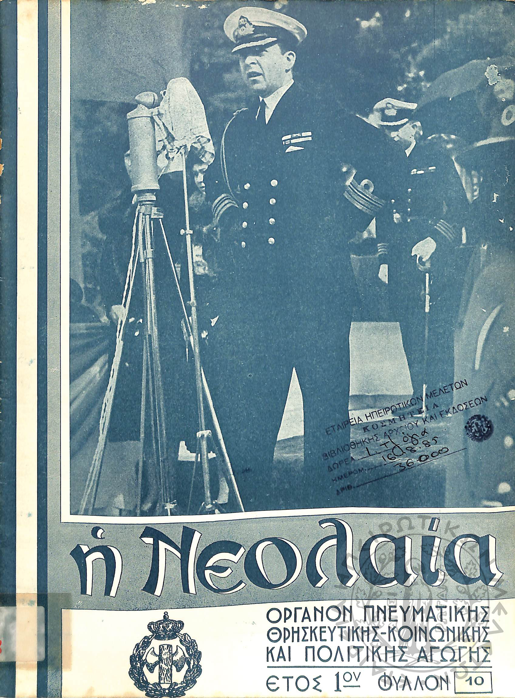 Η Νεολαία: επίσημον όργανον πνευματικής, θρησκευτικής, ηθικής, κοινωνικής και πολιτικής αγωγής της "Εθνικής Οργανώσεως Νεολαίας της Ελλάδος" (1938, τεύχ. 10)Έτος 1, τεύχ. 10...