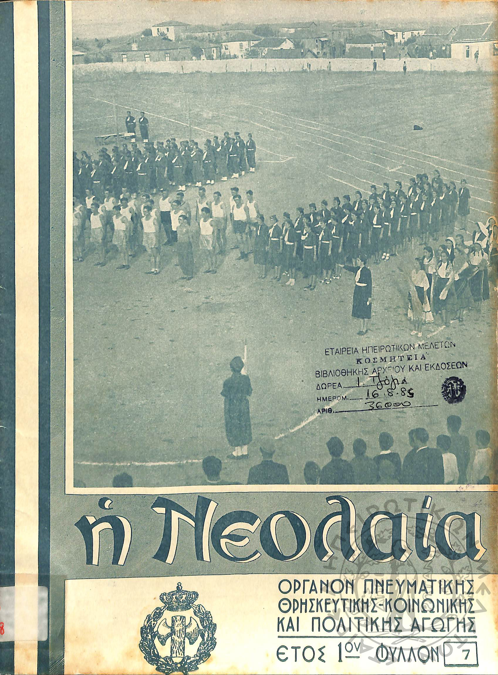 Η Νεολαία: επίσημον όργανον πνευματικής, θρησκευτικής, ηθικής, κοινωνικής και πολιτικής αγωγής της "Εθνικής Οργανώσεως Νεολαίας της Ελλάδος" (1938, τεύχ. 7)Έτος 1, τεύχ. 7...