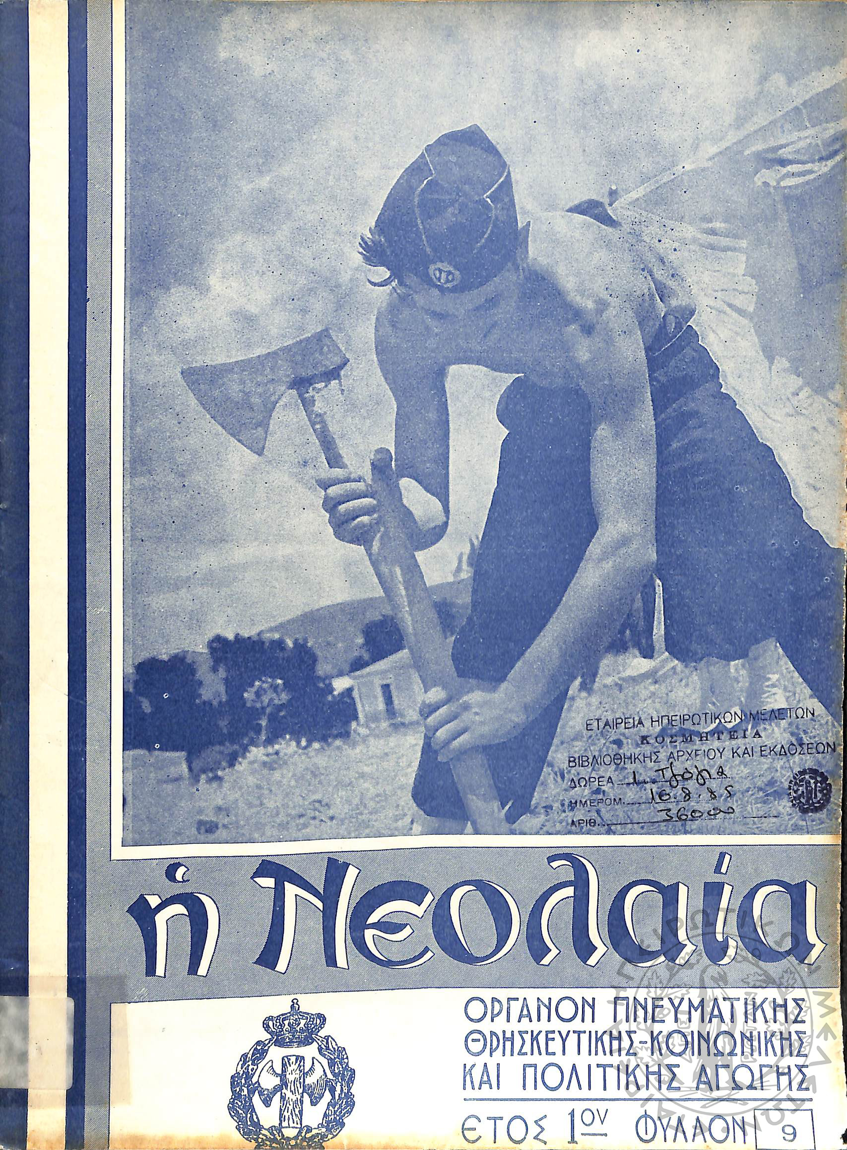 Η Νεολαία: επίσημον όργανον πνευματικής, θρησκευτικής, ηθικής, κοινωνικής και πολιτικής αγωγής της "Εθνικής Οργανώσεως Νεολαίας της Ελλάδος" (1938, τεύχ. 9)Έτος 1, τεύχ. 9...