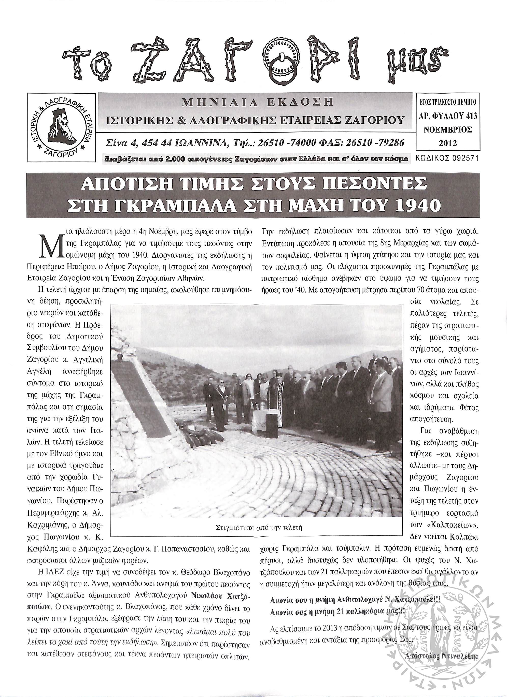 Το Ζαγόρι μας: μηνιαία έκδοση Ιστορικής και Λαογραφικής Εταιρείας Ζαγορίου (φ. 413)Έτος 35, φ. 413...