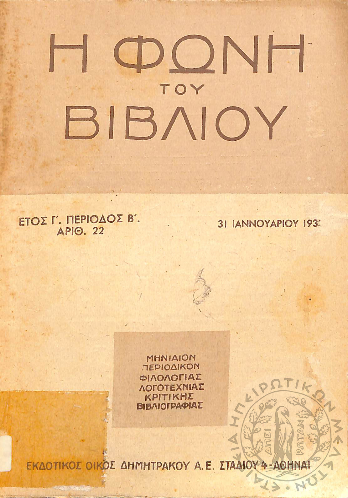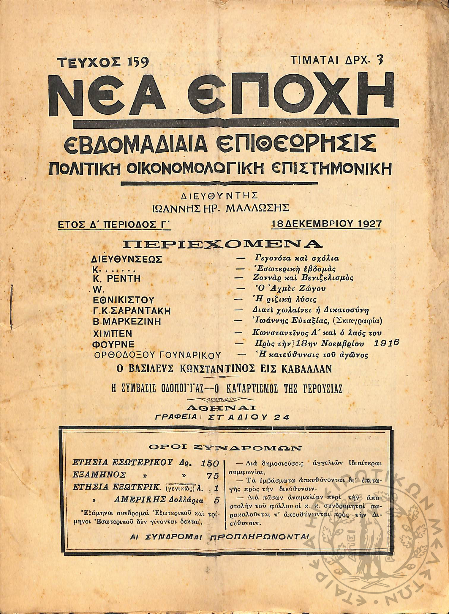 Νέα εποχή: εβδομαδιαία επιθεώρησις πολιτική, οικονομολογική, επιστημονική (τεύχ. 159)Έτος Δ΄, τεύχ. 159...