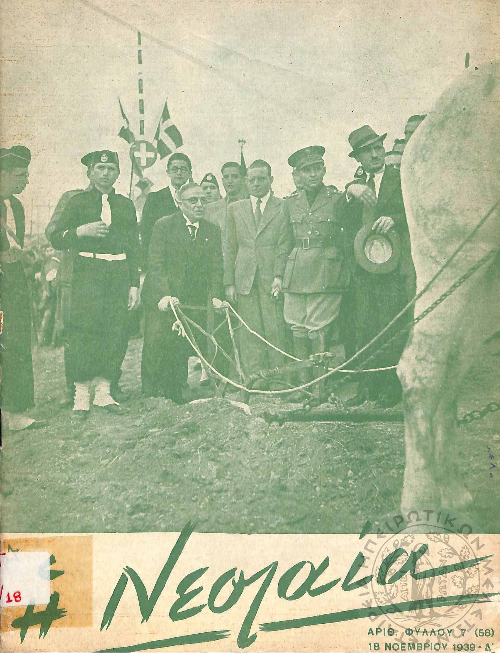 Η Νεολαία: επίσημον όργανον πνευματικής, θρησκευτικής, ηθικής, κοινωνικής και πολιτικής αγωγής της "Εθνικής Οργανώσεως Νεολαίας της Ελλάδος" (1939, τεύχ. 7 (58))Έτος 2, τεύχ. 7 (58)...