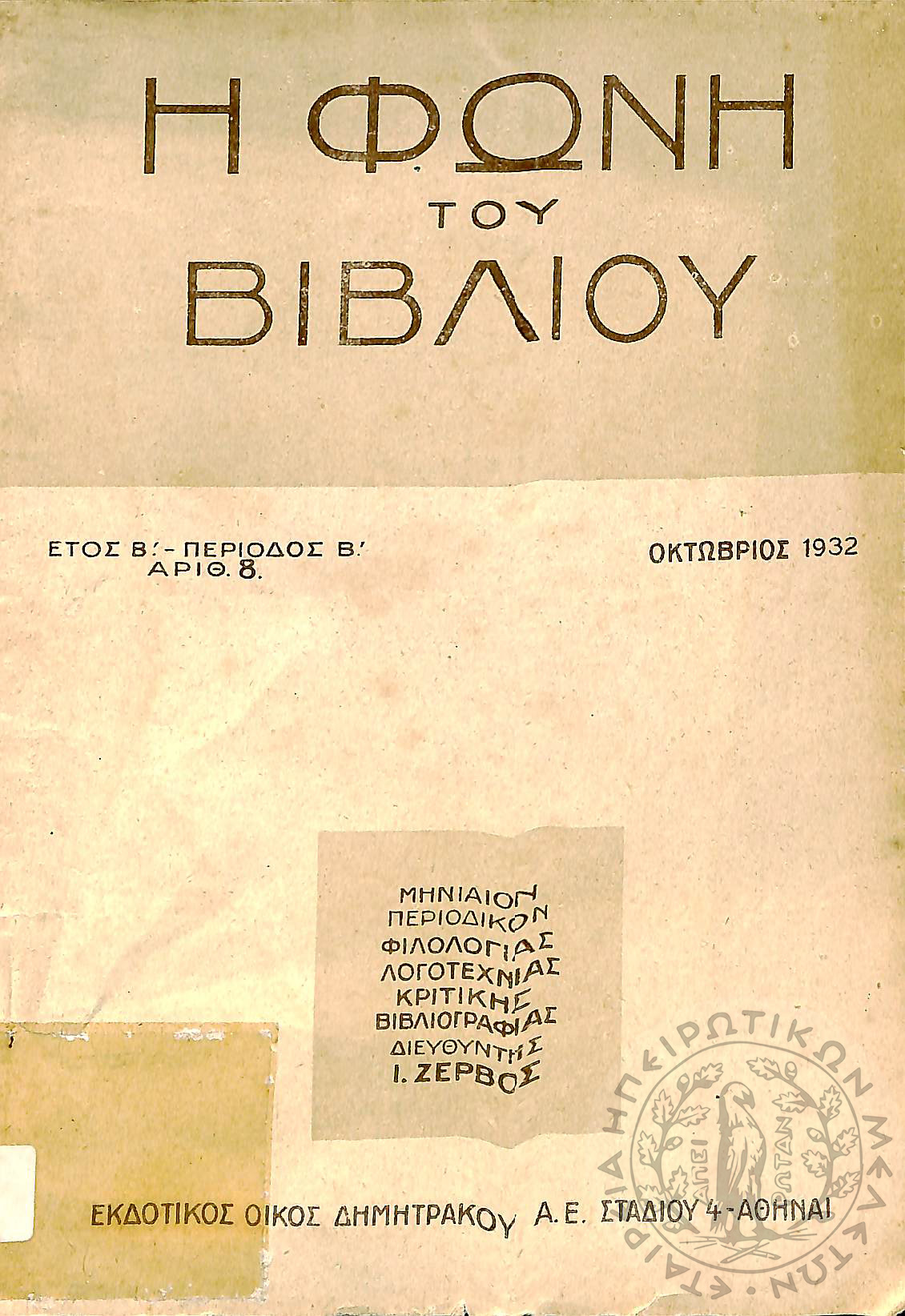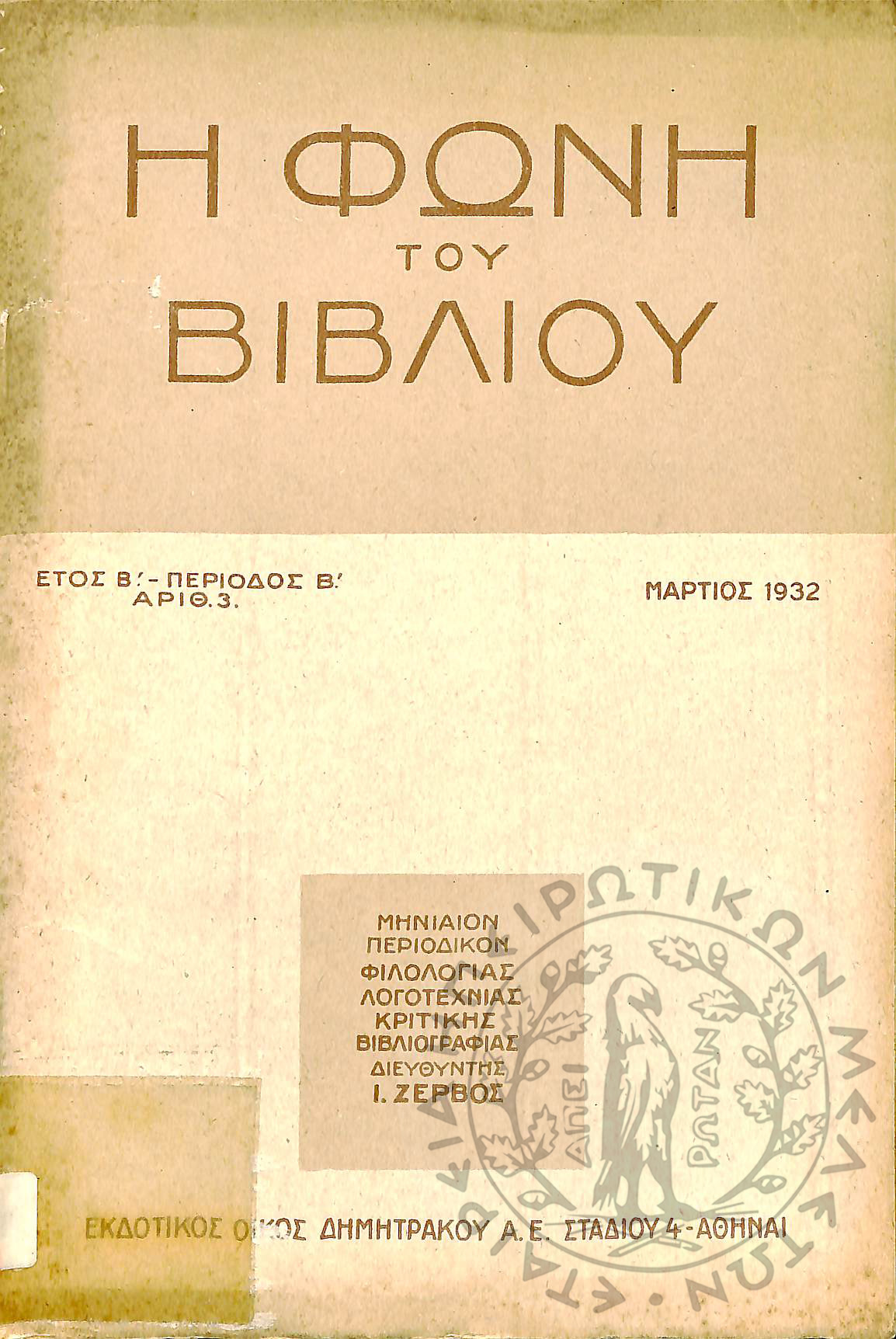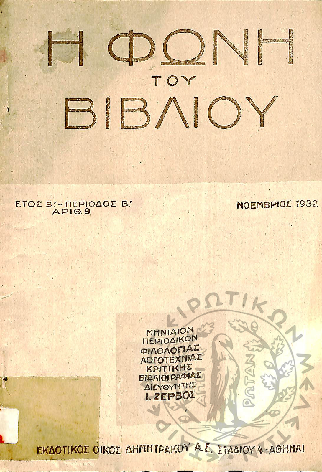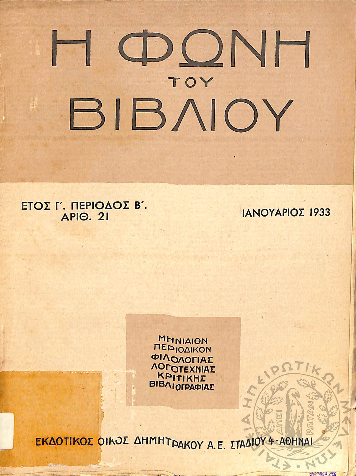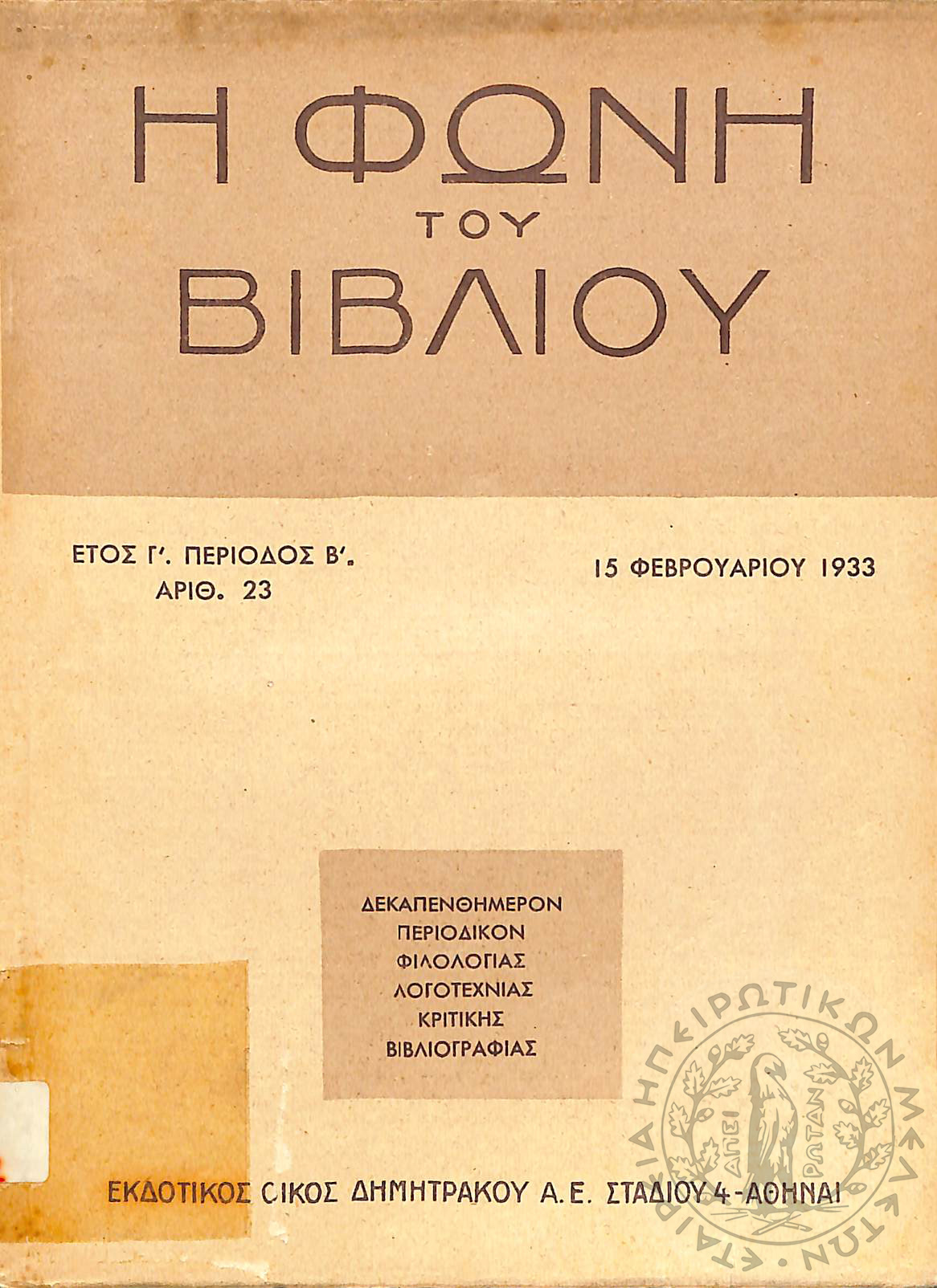 Νέα εποχή: εβδομαδιαία επιθεώρησις πολιτική, οικονομολογική, επιστημονική (τεύχ. 169)Έτος Δ΄, τεύχ. 169...