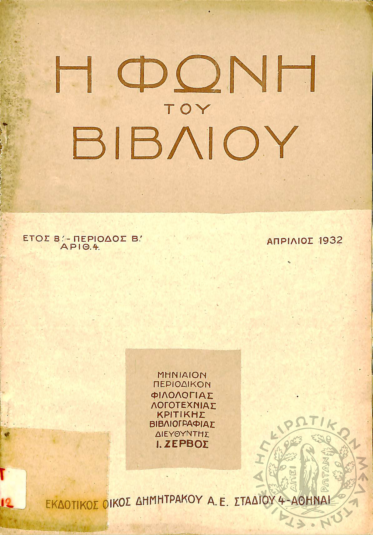 Η Νεολαία: επίσημον όργανον πνευματικής, θρησκευτικής, ηθικής, κοινωνικής και πολιτικής αγωγής της "Εθνικής Οργανώσεως Νεολαίας της Ελλάδος" (1938, τεύχ. 12)Έτος 4, τεύχ. 12...