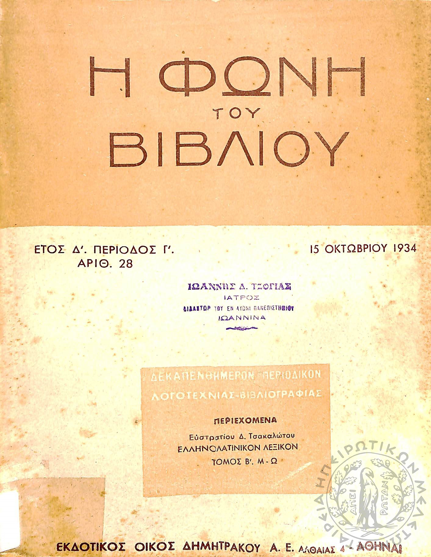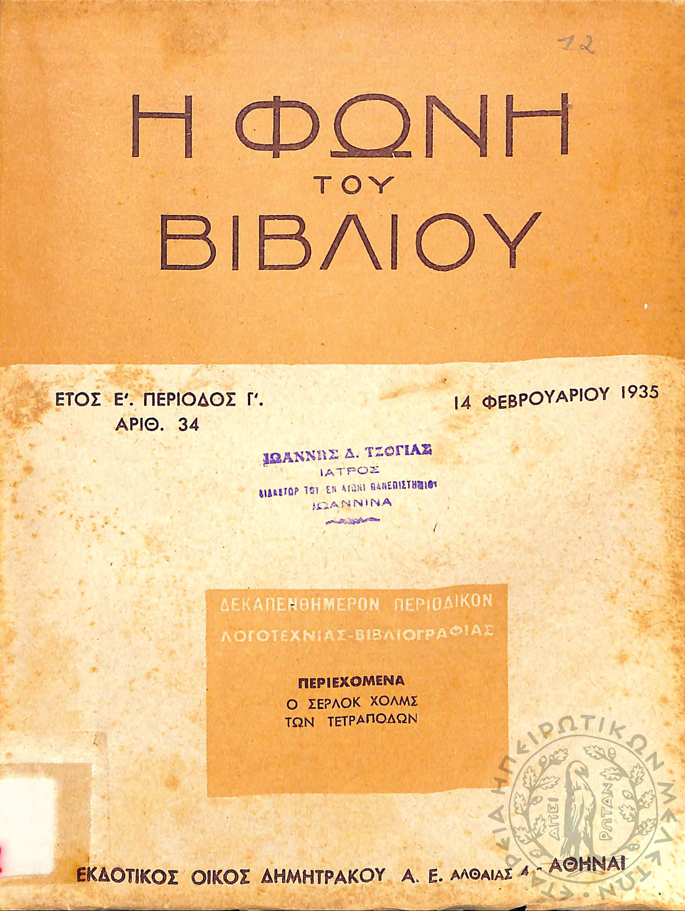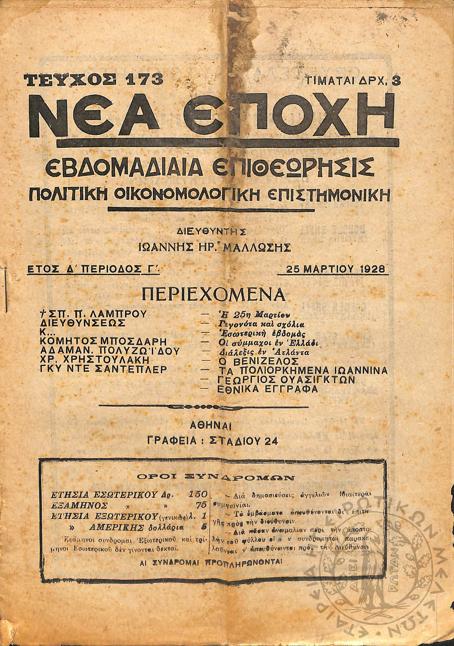 Νέα εποχή: εβδομαδιαία επιθεώρησις πολιτική, οικονομολογική, επιστημονική (τεύχ. 173)Έτος Δ΄, τεύχ. 173...