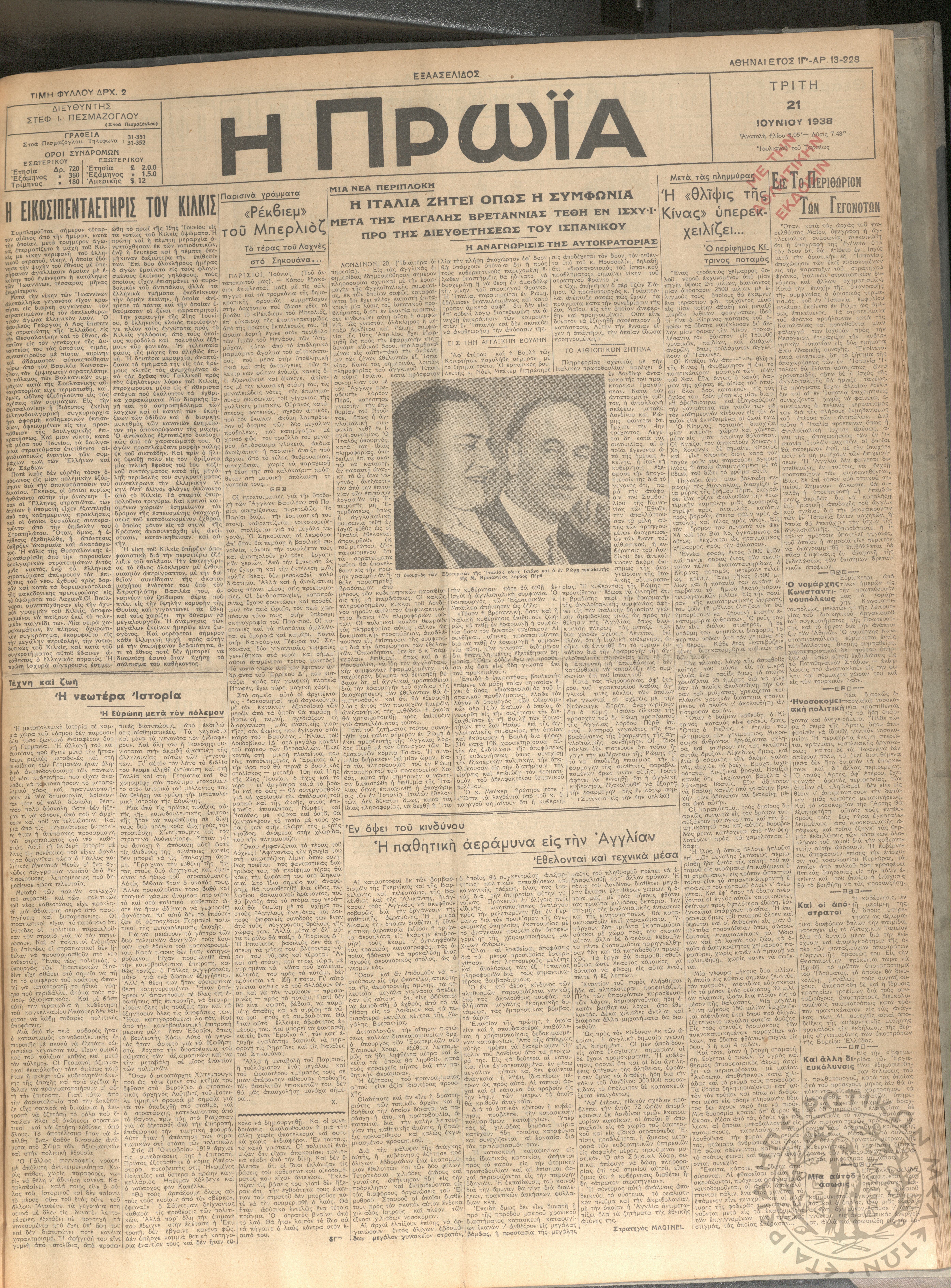 Η Νεολαία: επίσημον όργανον πνευματικής, θρησκευτικής, ηθικής, κοινωνικής και πολιτικής αγωγής της "Εθνικής Οργανώσεως Νεολαίας της Ελλάδος" (1939, τεύχ. 21)Έτος 1, τεύχ. 21...