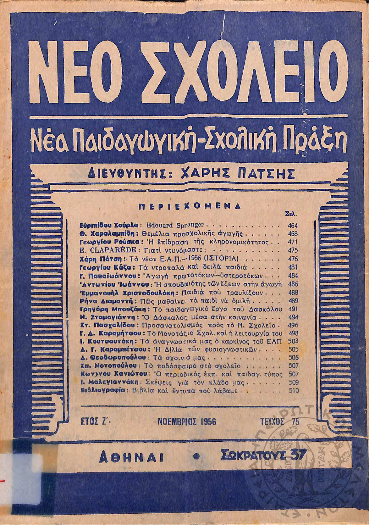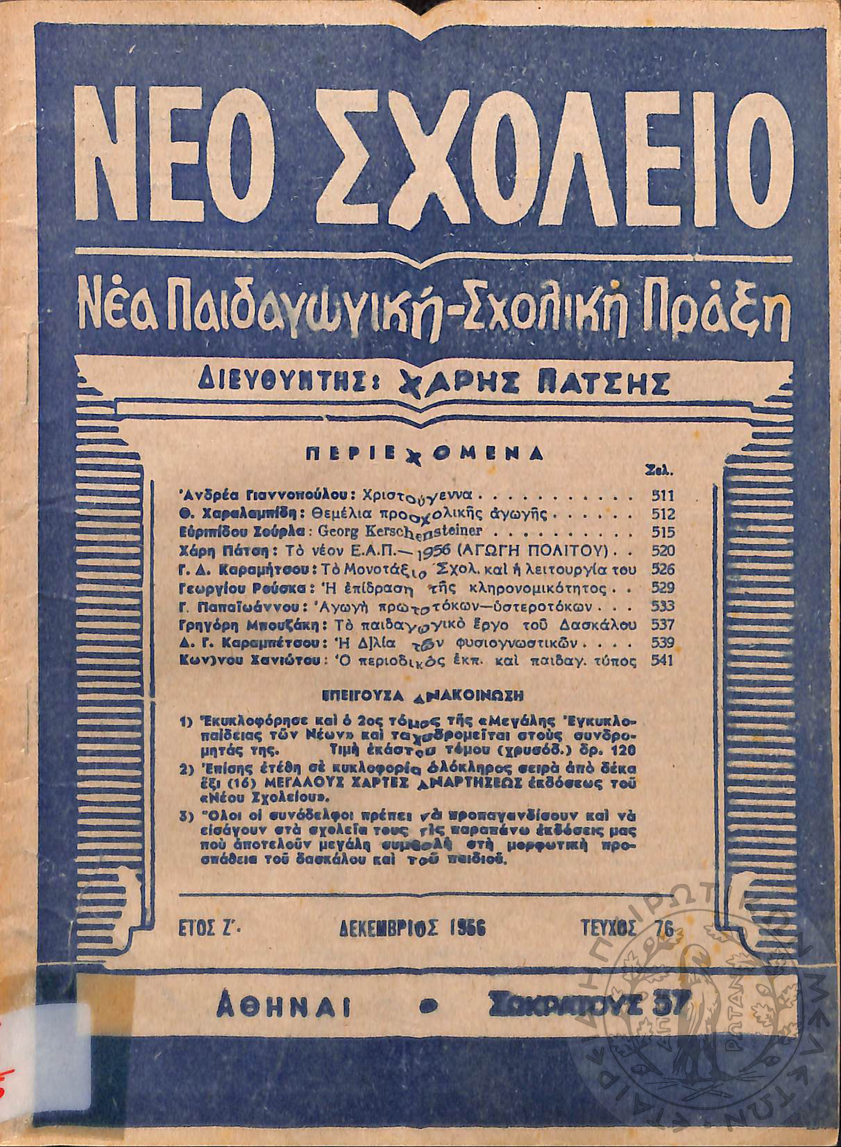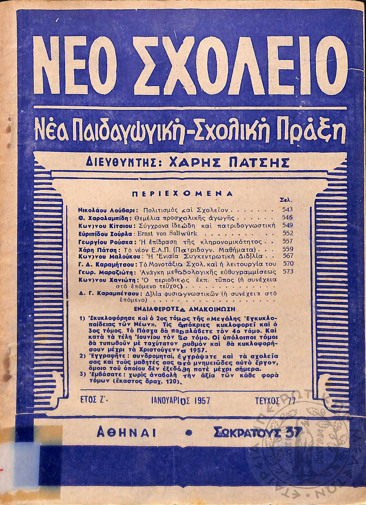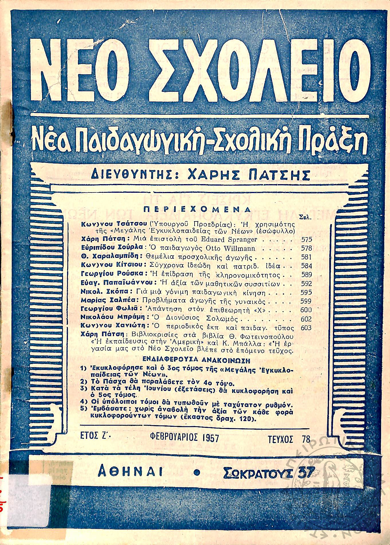 Η Νεολαία: επίσημον όργανον πνευματικής, θρησκευτικής, ηθικής, κοινωνικής και πολιτικής αγωγής της "Εθνικής Οργανώσεως Νεολαίας της Ελλάδος" (χ.χ., χ.α.τ.)Έτος 1, (χ.χ., χ.α.τ.)...