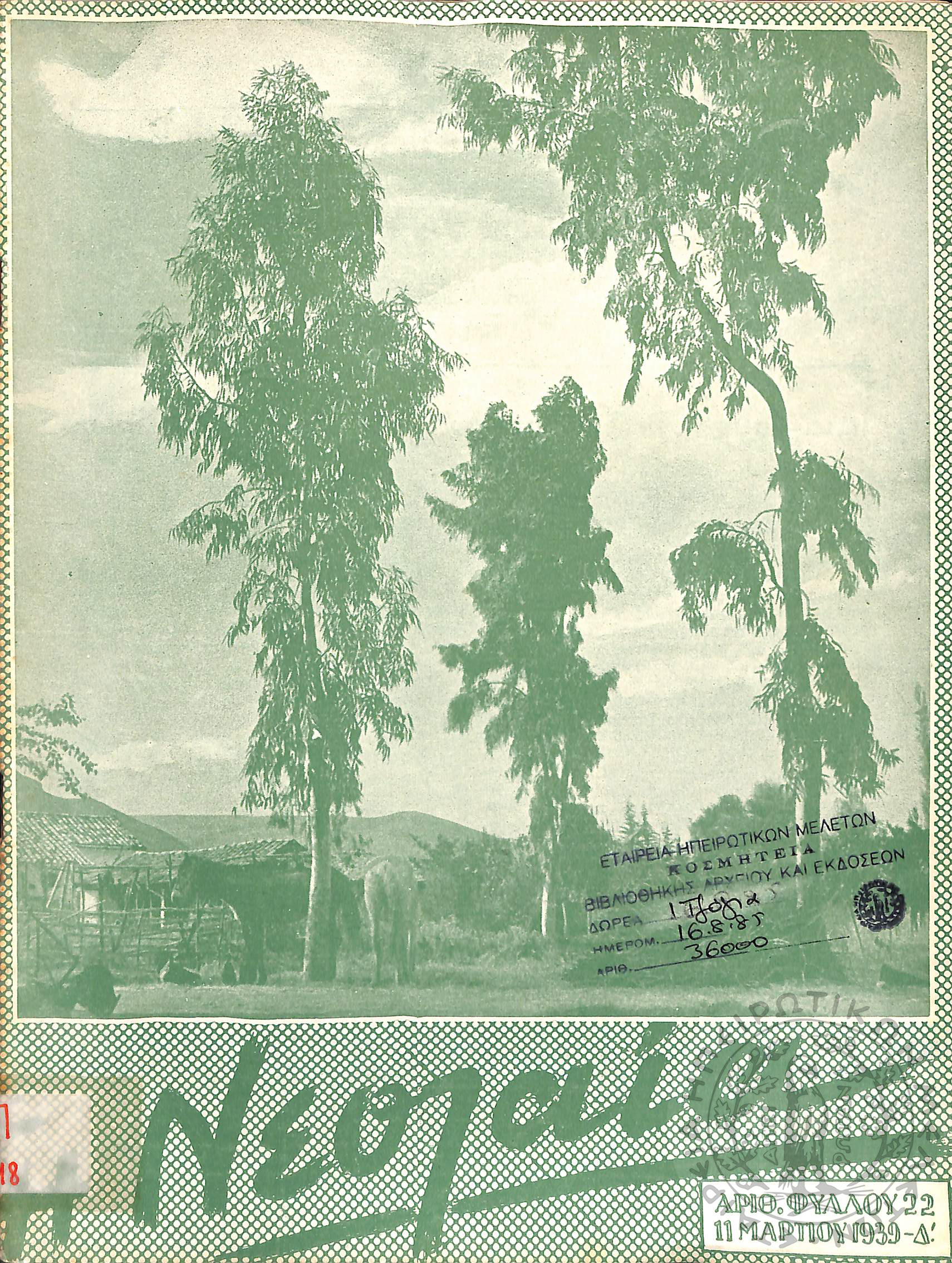 Η Νεολαία: επίσημον όργανον πνευματικής, θρησκευτικής, ηθικής, κοινωνικής και πολιτικής αγωγής της "Εθνικής Οργανώσεως Νεολαίας της Ελλάδος" (1939, τεύχ. 22)Έτος 1, τεύχ. 22...