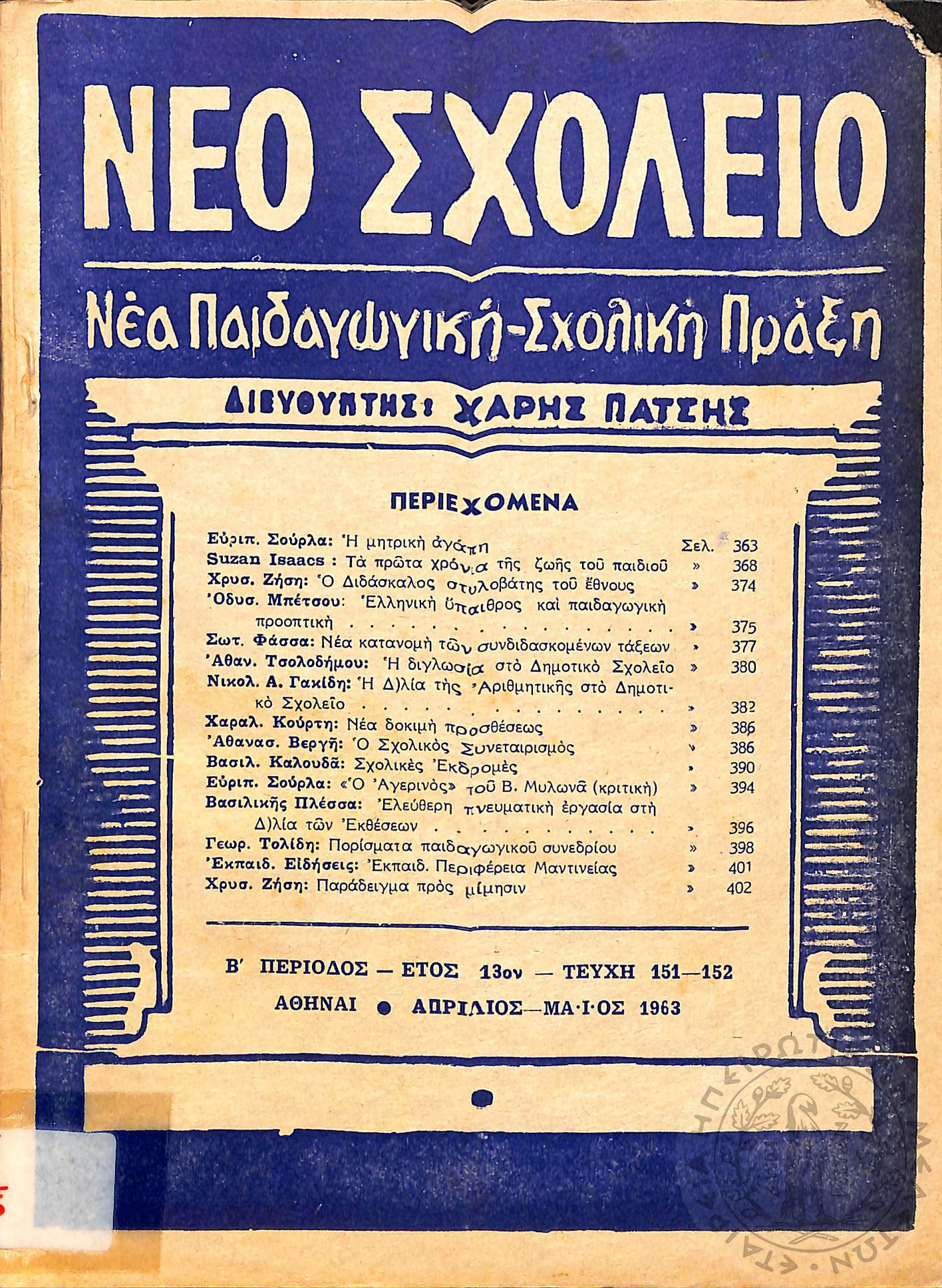 Η Νεολαία: επίσημον όργανον πνευματικής, θρησκευτικής, ηθικής, κοινωνικής και πολιτικής αγωγής της "Εθνικής Οργανώσεως Νεολαίας της Ελλάδος" (1940, τεύχ. 1 (104))Έτος 3, τεύχ. 1 (104)...