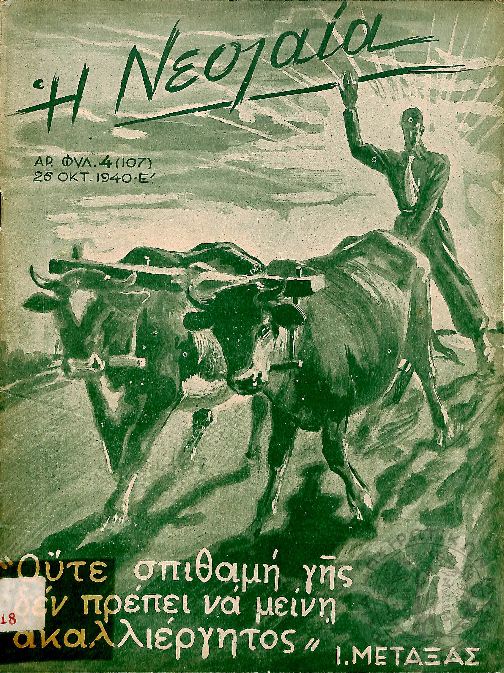 Η Νεολαία: επίσημον όργανον πνευματικής, θρησκευτικής, ηθικής, κοινωνικής και πολιτικής αγωγής της "Εθνικής Οργανώσεως Νεολαίας της Ελλάδος" (1940, τεύχ. 4 (107))Έτος 3, τεύχ. 4 (107)...