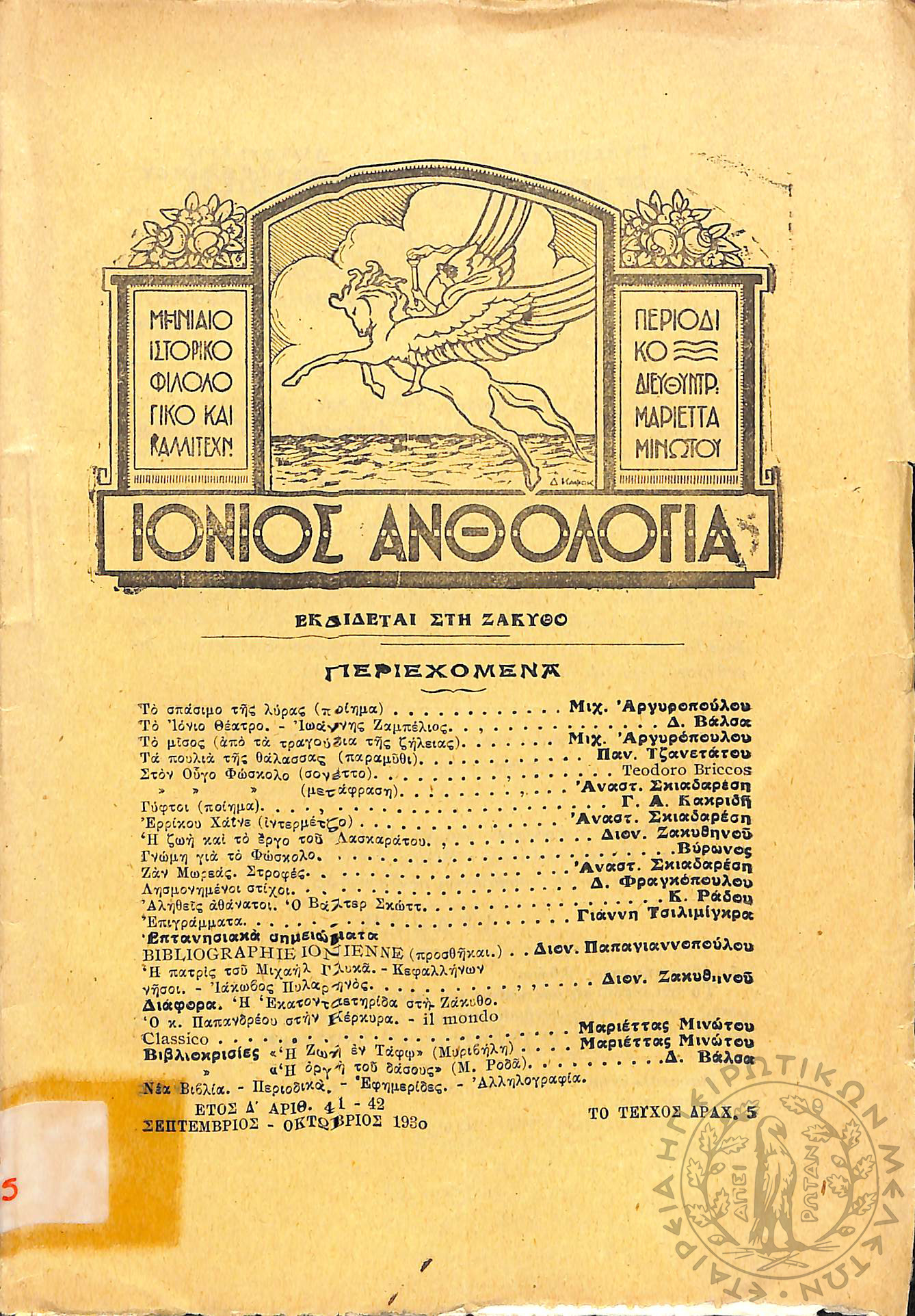 Ιόνιος Ανθολογία: μηνιαίο ιστορικό, φιλολογικό και καλλιτεχνικό περιοδικό (τεύχ. 41-42)Έτος Δ', τεύχ. 41-42...