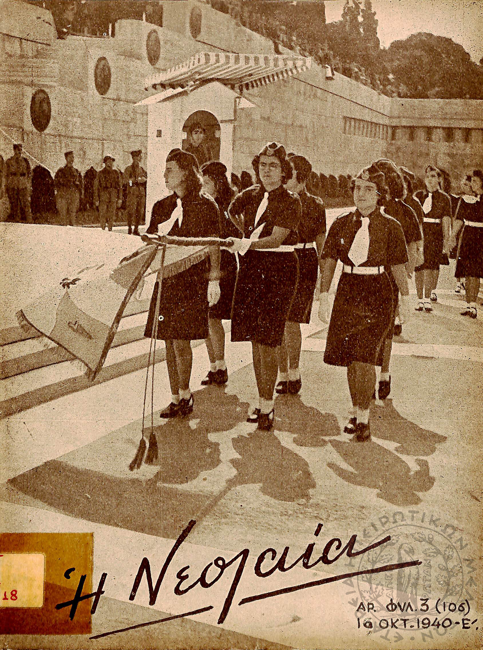 Η Νεολαία: επίσημον όργανον πνευματικής, θρησκευτικής, ηθικής, κοινωνικής και πολιτικής αγωγής της "Εθνικής Οργανώσεως Νεολαίας της Ελλάδος" (1940, τεύχ. 3 (106))Έτος 3, τεύχ. 3 (106)...