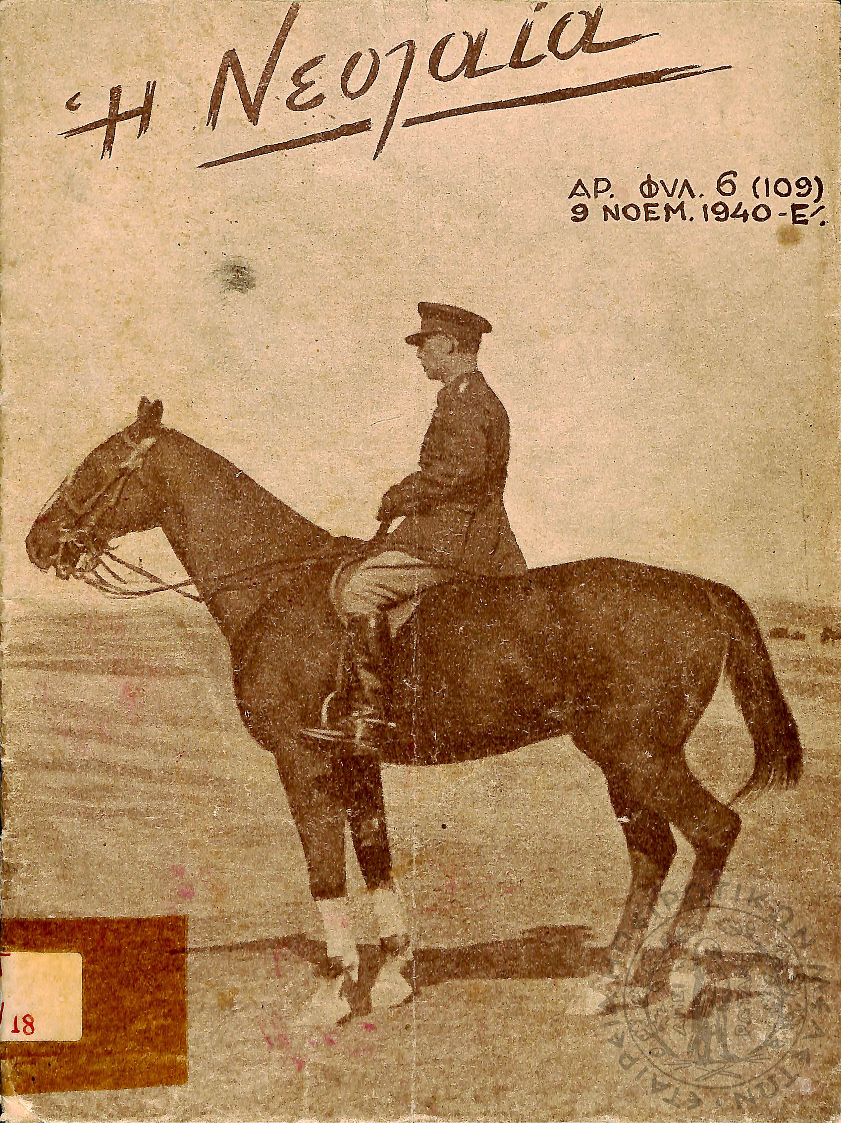 Η Νεολαία: επίσημον όργανον πνευματικής, θρησκευτικής, ηθικής, κοινωνικής και πολιτικής αγωγής της "Εθνικής Οργανώσεως Νεολαίας της Ελλάδος" (1940, τεύχ. 6 (109))Έτος 3, τεύχ. 6 (109)...