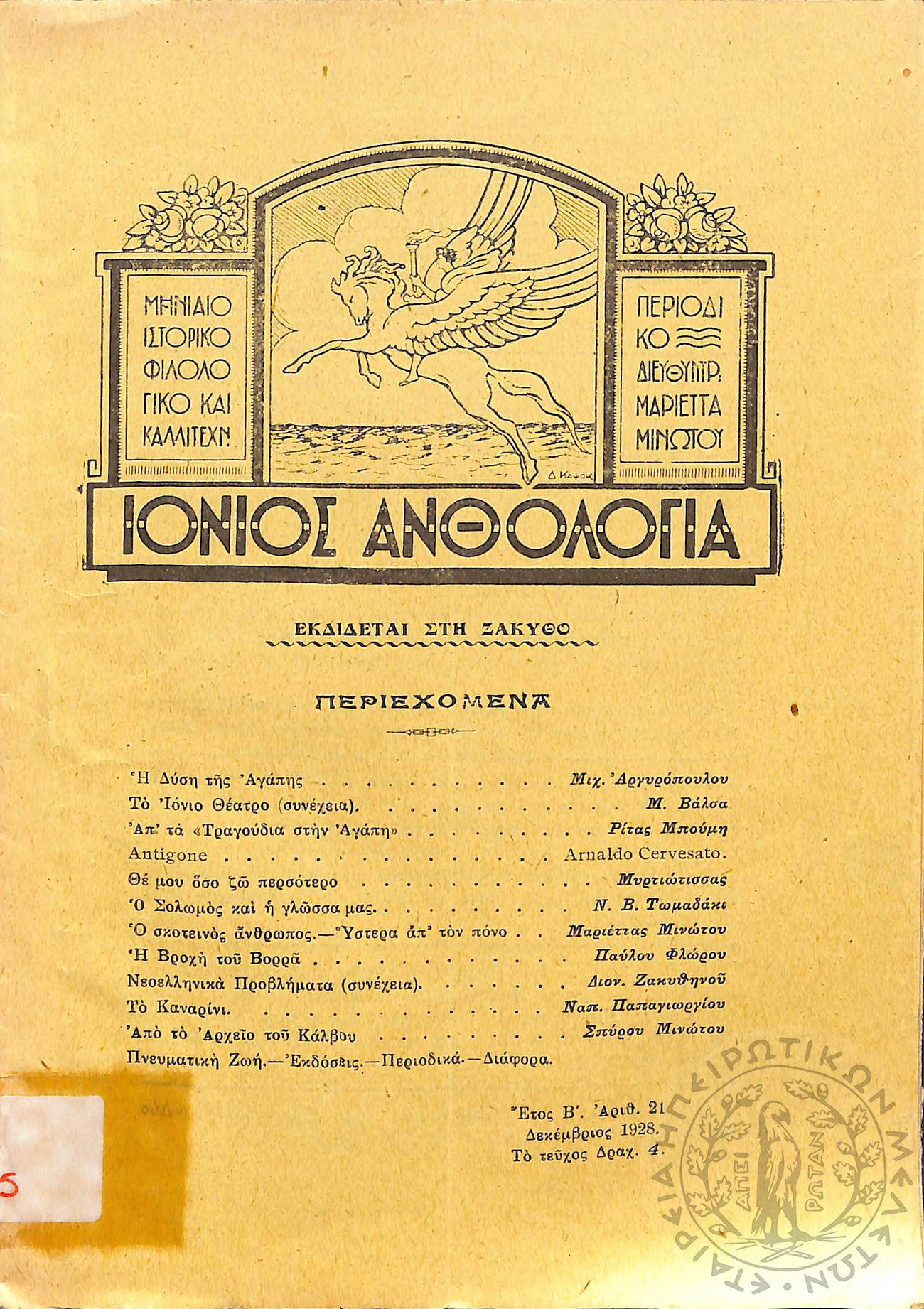 Ιόνιος Ανθολογία: μηνιαίο ιστορικό, φιλολογικό και καλλιτεχνικό περιοδικό (τεύχ. 21)Έτος Β', τεύχ. 21...