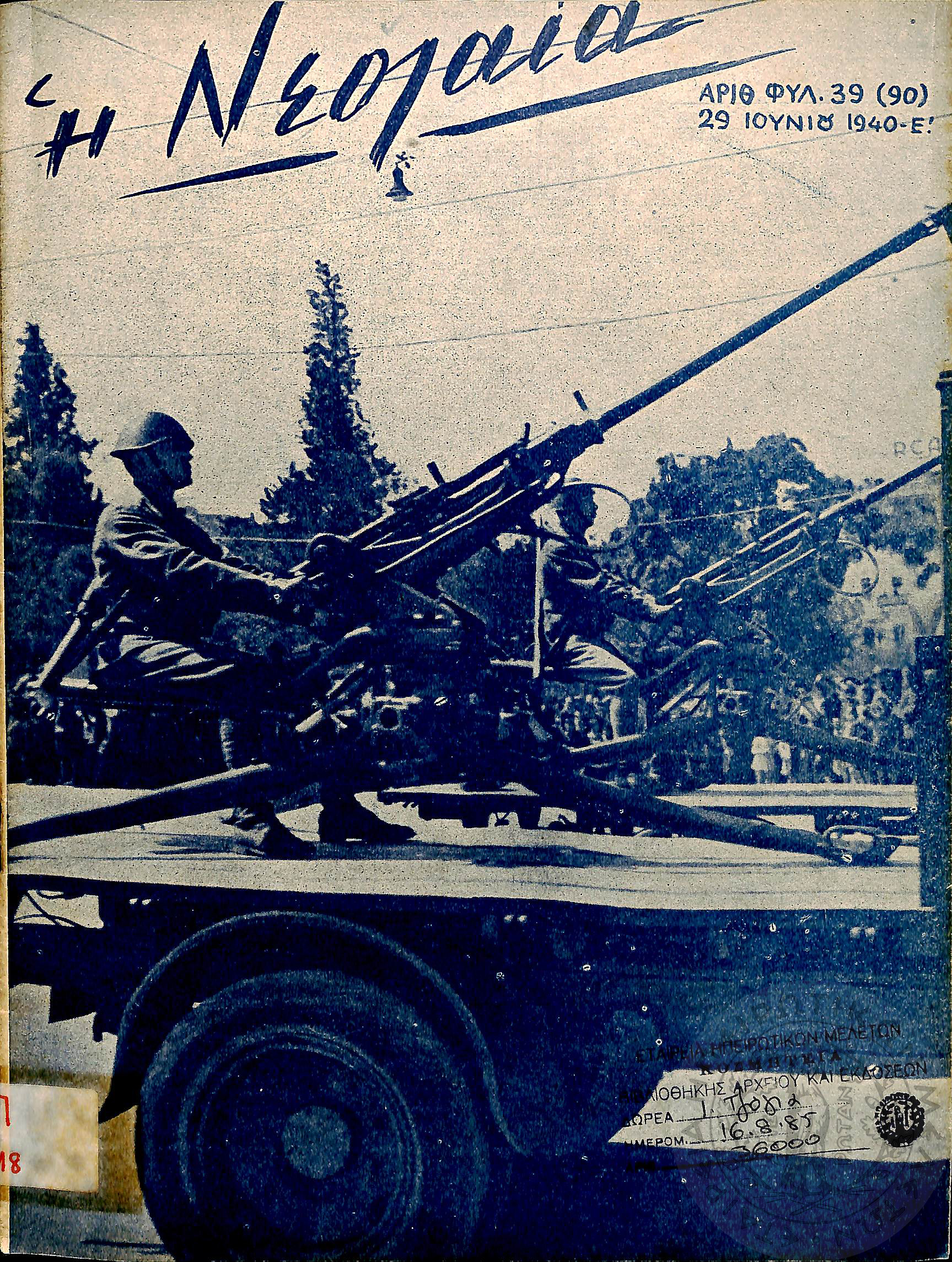 Η Νεολαία: επίσημον όργανον πνευματικής, θρησκευτικής, ηθικής, κοινωνικής και πολιτικής αγωγής της "Εθνικής Οργανώσεως Νεολαίας της Ελλάδος" (1940, τεύχ. 38 (89))Έτος 2, τεύχ. 38 (89)...