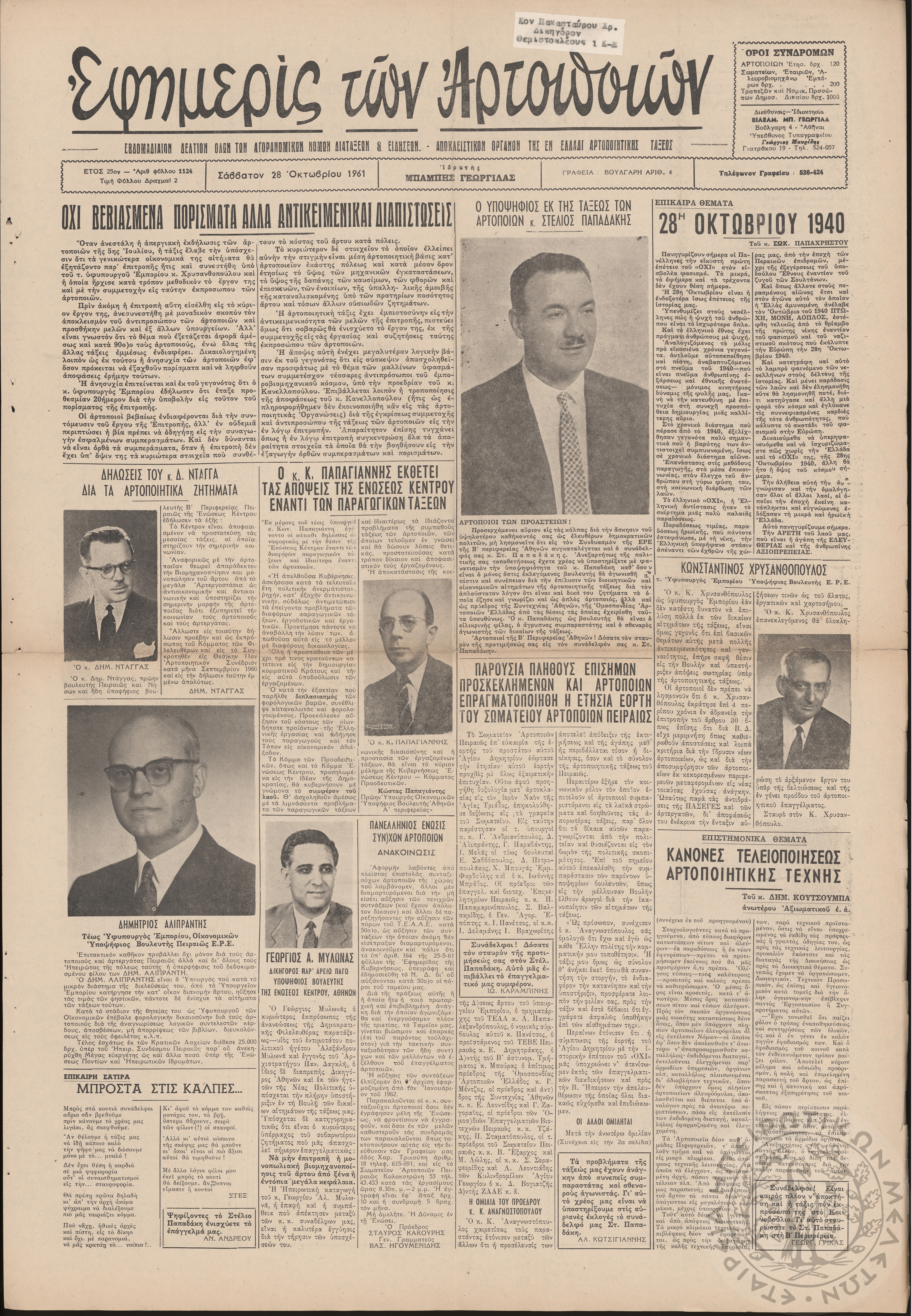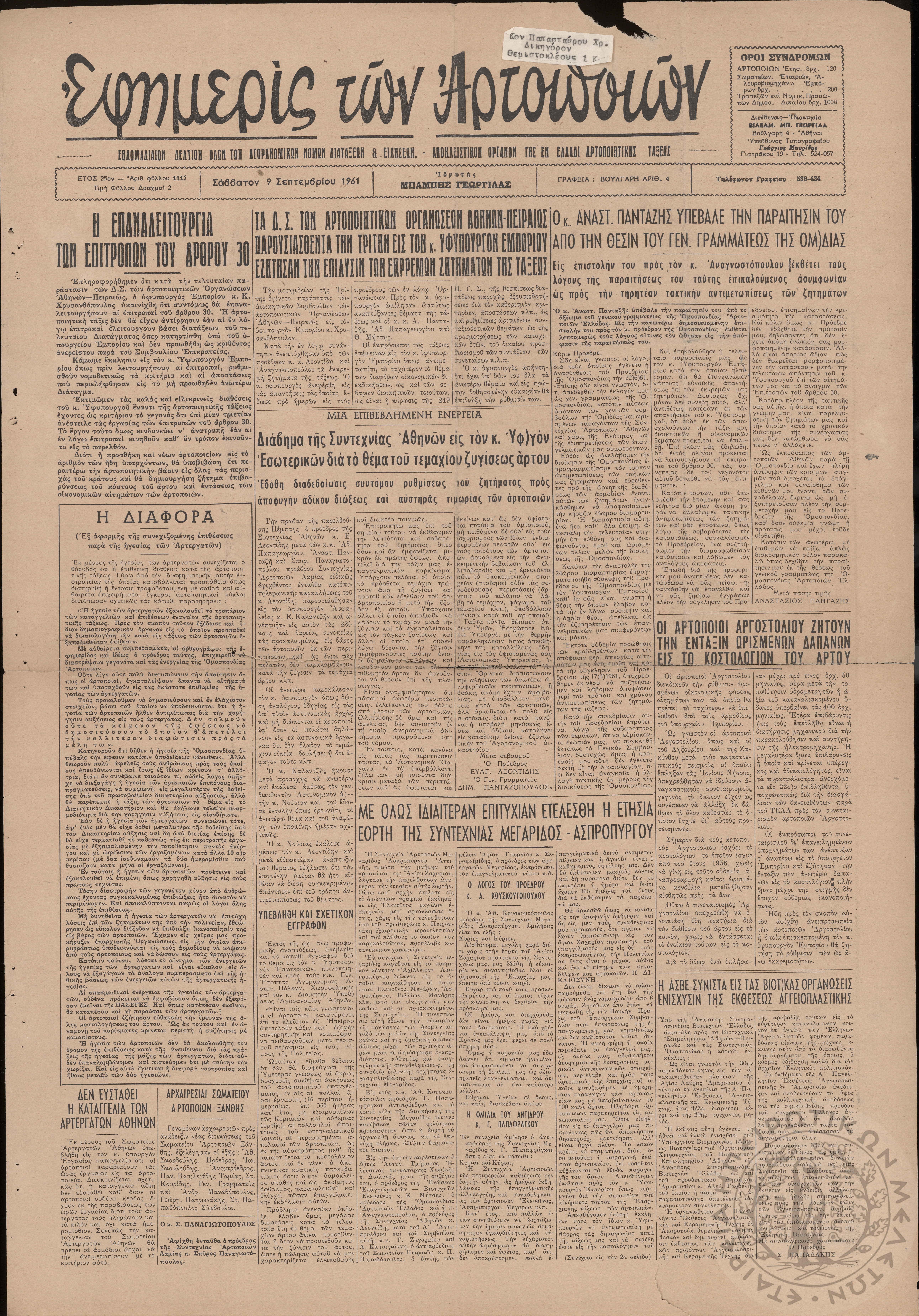 Εφημερίς των Αρτοποιών: εβδομαδιαίον δελτίον όλων των αγορανομικών νόμων, διατάξεων και ειδήσεων - αποκλειστικόν όργανον της εν Ελλάδι αρτοποιητικής τάξεως, 1961, φ. 1126Έτος 25ον, φ. 1126...