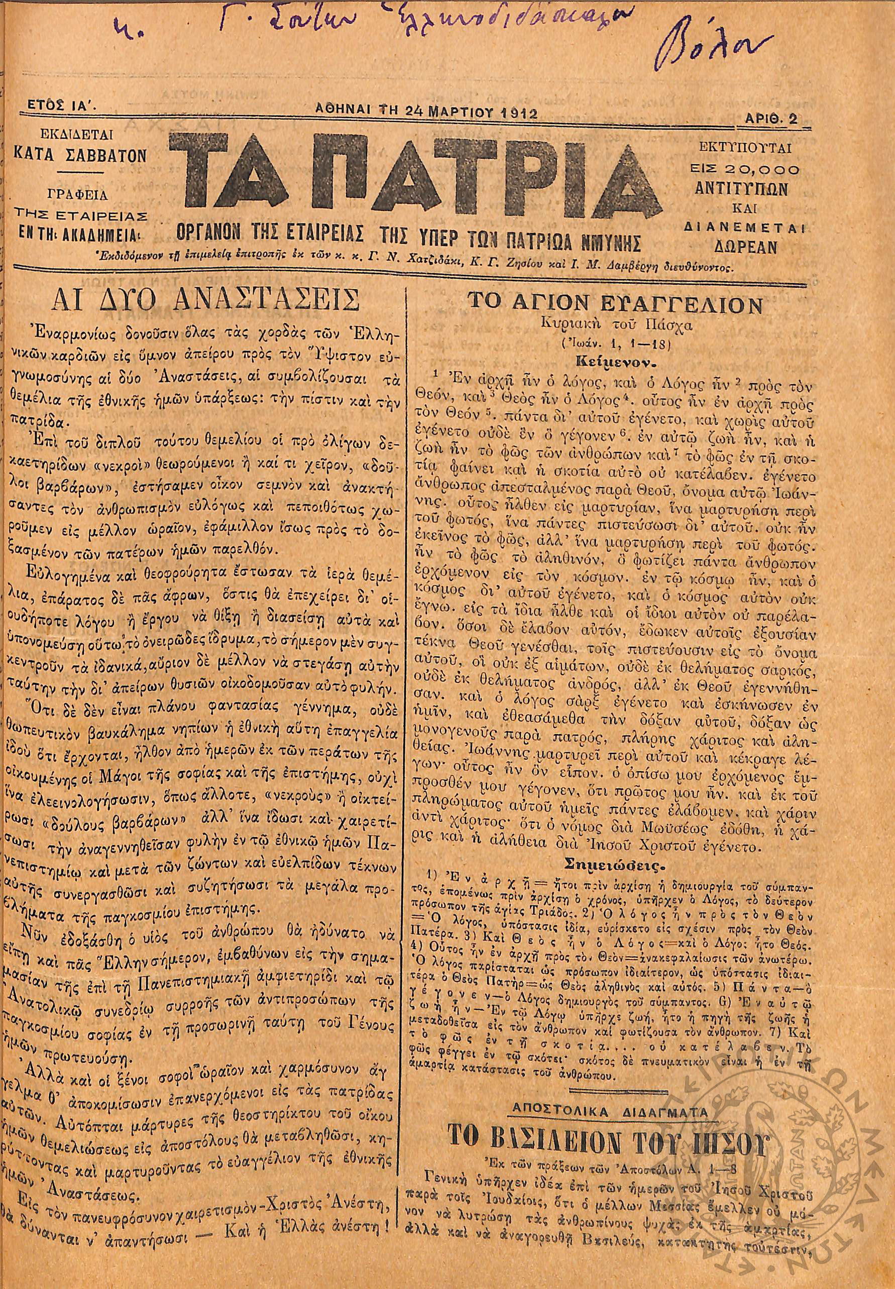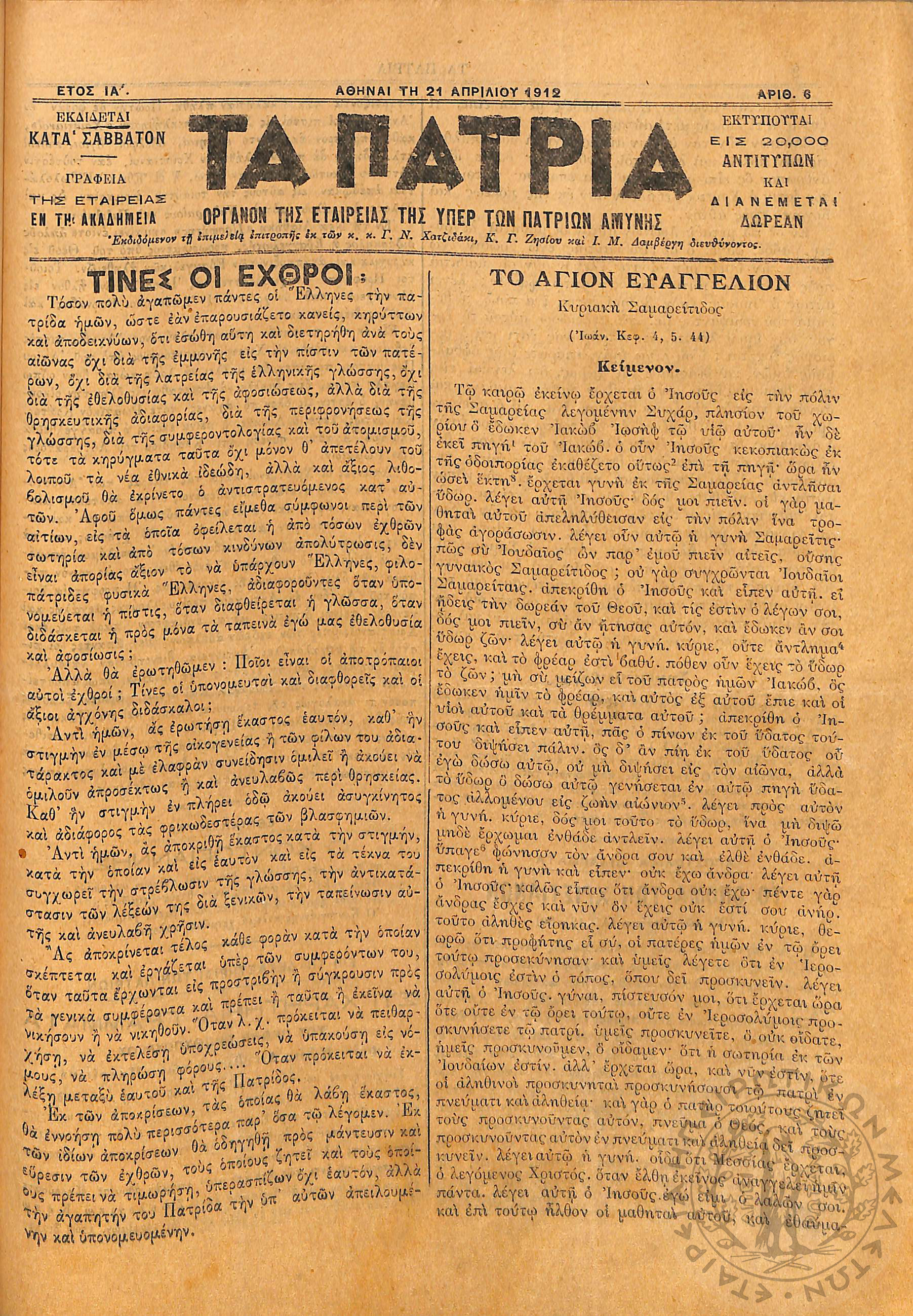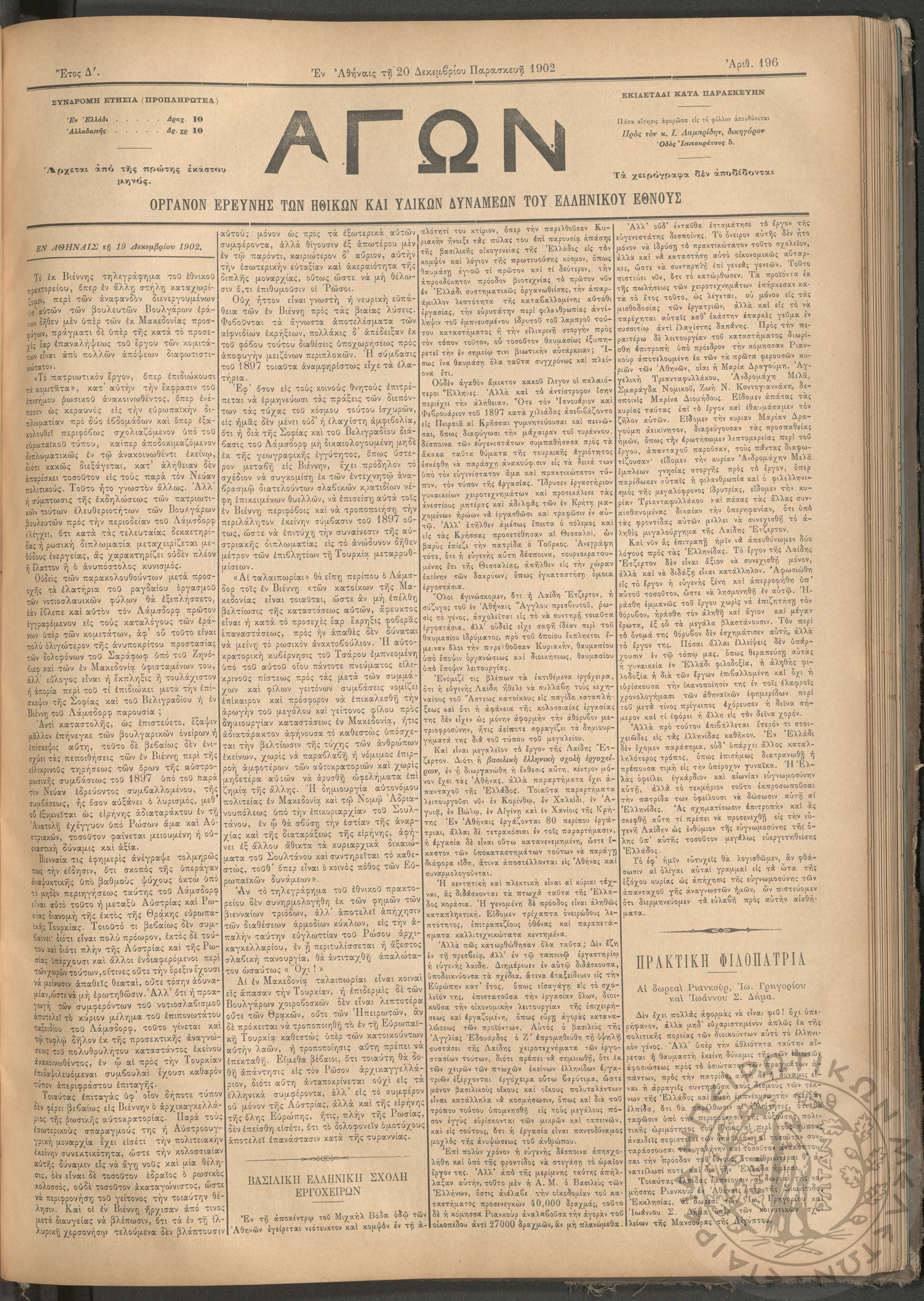 Αγών: Όργανον ερεύνης των ηθικών και υλικών δυνάμεων του Ελληνικού Έθνους, 1902 (Φ. 196)Έτος Δ΄, Φ. 196...