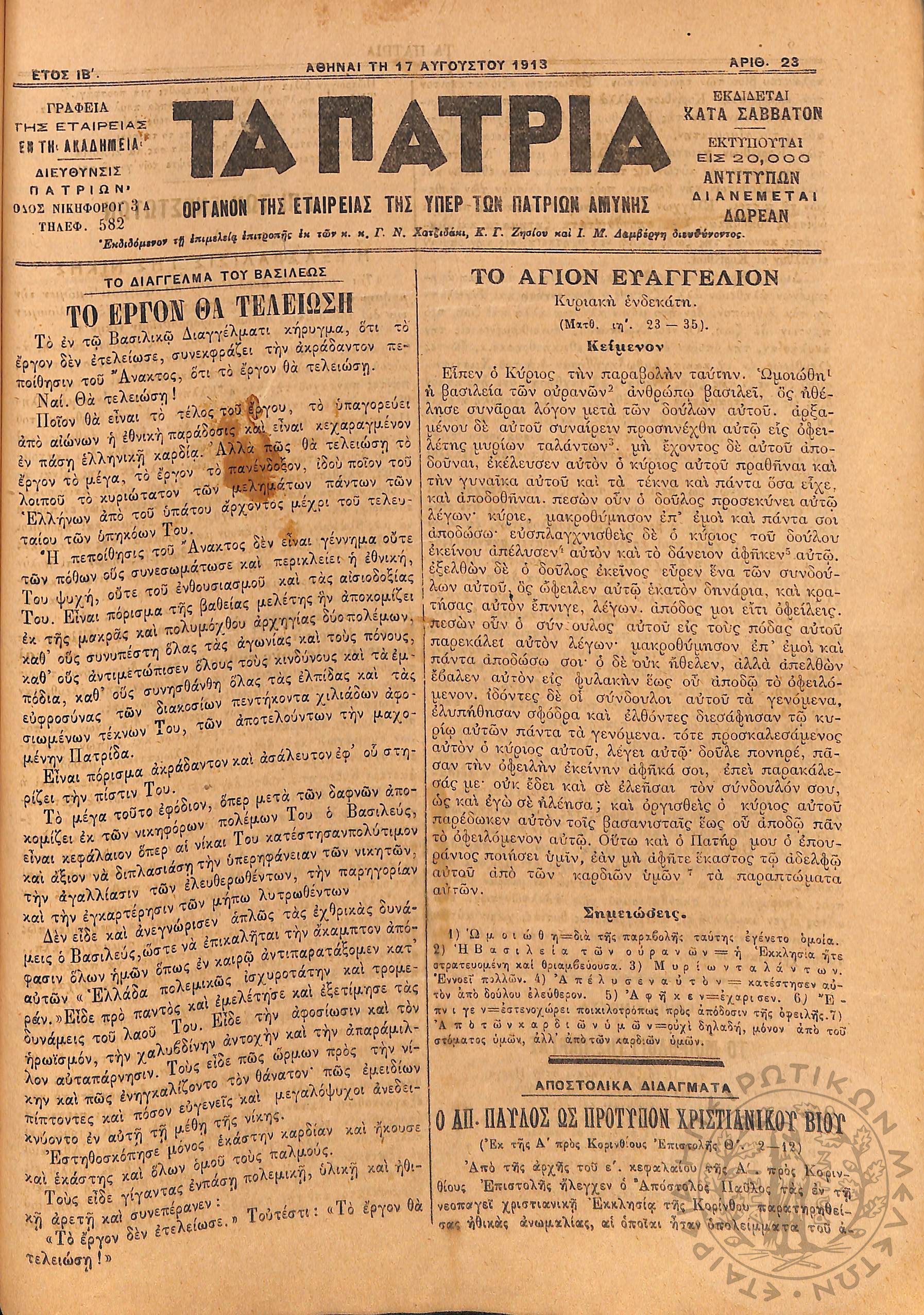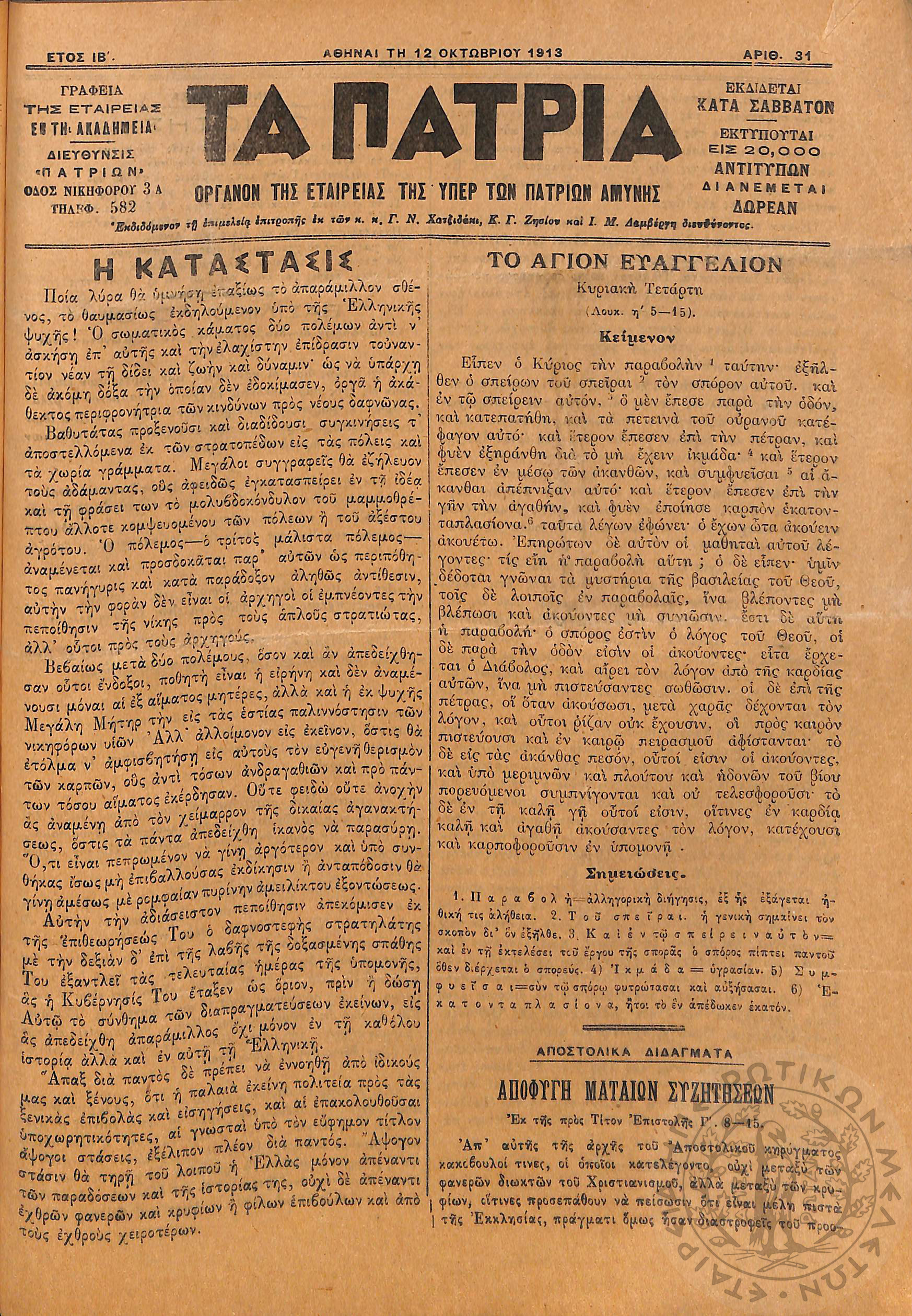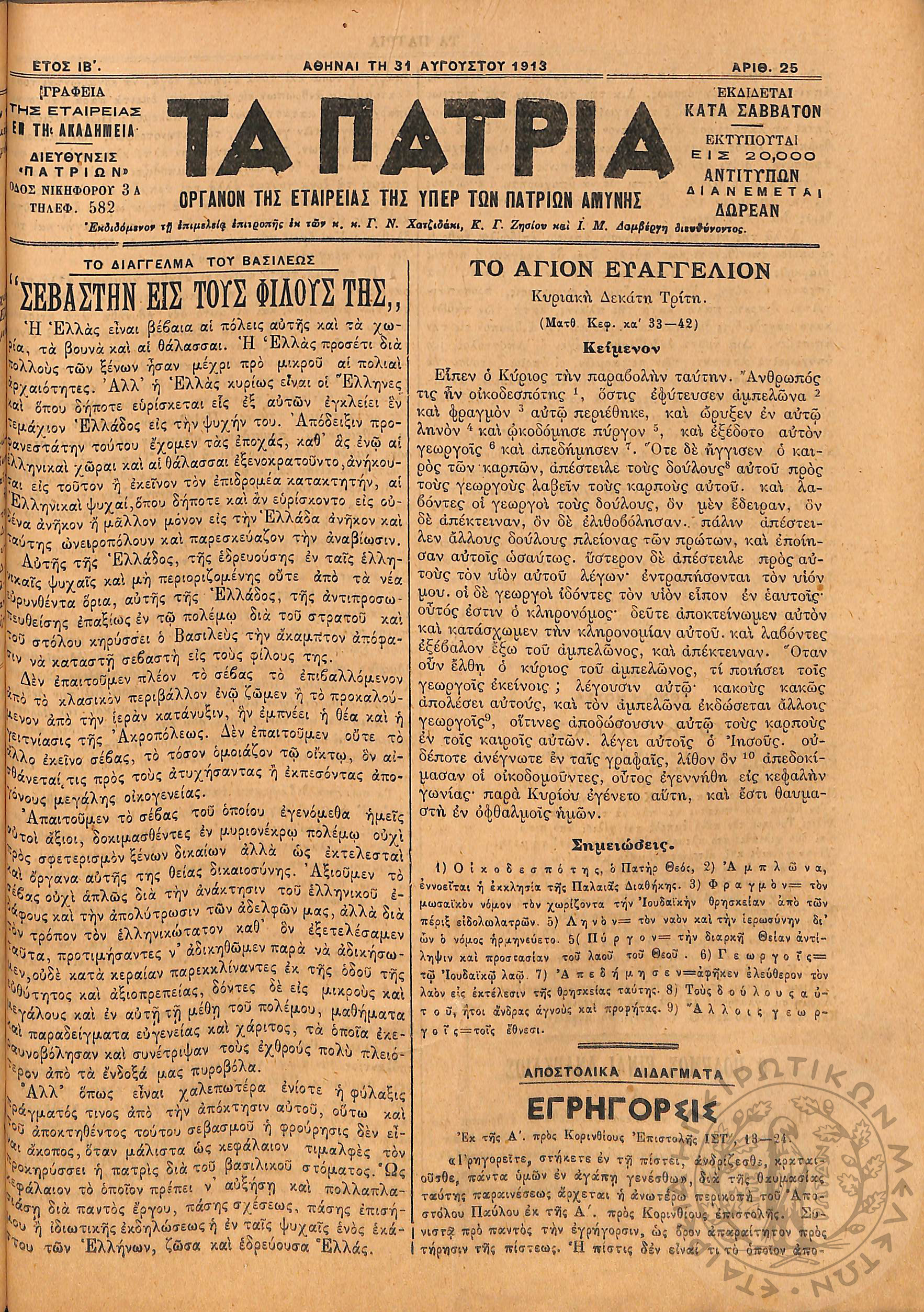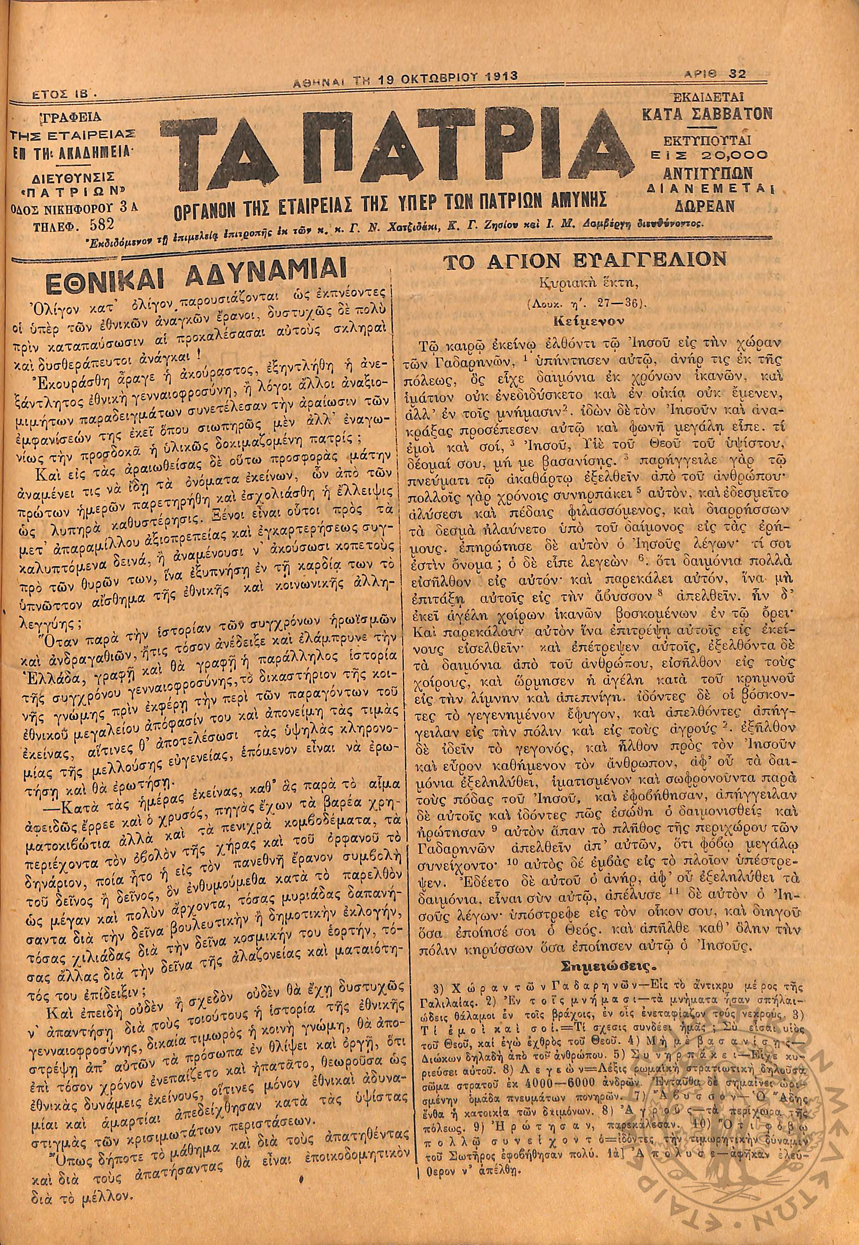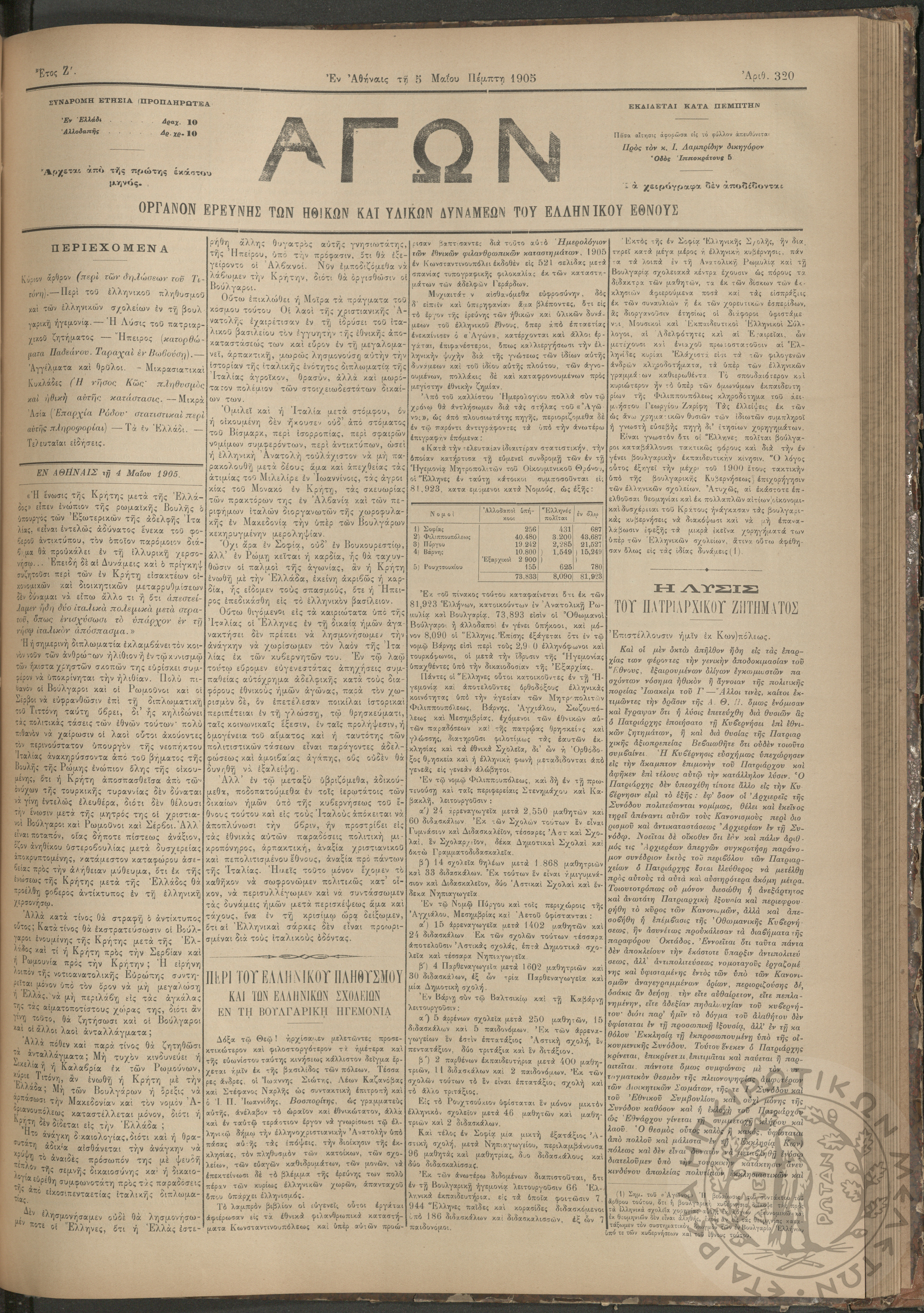 Αγών: Όργανον ερεύνης των ηθικών και υλικών δυνάμεων του Ελληνικού Έθνους, 1905 (Φ. 320)Έτος Ζ΄, Φ. 320...