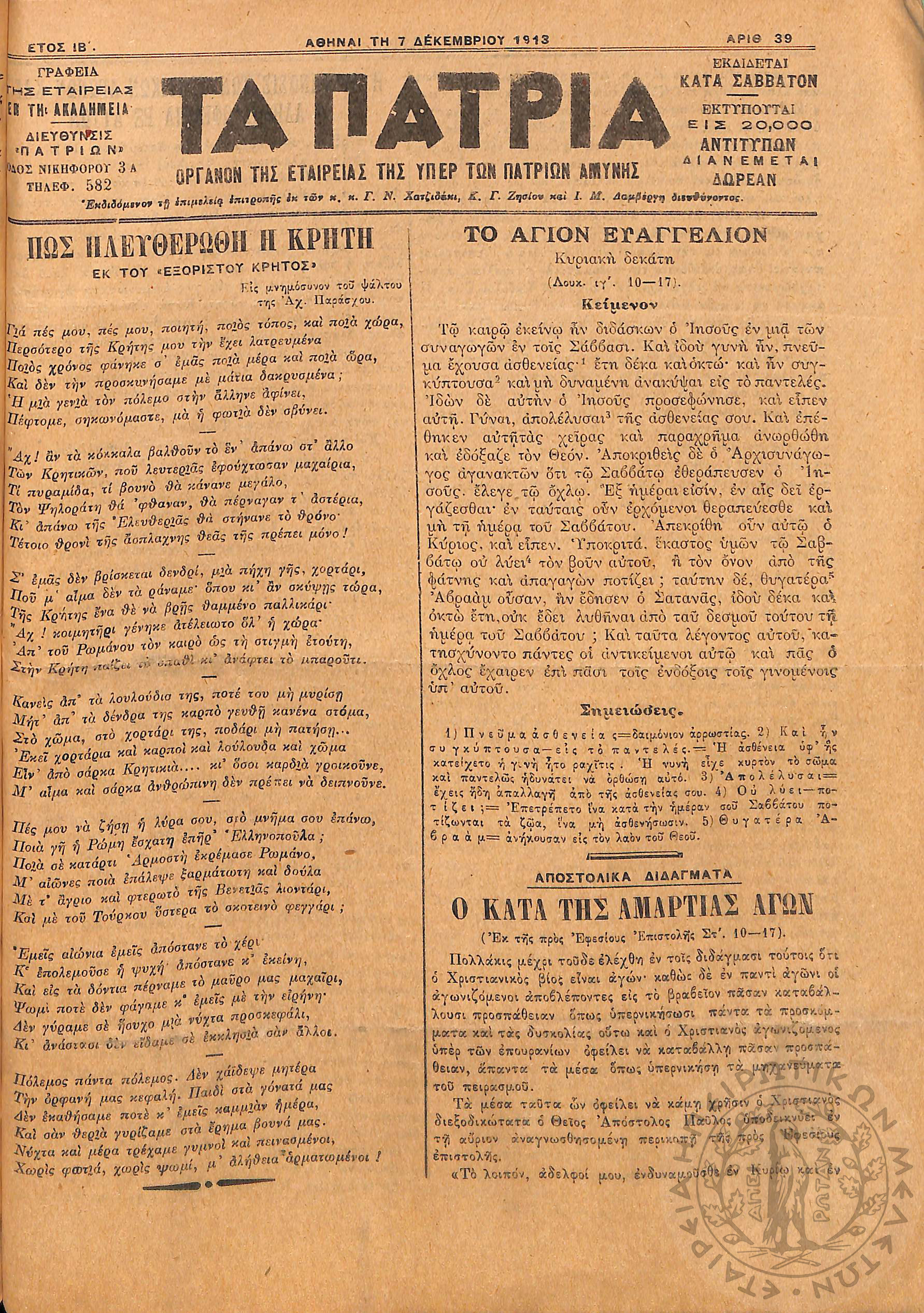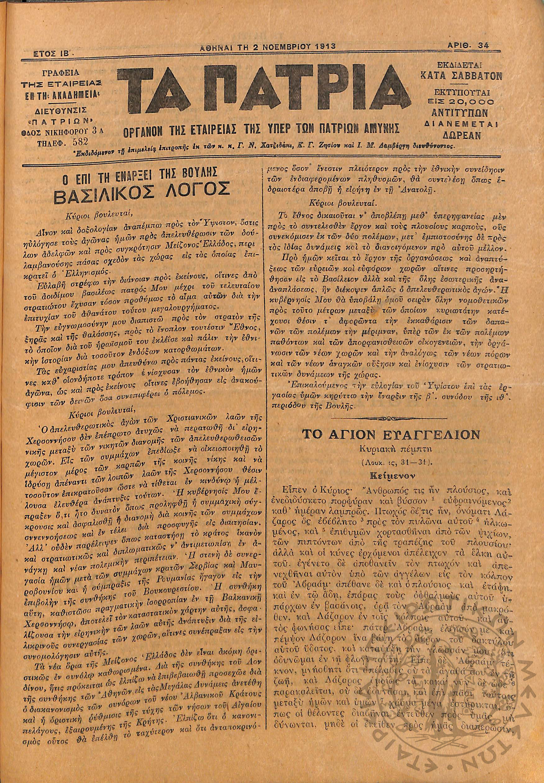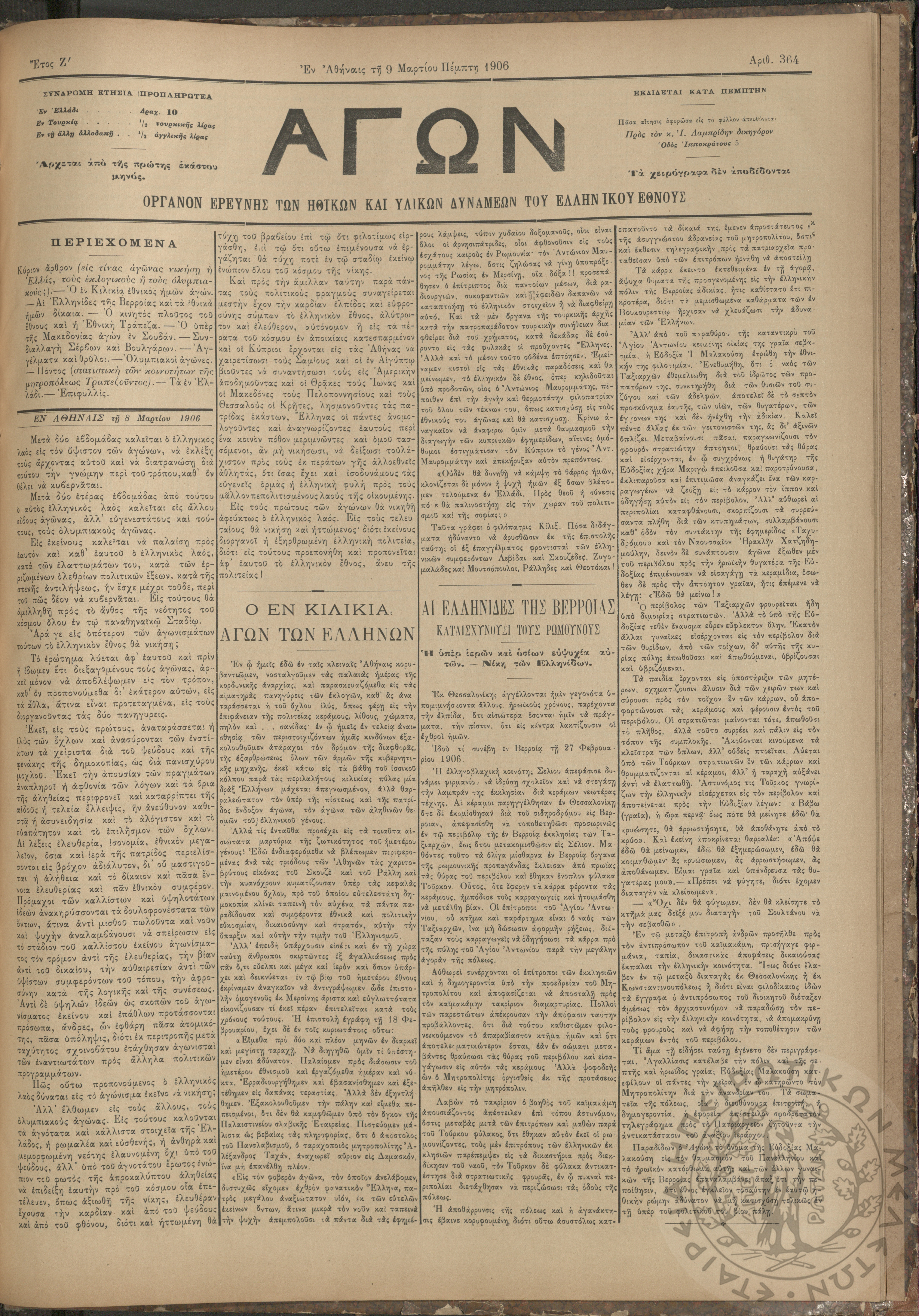 Αγών: Όργανον ερεύνης των ηθικών και υλικών δυνάμεων του Ελληνικού Έθνους, 1906 (Φ. 364)Έτος Ζ΄, Φ. 364...
