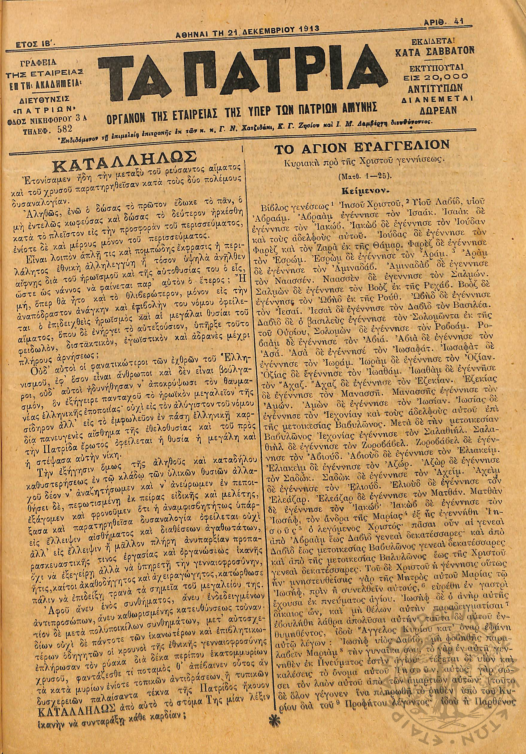 Αγών: Όργανον ερεύνης των ηθικών και υλικών δυνάμεων του Ελληνικού Έθνους, 1906 (Φ. 360)Έτος Ζ΄, Φ. 360...