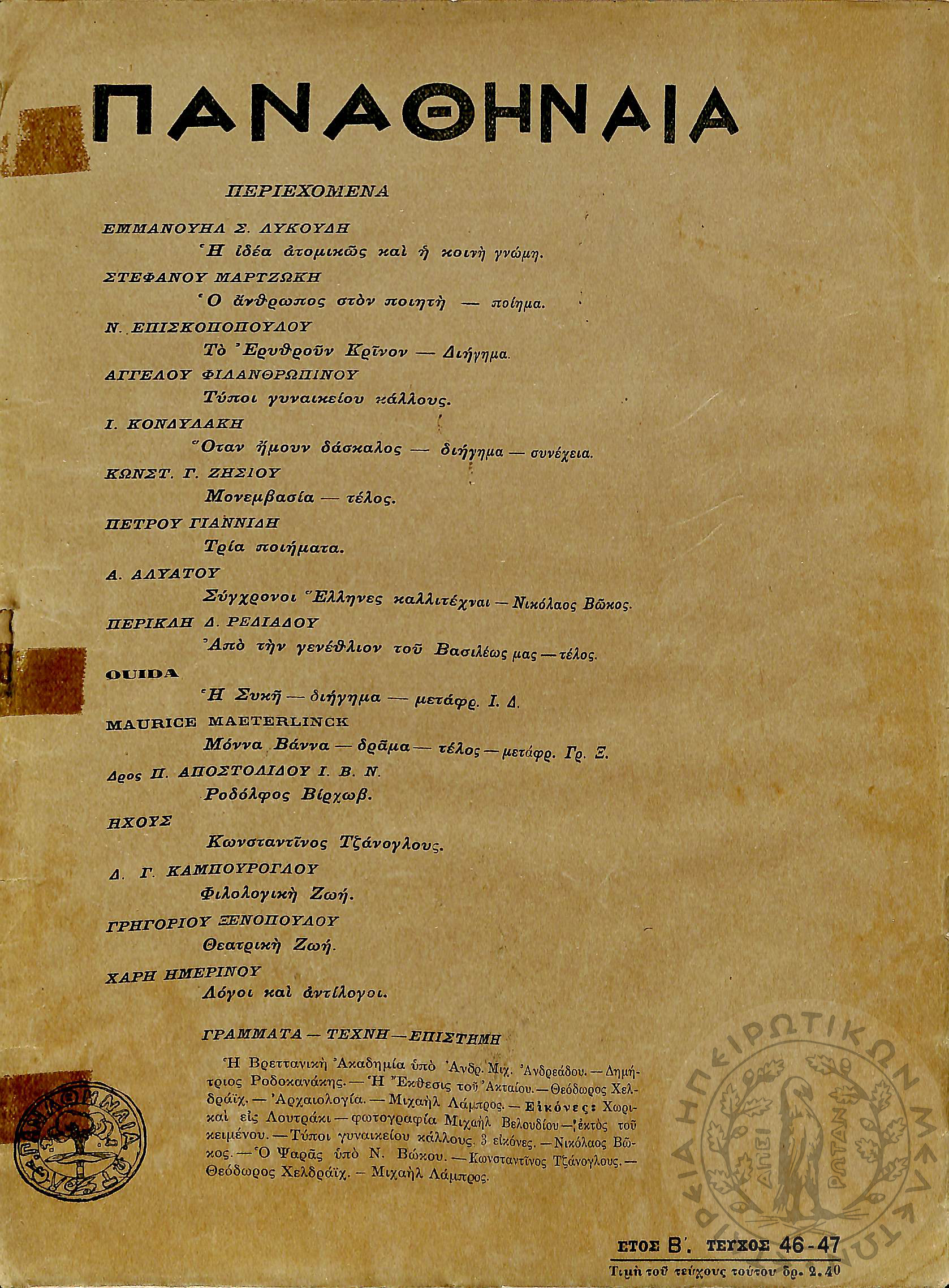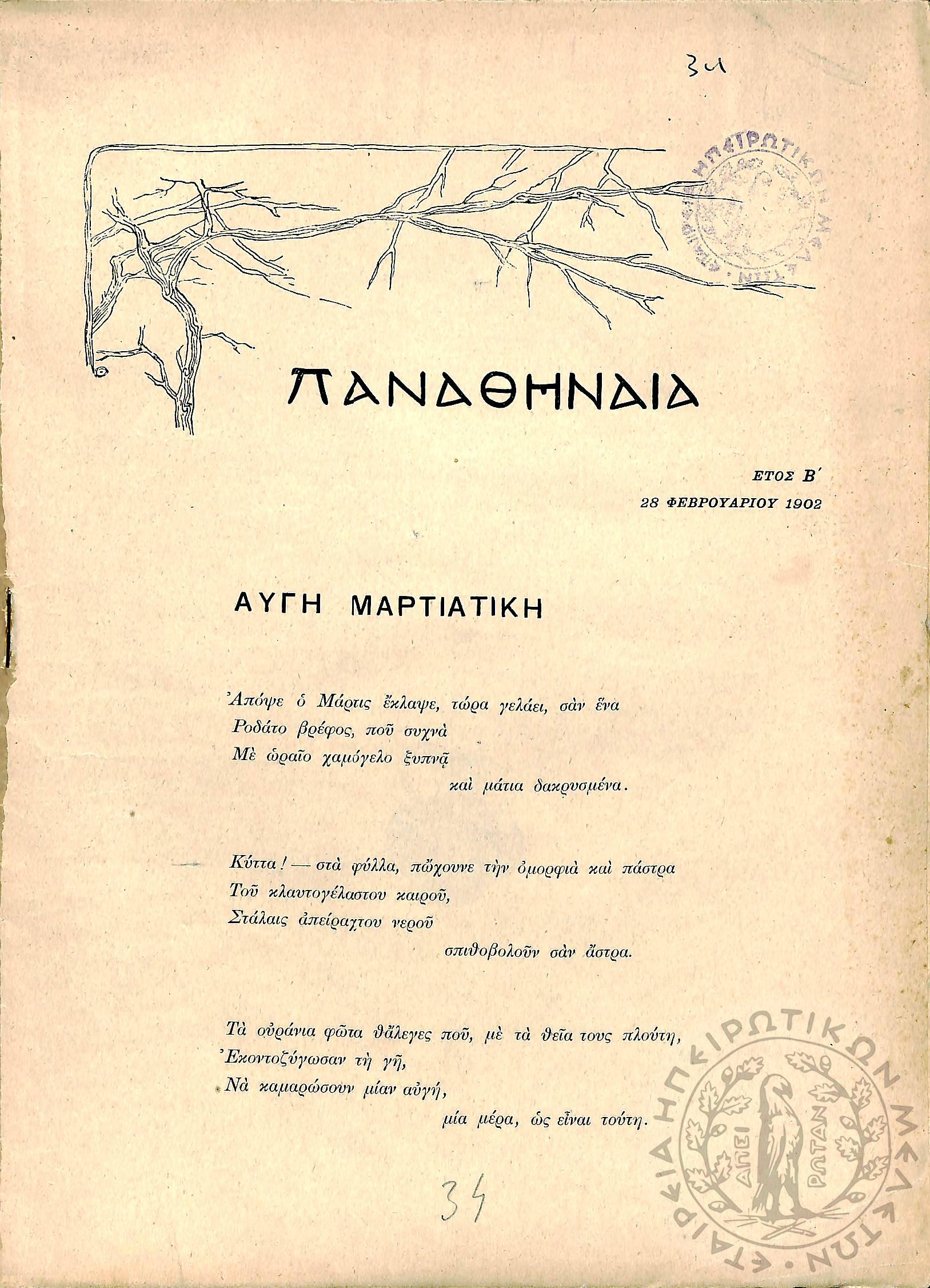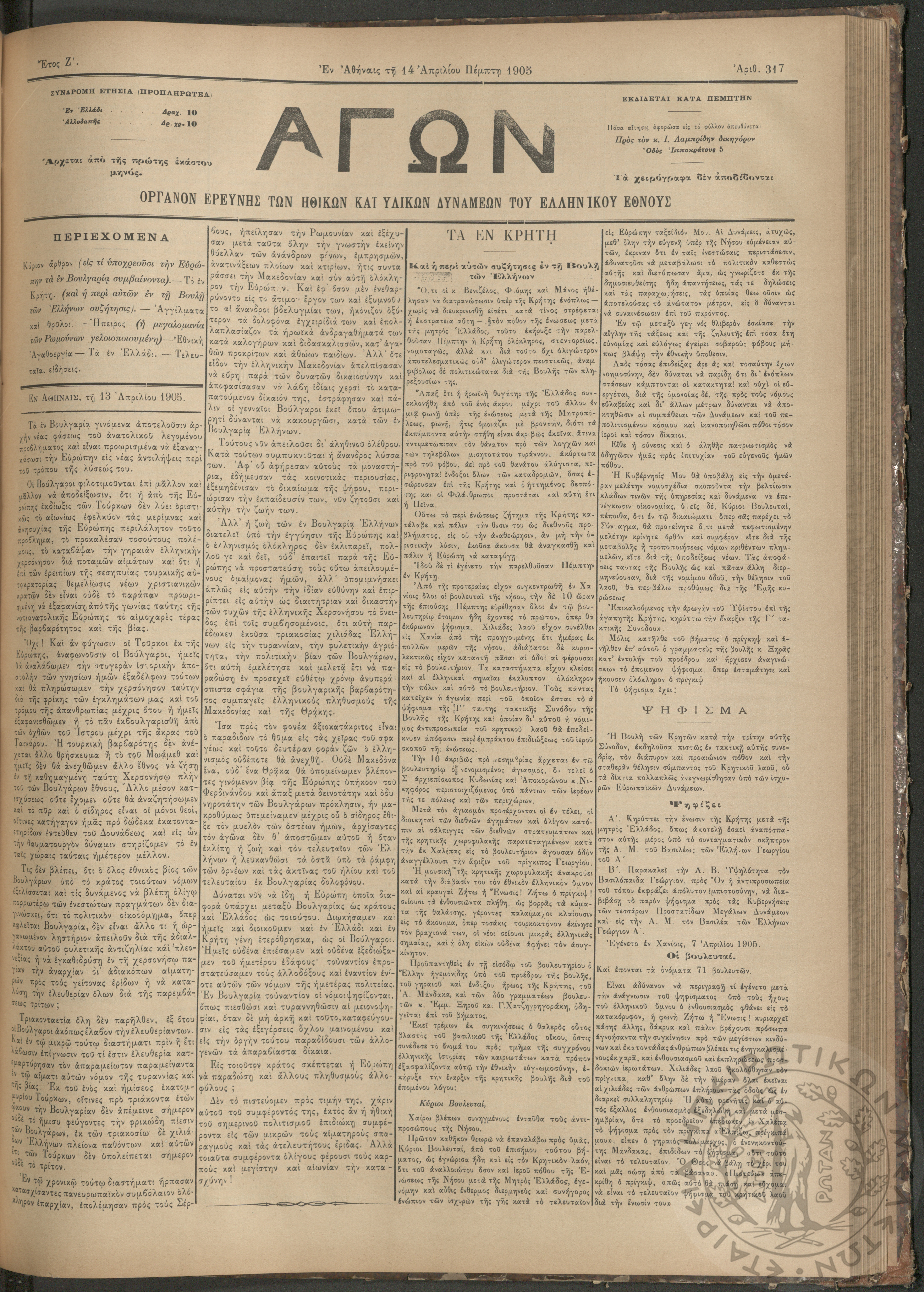 Αγών: Όργανον ερεύνης των ηθικών και υλικών δυνάμεων του Ελληνικού Έθνους, 1905 (Φ. 317)Έτος Ζ΄, Φ. 317...