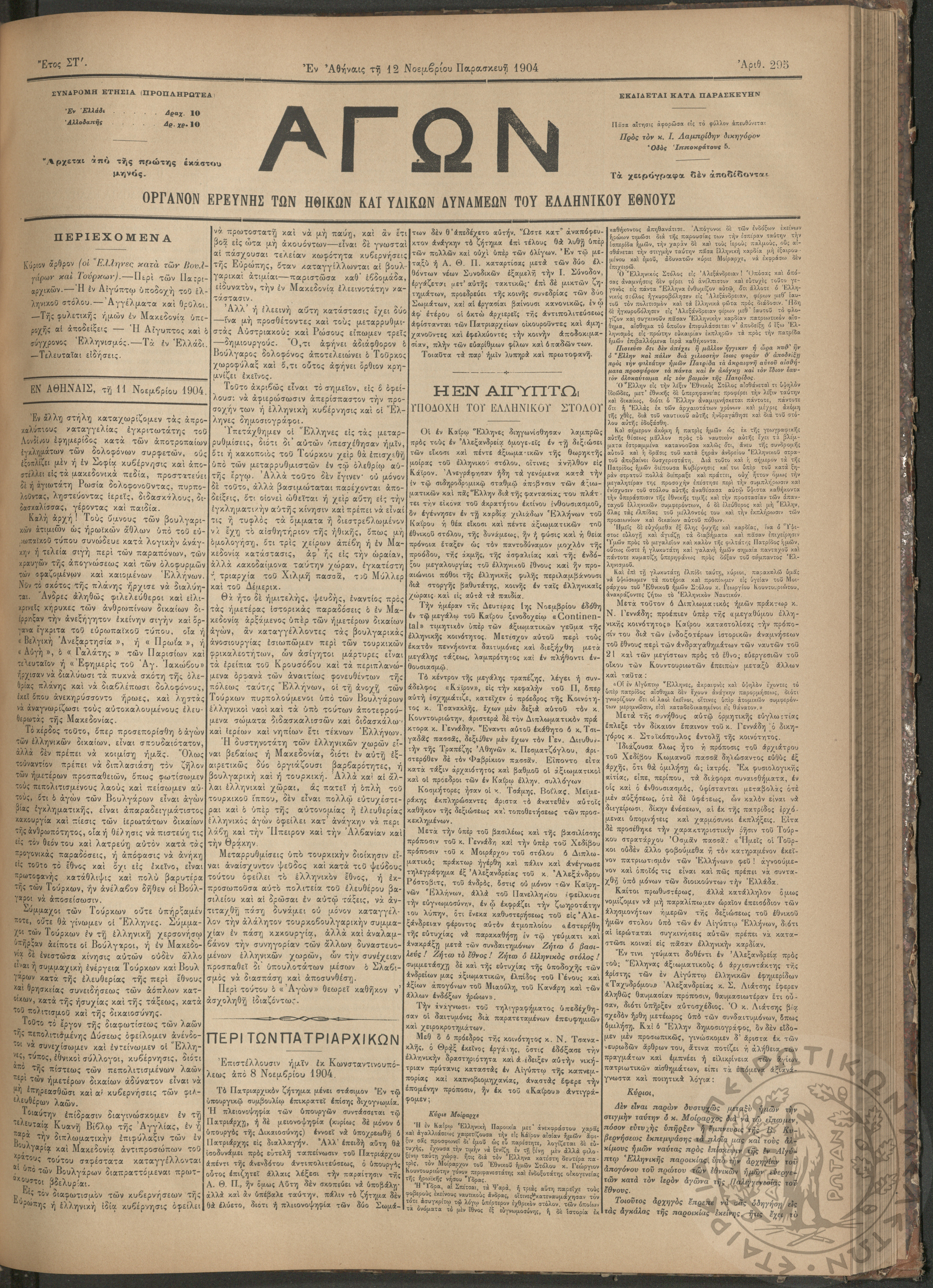 Αγών: Όργανον ερεύνης των ηθικών και υλικών δυνάμεων του Ελληνικού Έθνους, 1905 (Φ. 304)Έτος ΣΤ΄, Φ. 304...