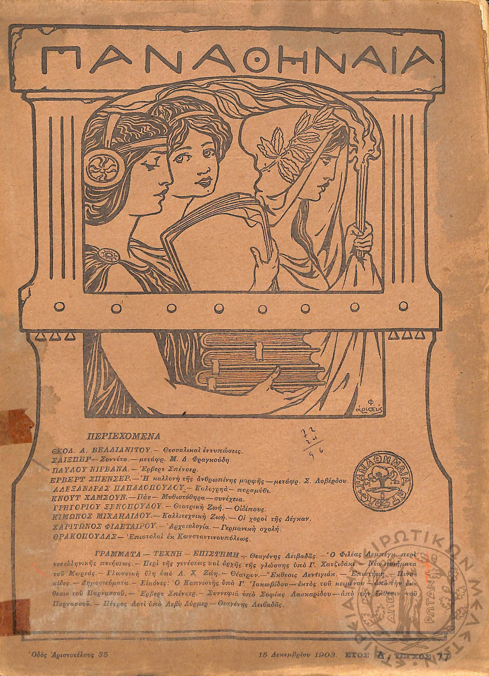Αγών: Όργανον ερεύνης των ηθικών και υλικών δυνάμεων του Ελληνικού Έθνους, 1906 (Φ. 365)Έτος Ζ΄, Φ. 365...