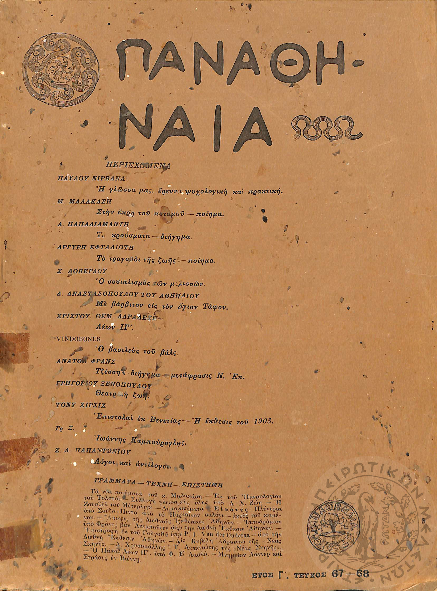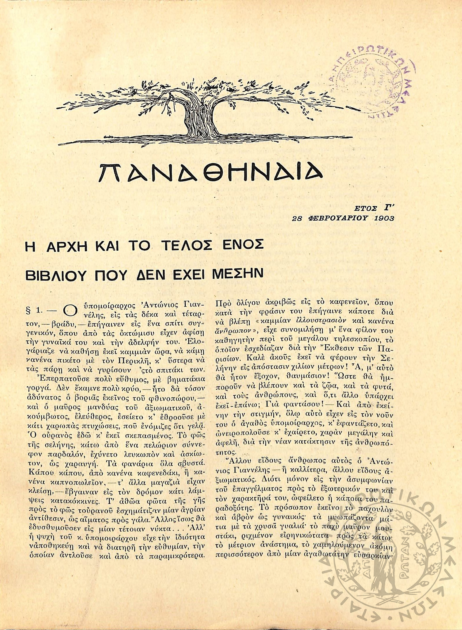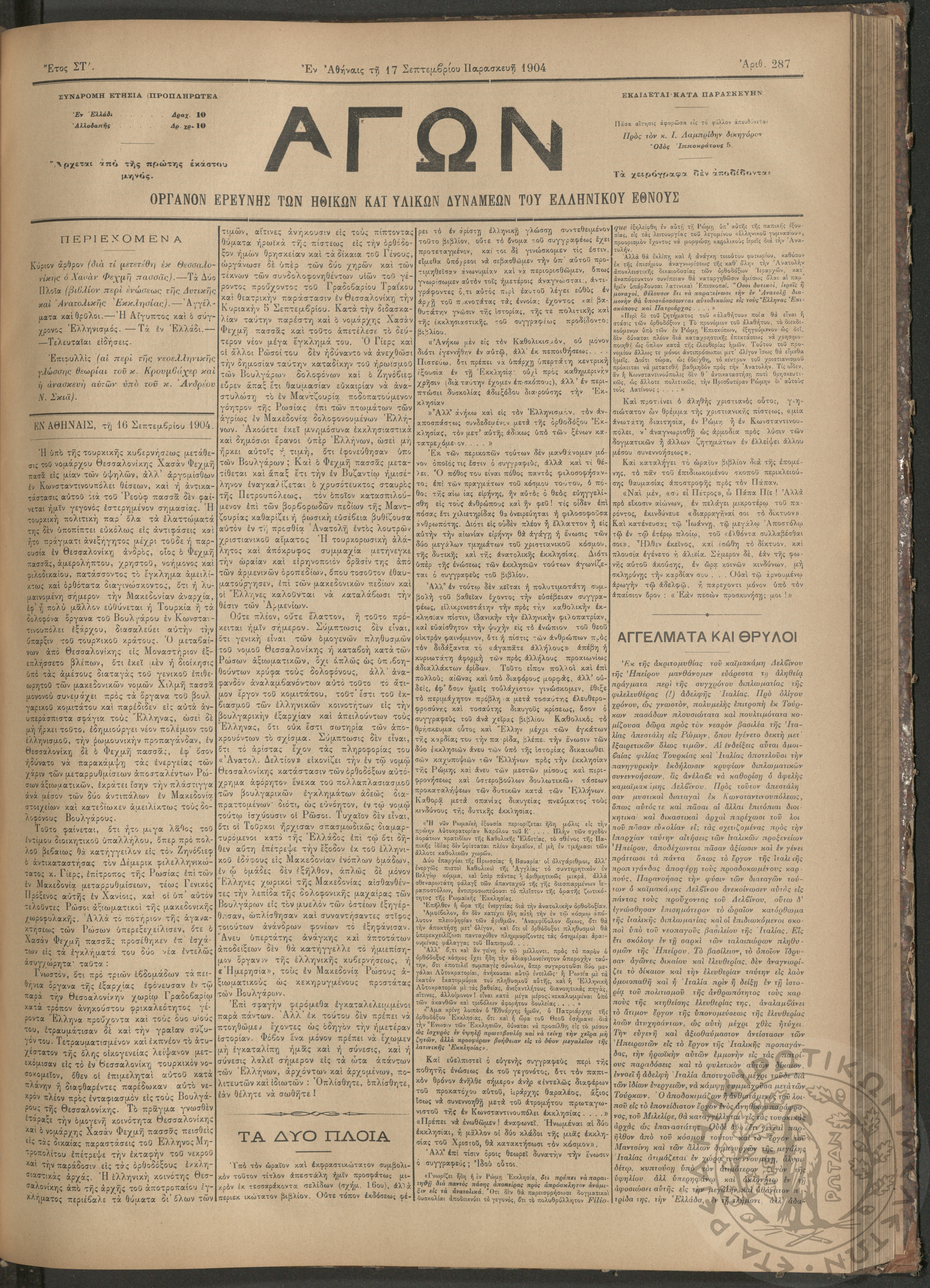 Αγών: Όργανον ερεύνης των ηθικών και υλικών δυνάμεων του Ελληνικού Έθνους, 1904 (Φ. 287)Έτος ΣΤ΄, Φ. 287...